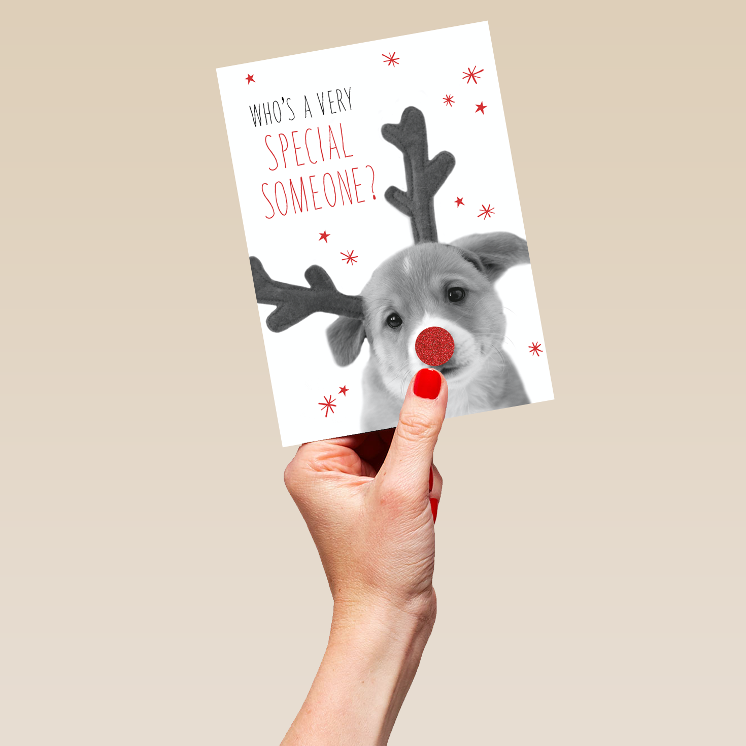 Personalised Cute Reindeer Dog Christmas Card For Someone Special