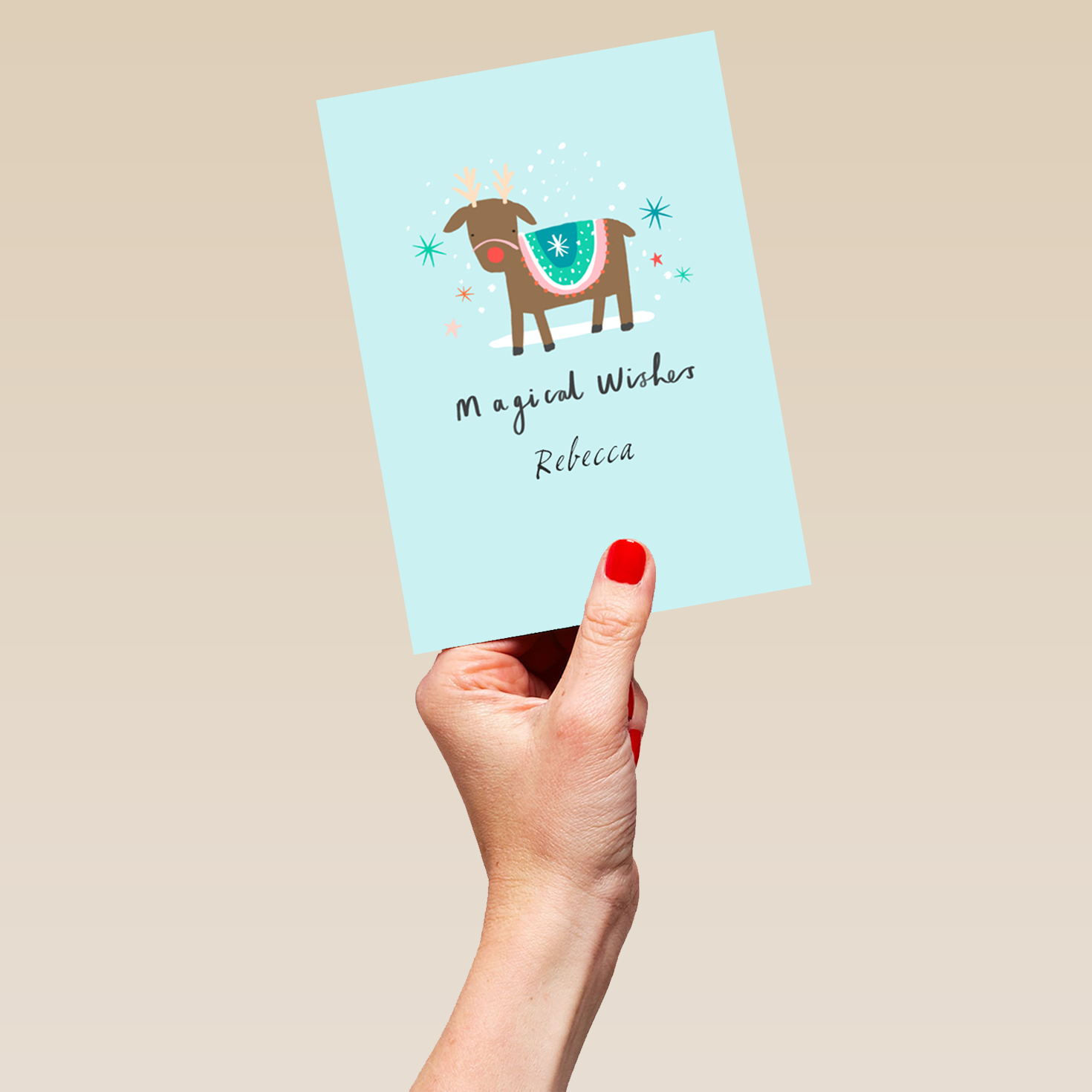 Gift magical festive wishes to all you love, with this cute personalisable Christmas card.