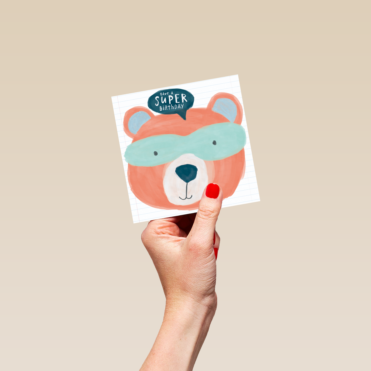 Show them you care with a personalised cute superhero bear face kids birthday boy card from Hallmark. Our greetings cards are printed on premium quality, FSC®-certified card & delivered nationwide.
