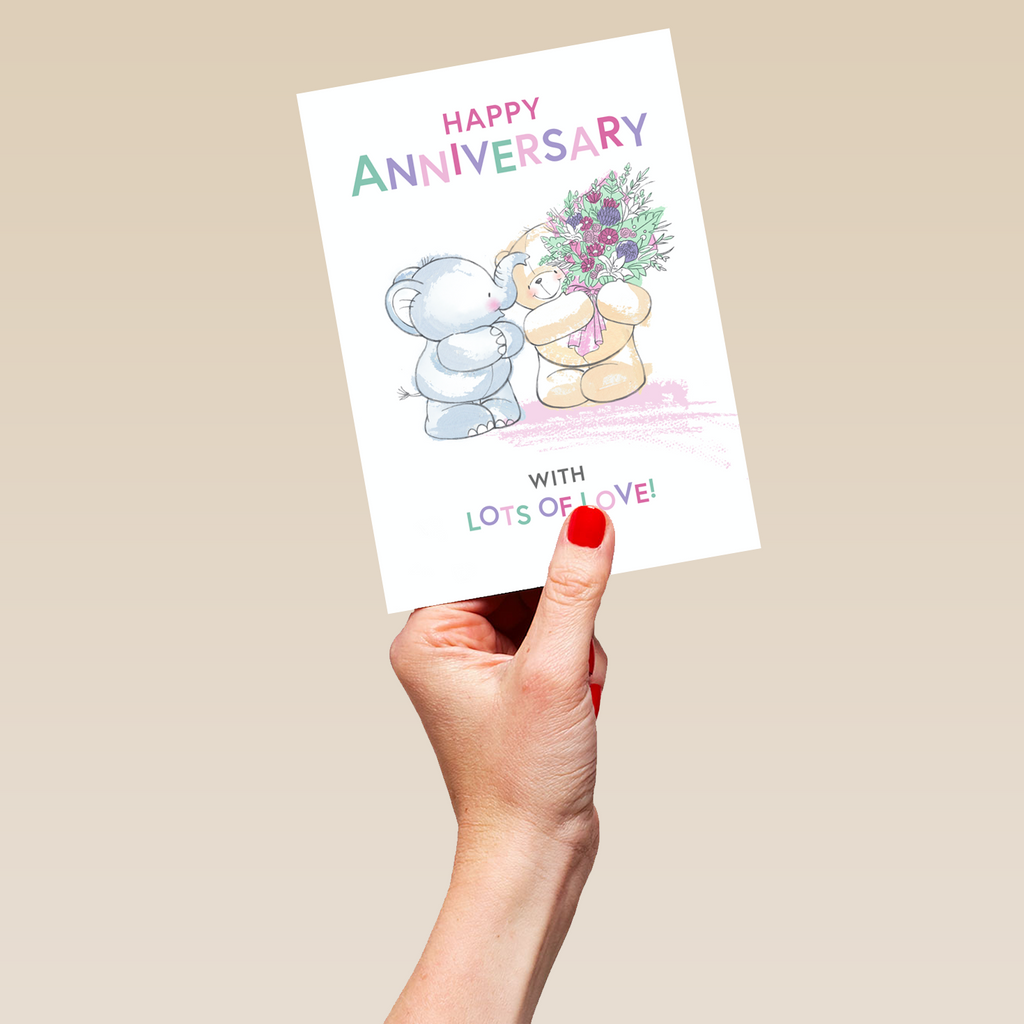Show them you care with a personalised cute Forever Friends anniversary card from Hallmark. Our wedding anniversary cards are printed on premium quality, FSC®-certified card & delivered nationwide. This card is available as standard 12cm by 16.7cm and large 15.5cm by 21.6cm.
