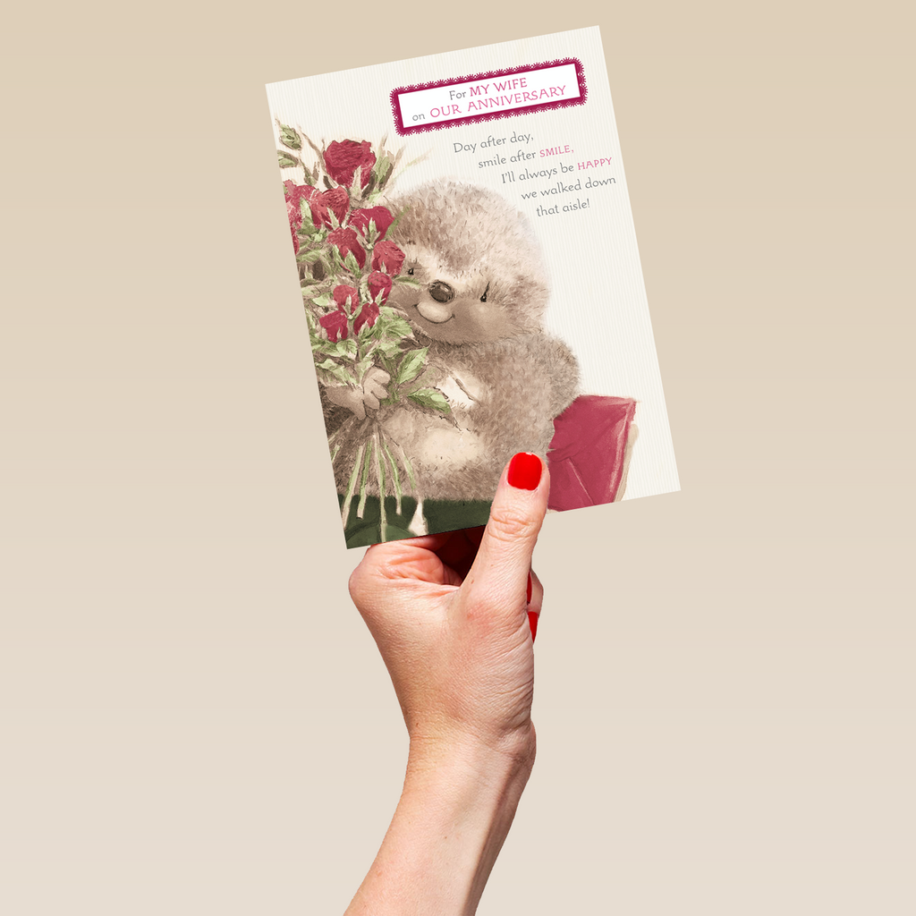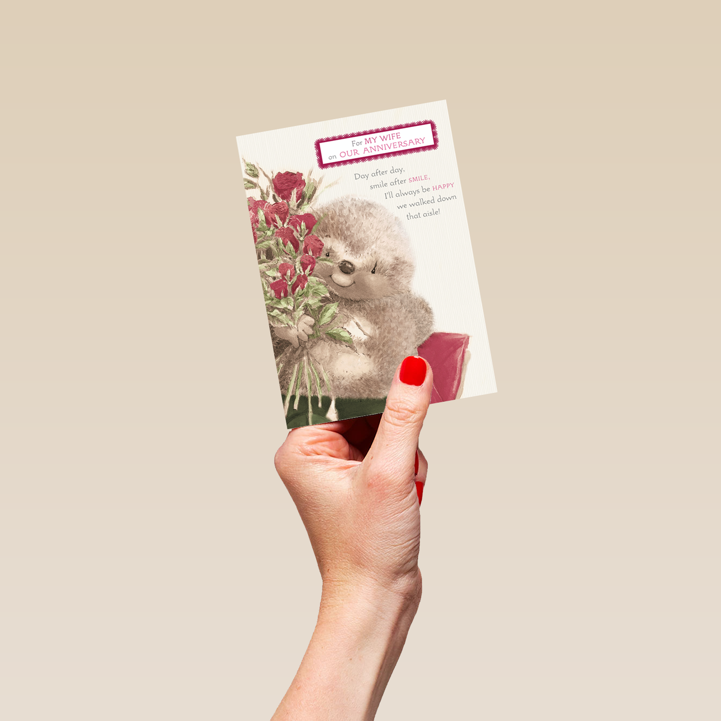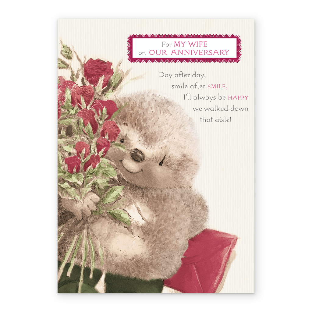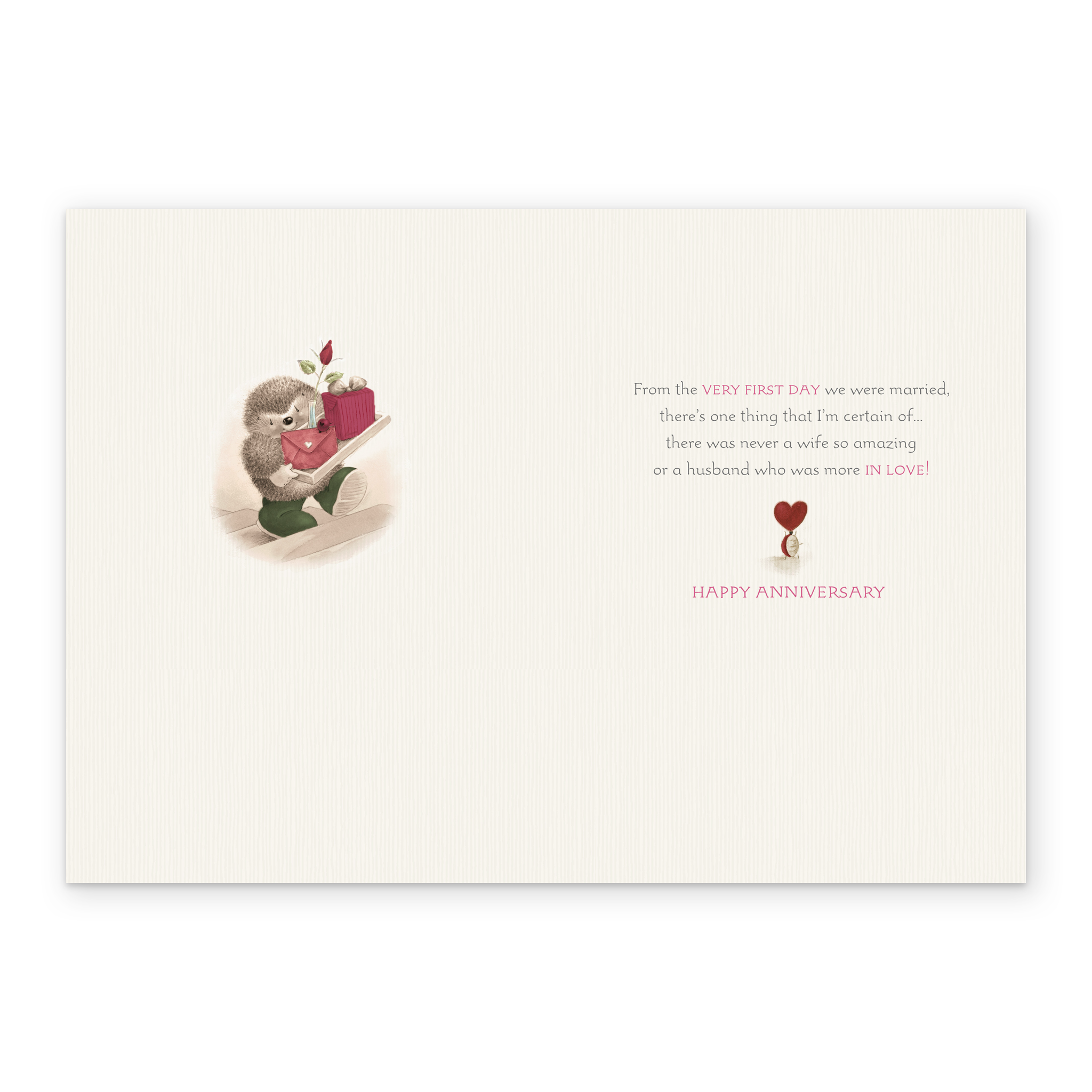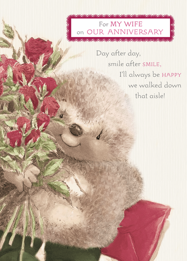 Show them you care with a personalised cute wife anniversary card from Hallmark. Our wedding anniversary cards are printed on premium quality, FSC®-certified card & delivered nationwide. This card is available as standard 12cm by 16.7cm and large 15.5cm by 21.6cm.