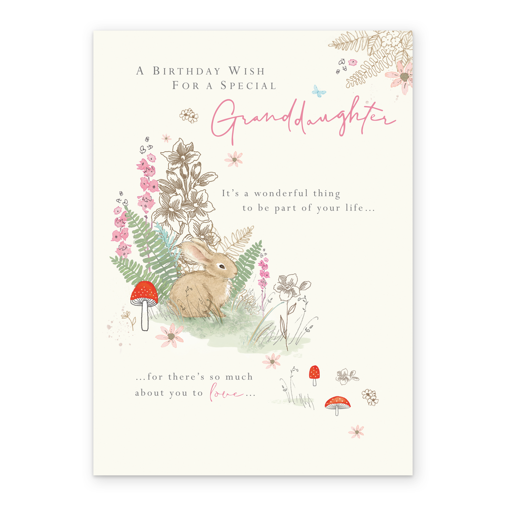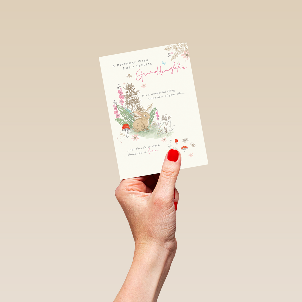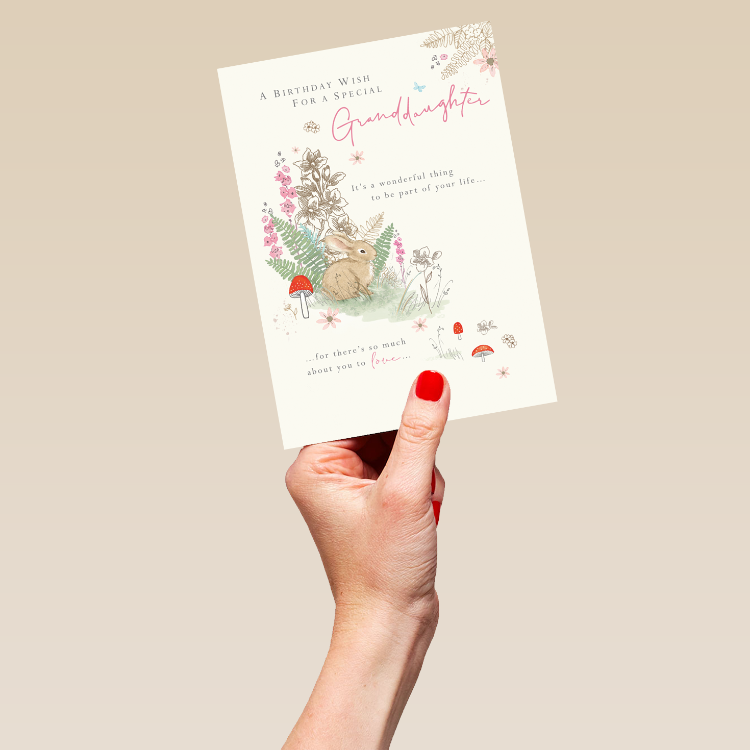 Show them you care with a personalised cute woodland birthday card for granddaughter from Hallmark. Our birthday cards are printed on premium quality, FSC®-certified card & delivered nationwide. This card is available as standard 12cm by 16.7cm and large 15.5cm by 21.6cm.