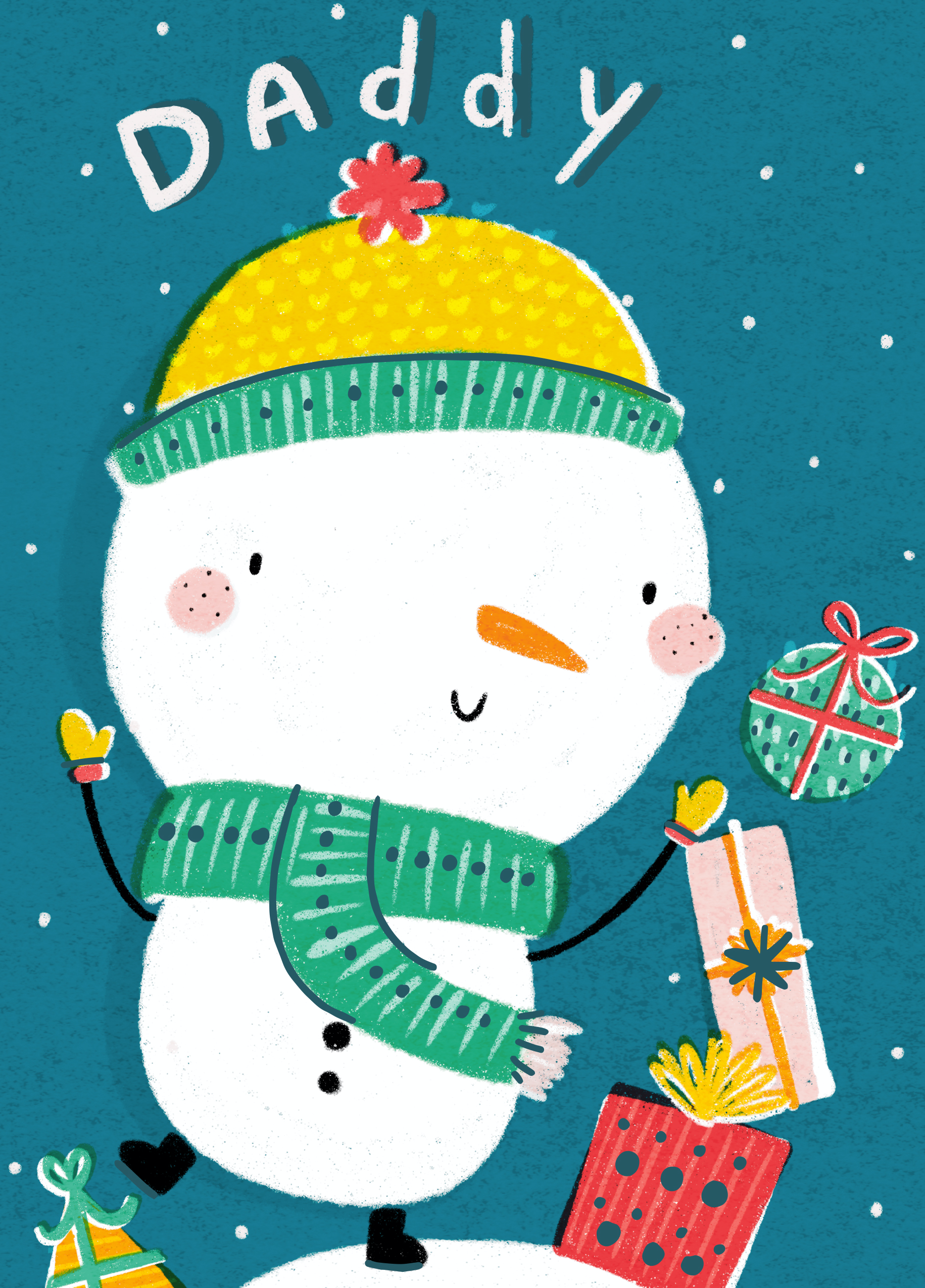 Personalised Daddy Fun Snowman Kids Christmas Card
