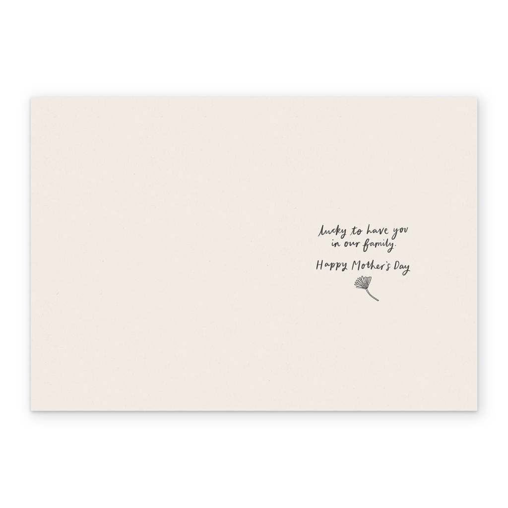 Message inside reads: Lucky to have you in our family. Happy Mother's Day