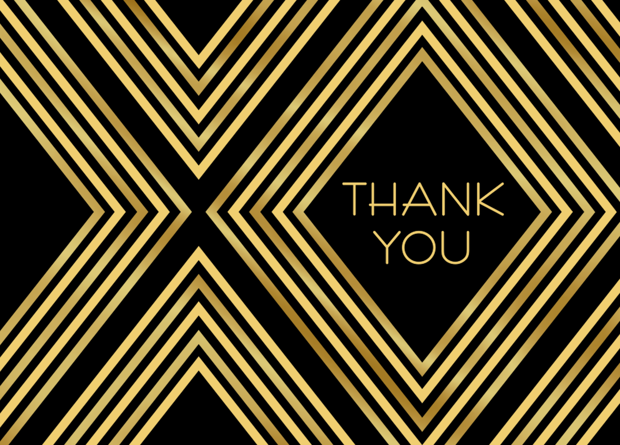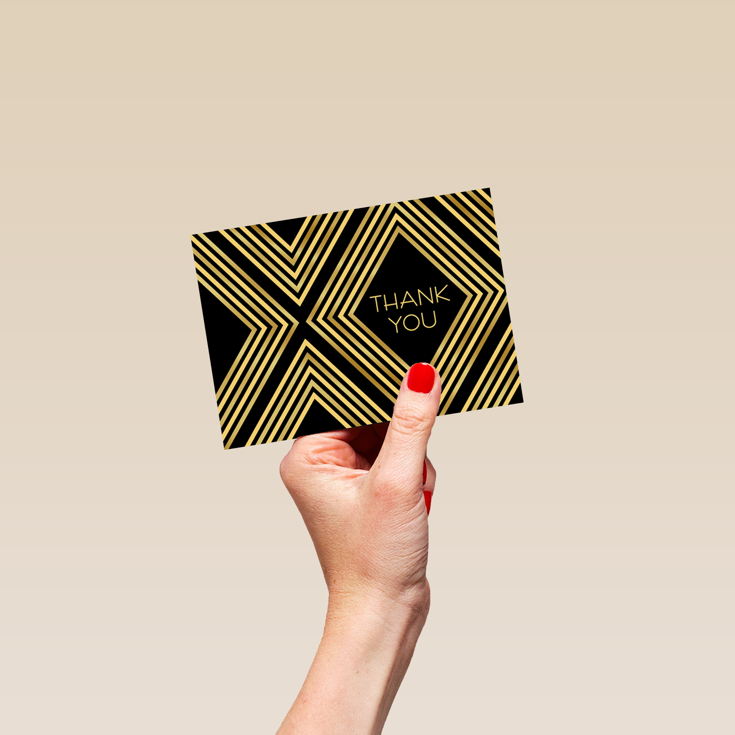 Make sure your appreciation doesn't go unnoticed with this striking black and gold, deco-influenced, Thank You Card.