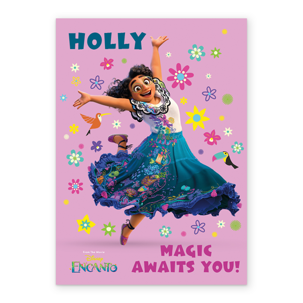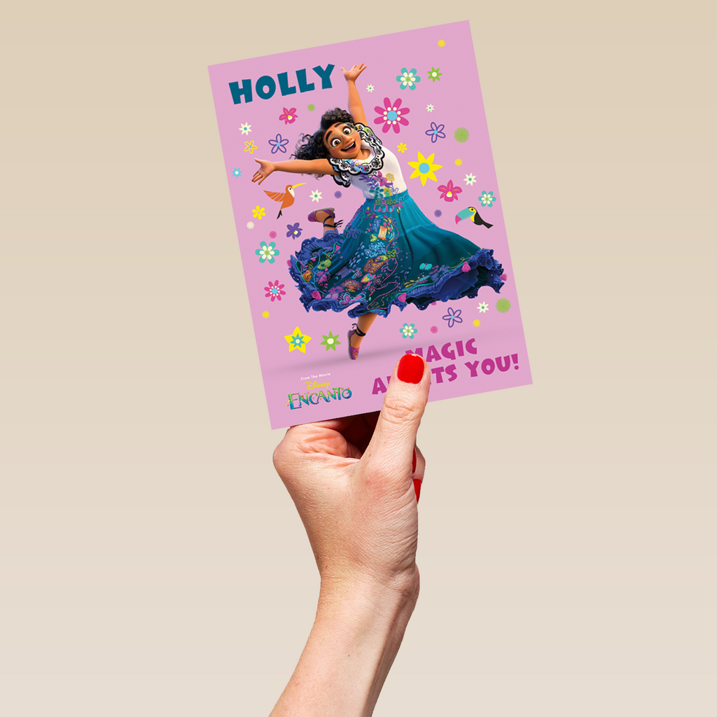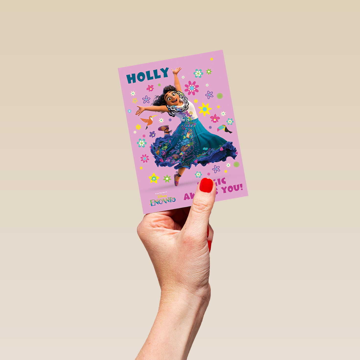 Show them you care with a personalised Encanto birthday card from Hallmark. Our birthday cards are printed on premium quality, FSC®-certified card & delivered nationwide. This card is available as standard 12cm by 16.7cm and large 15.5cm by 21.6cm.