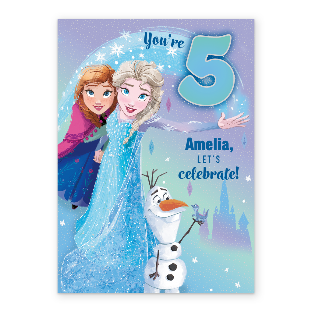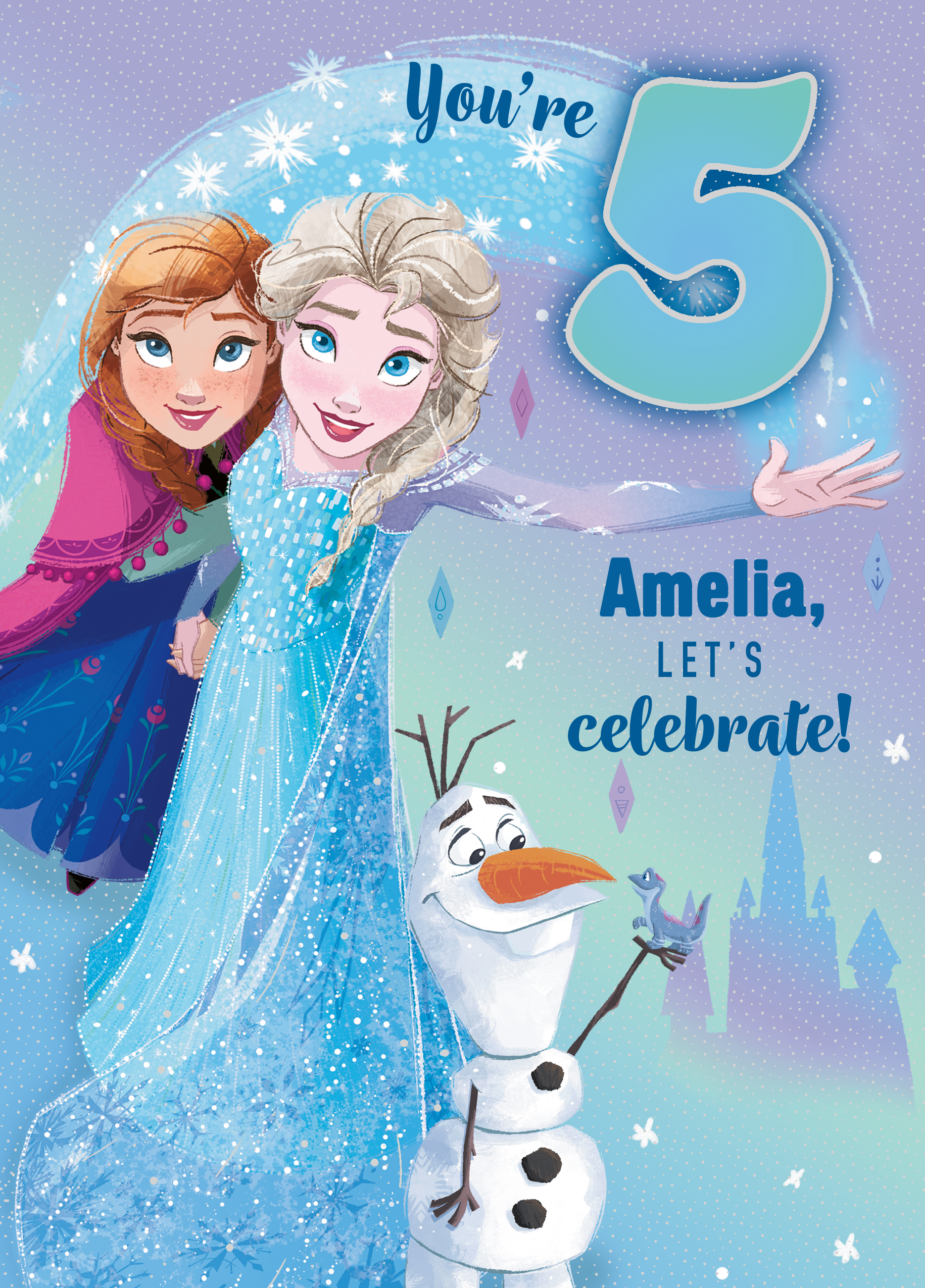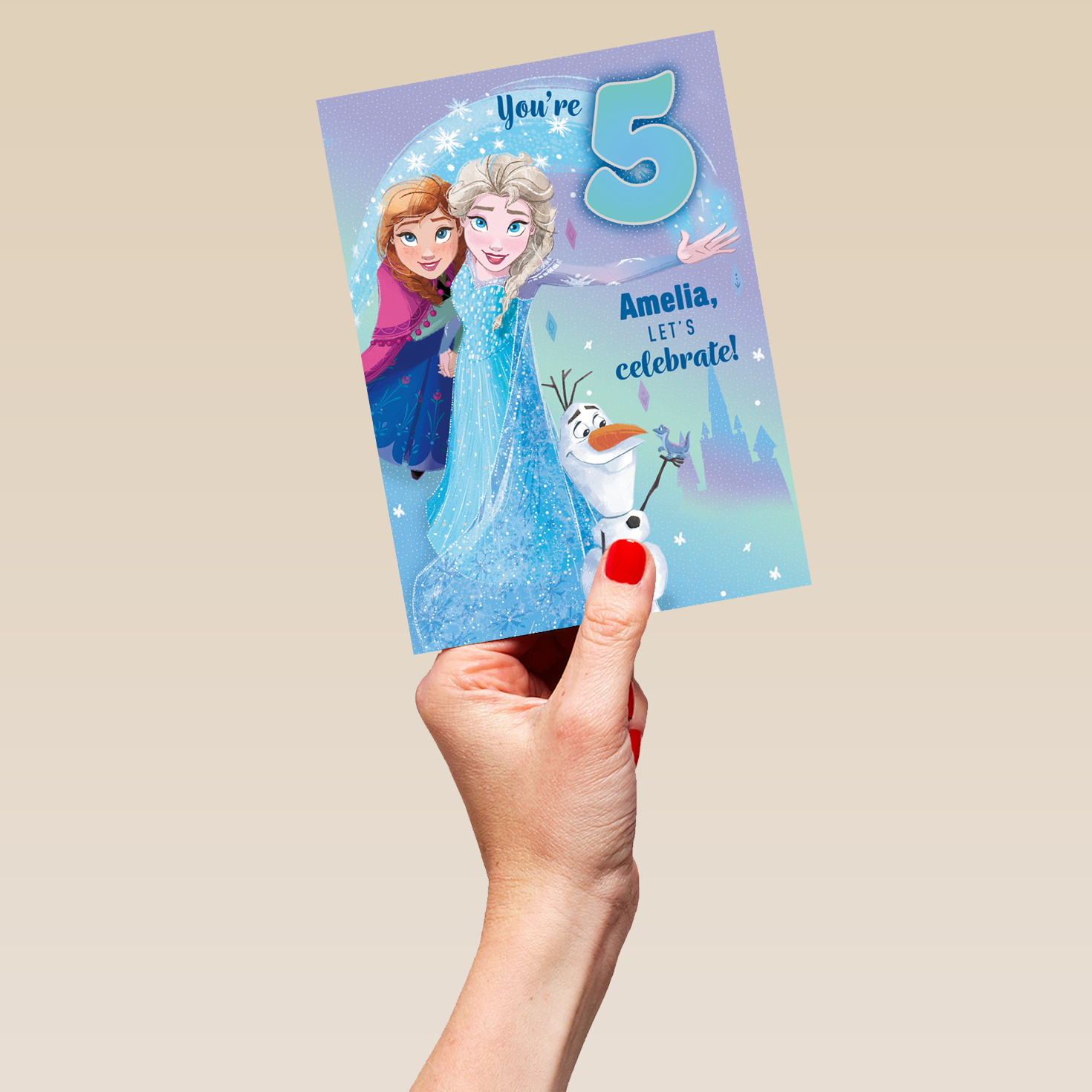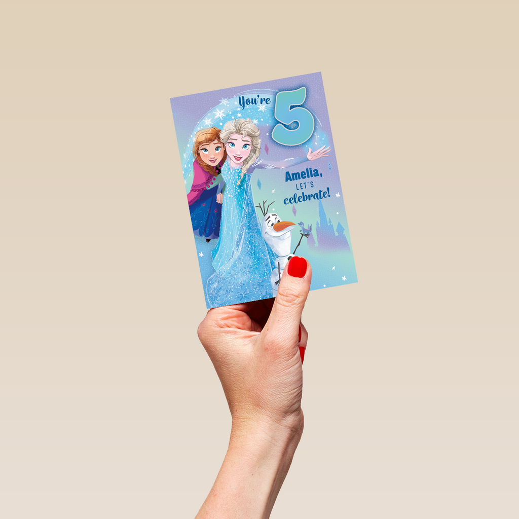 Show them you care with a personalised Disney Frozen 5th Birthday Card from Hallmark.