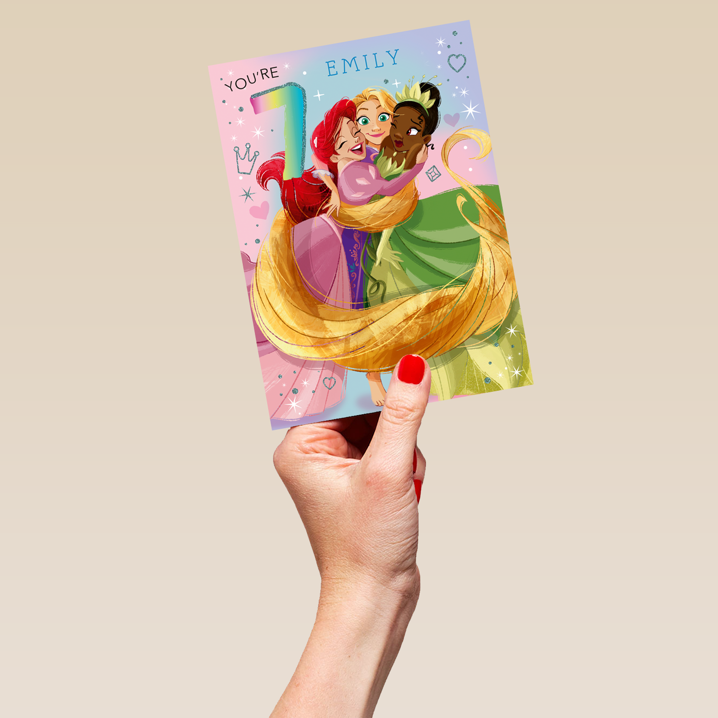 Show them you care with a personalised Disney Princess 7th Birthday Card from Hallmark.