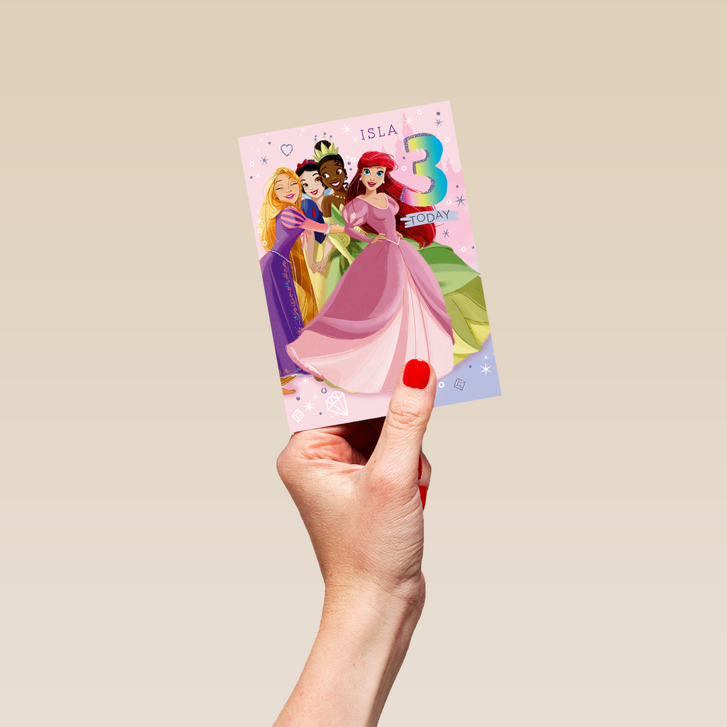 Show them you care with a personalised Disney Princess Colouring 3rd Birthday Card from Hallmark.