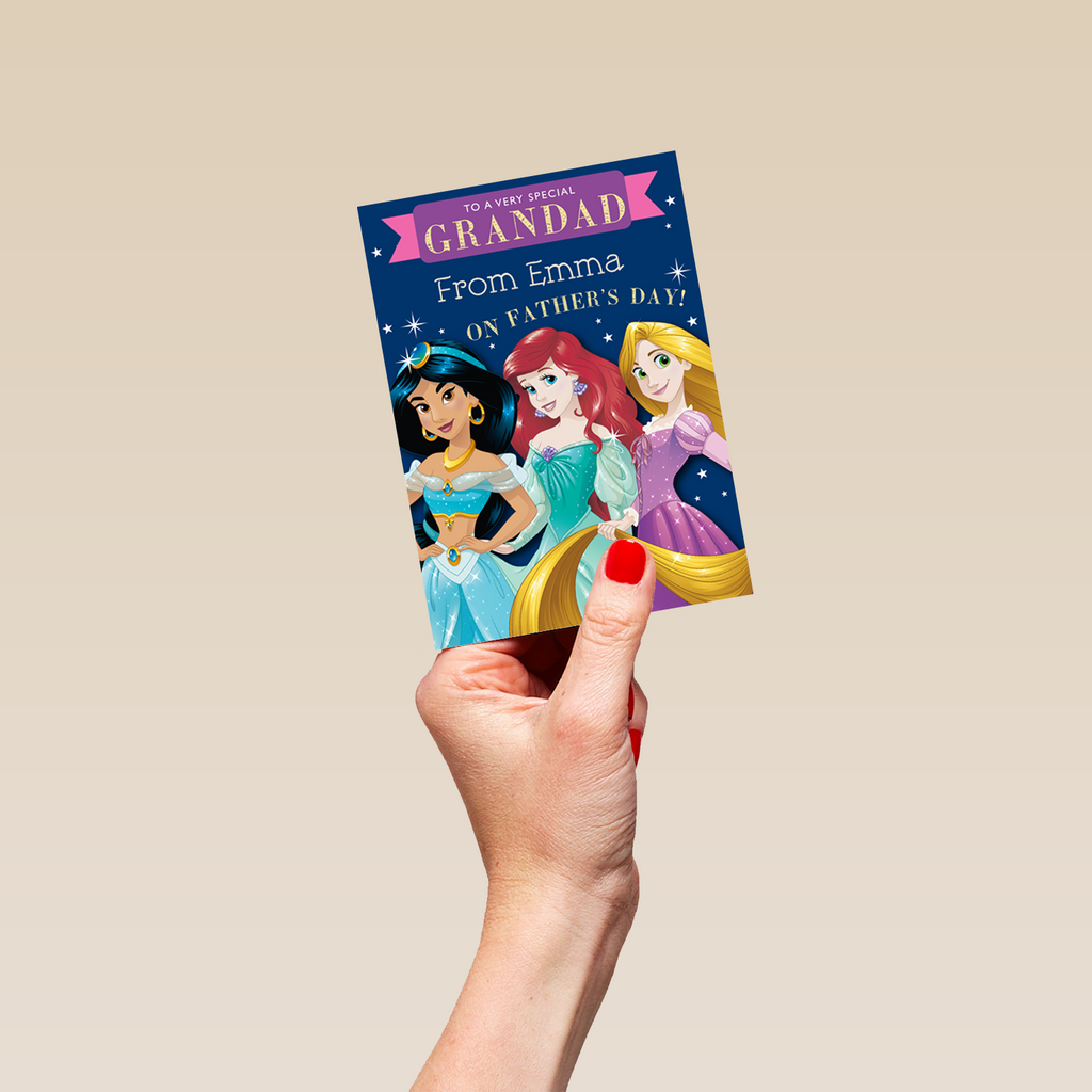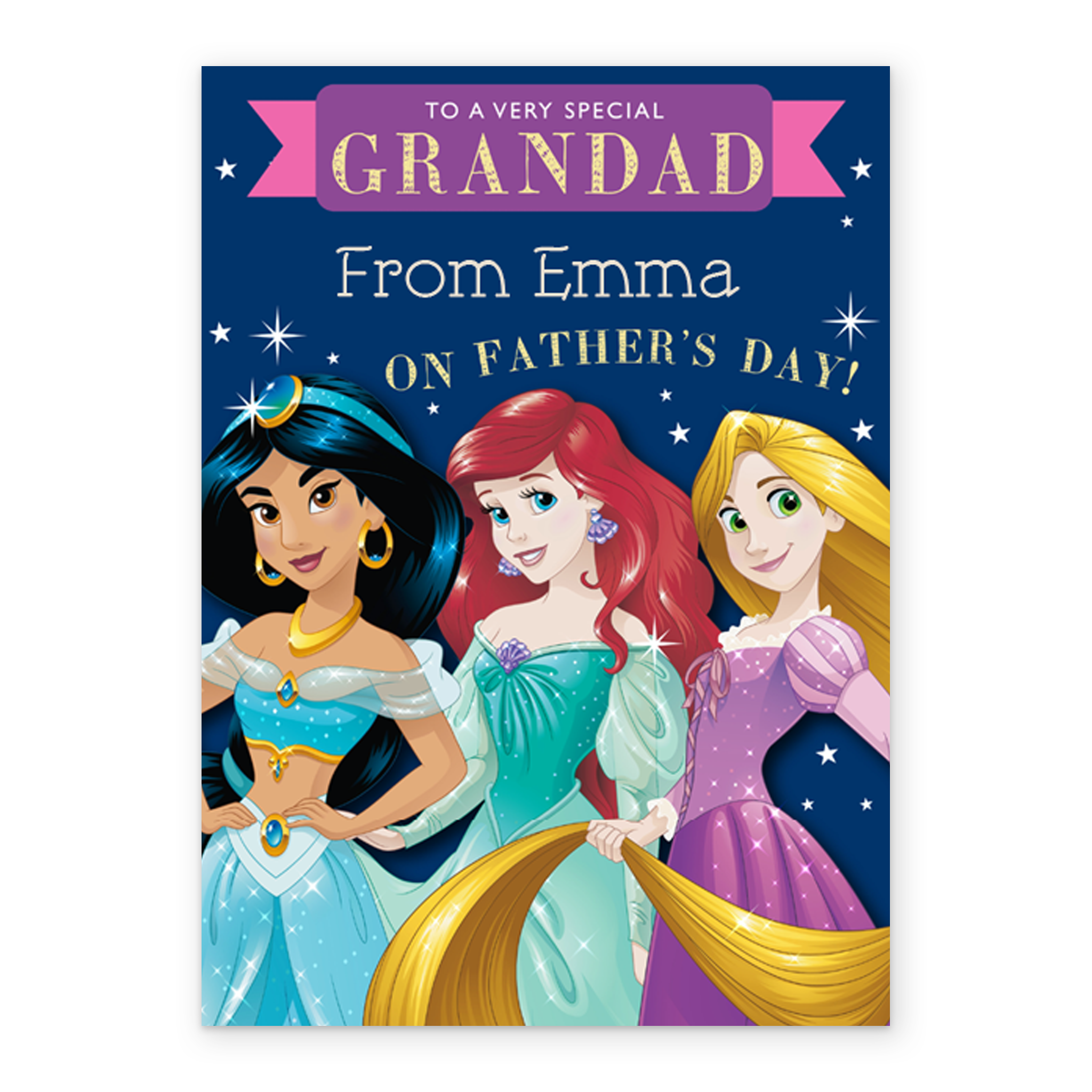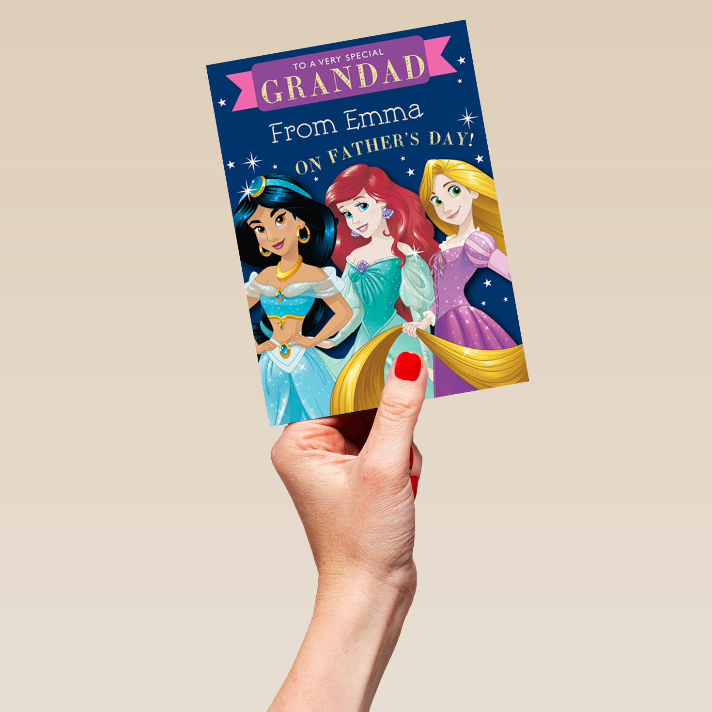Show them you care with a personalised Disney Princess father's day card for grandad from Hall... View more details