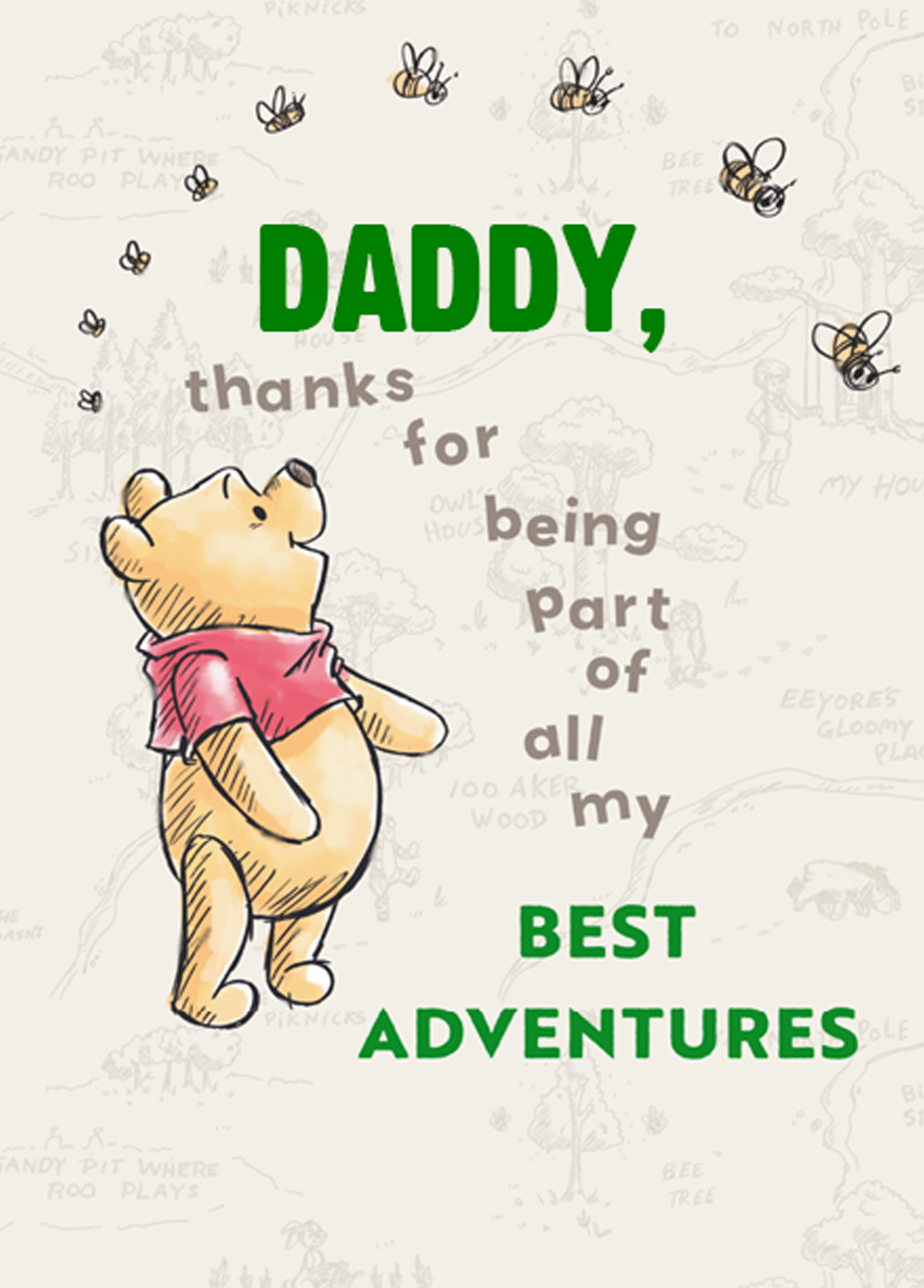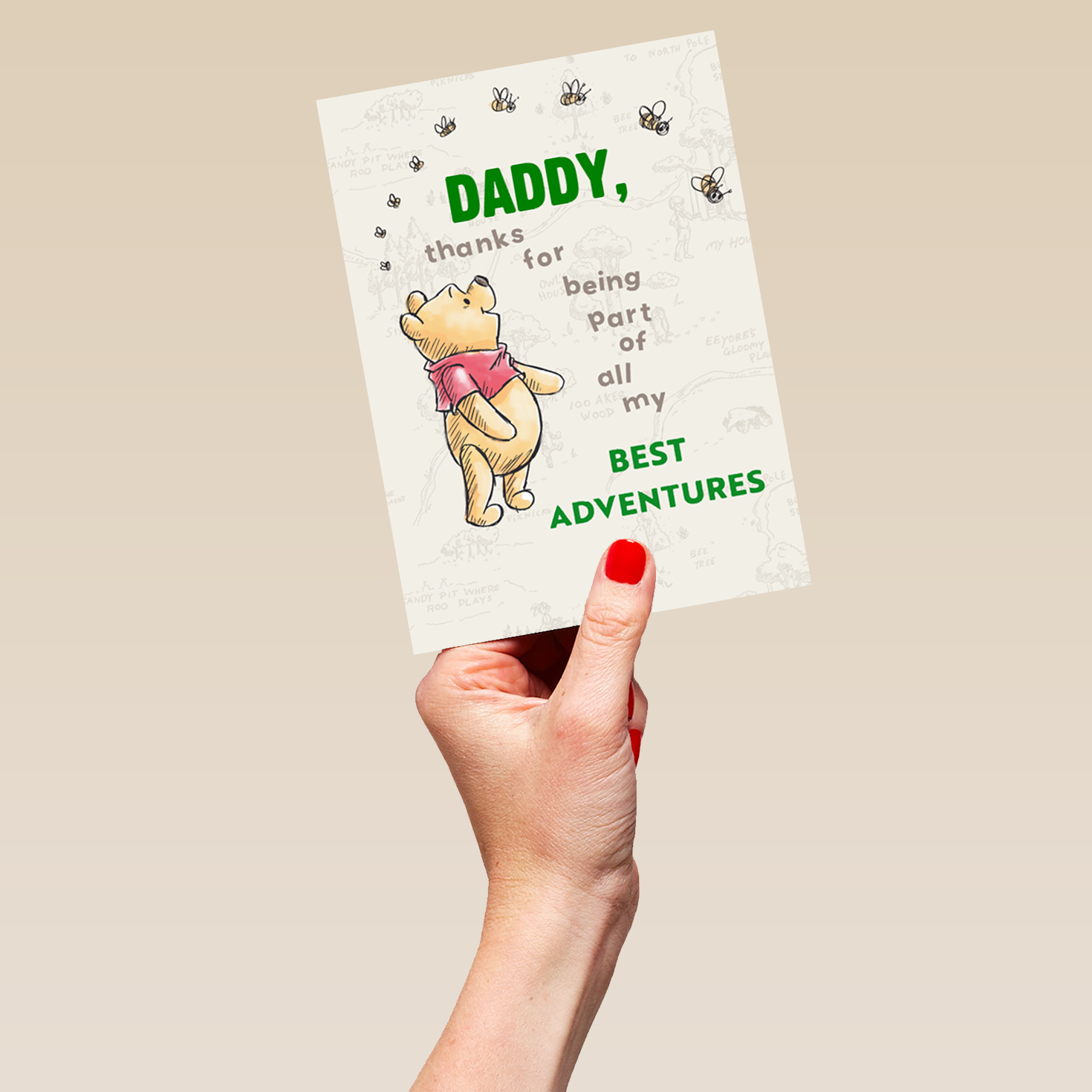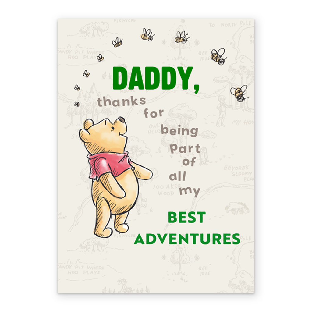 Personalised Disney Winnie The Pooh Cute Adventures Birthday Card For Daddy