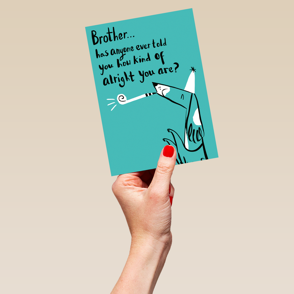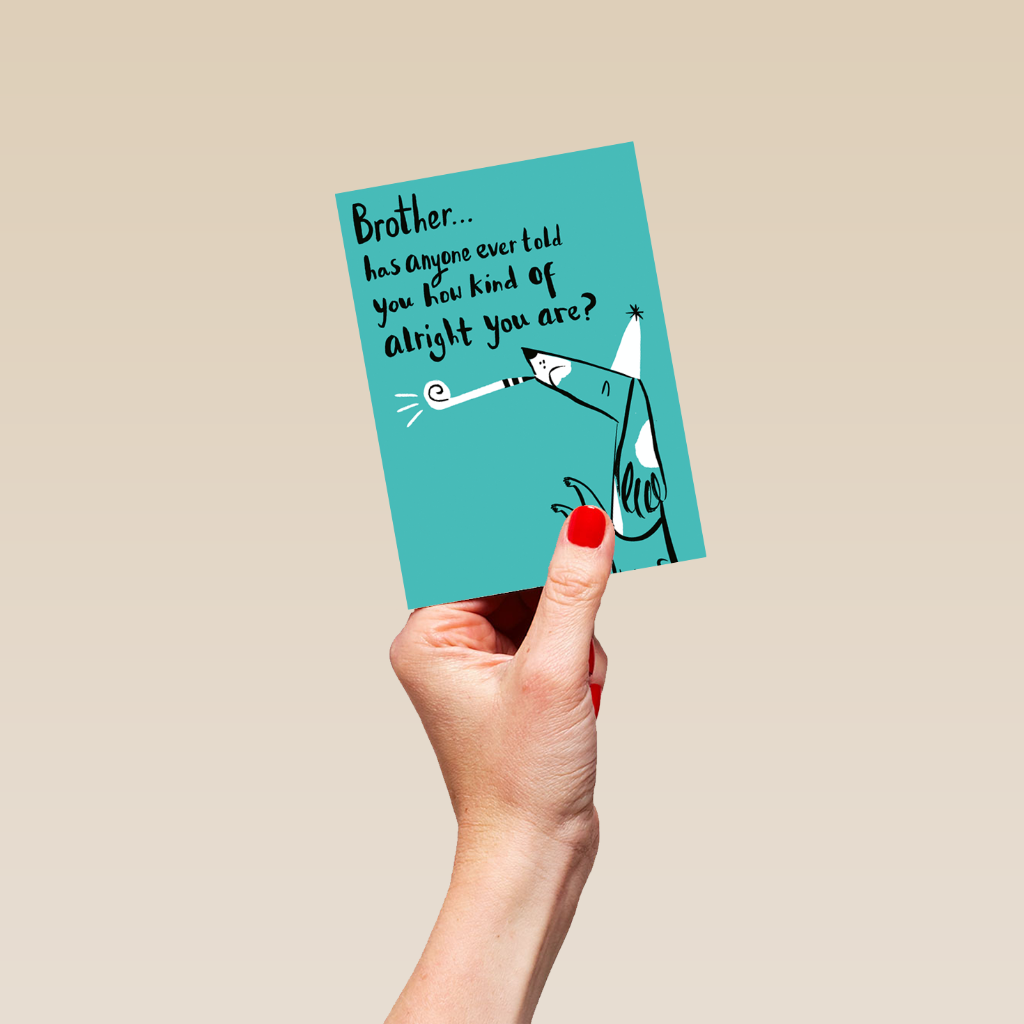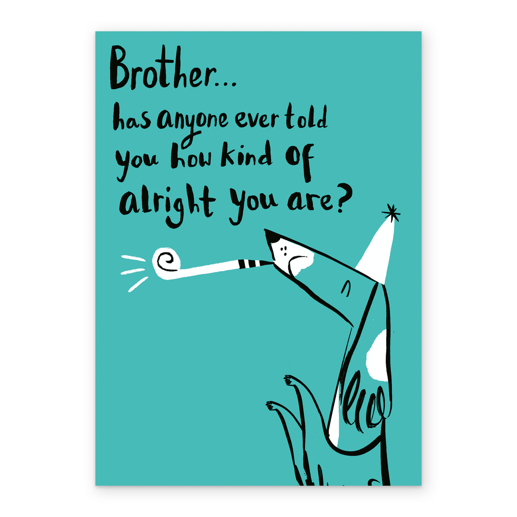 Show them you care with a personalised dog party hat brother birthday card from Hallmark. Our cards for Brother are printed on premium quality, FSC®-certified card & delivered nationwide. This card is available as standard 12cm by 16.7cm and large 15.5cm by 21.6cm.