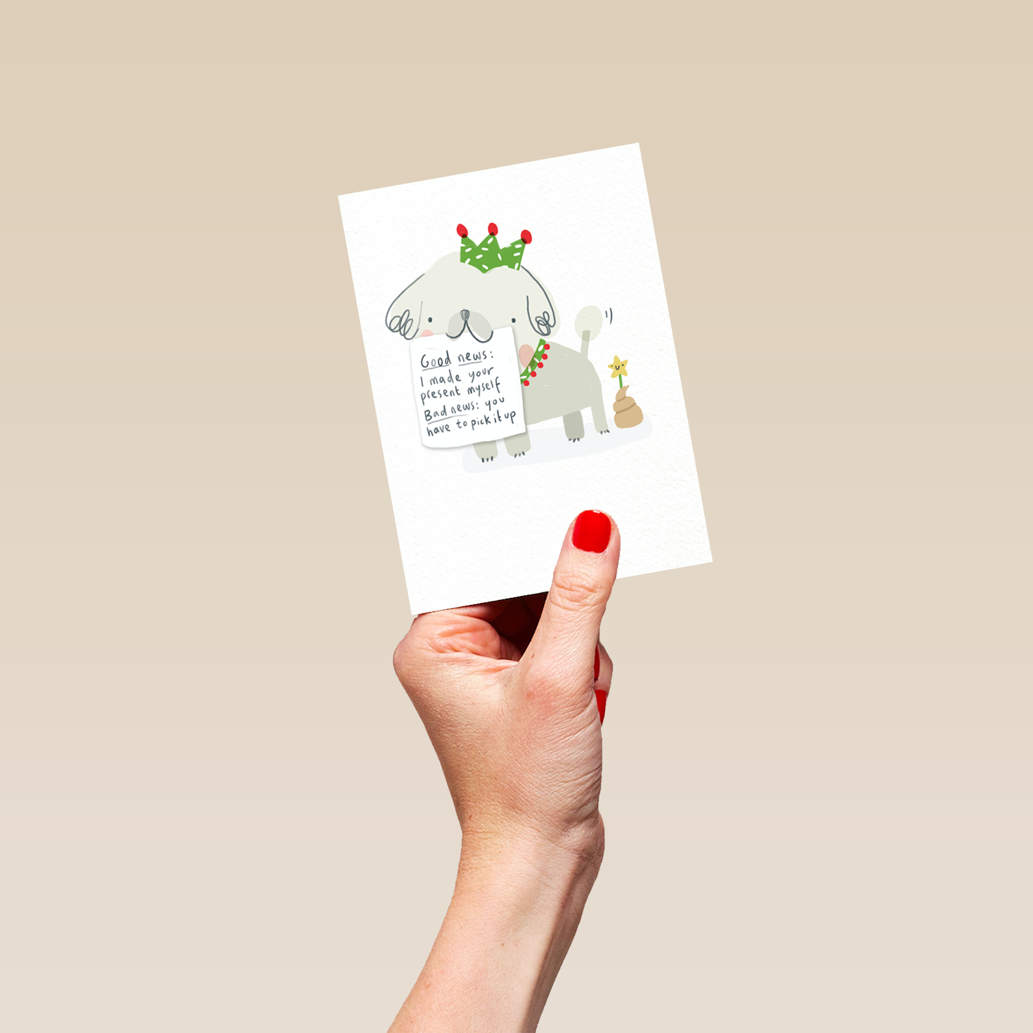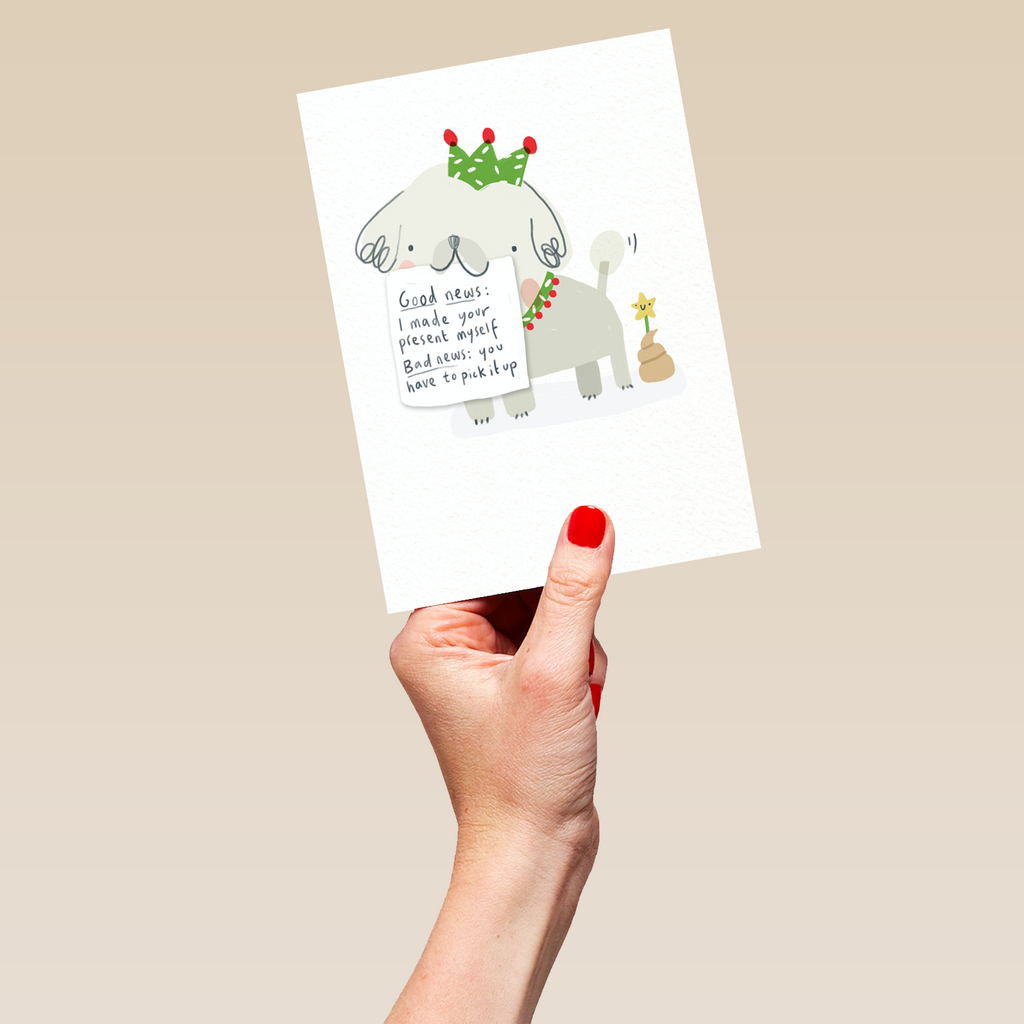 Show them you care with a personalised dog shaming funny hat Christmas card from Hallmark. Our greetings cards are printed on premium quality, FSC®-certified card & delivered nationwide. This card is available as standard 12cm by 16.7cm and large 15.5cm by 21.6cm.