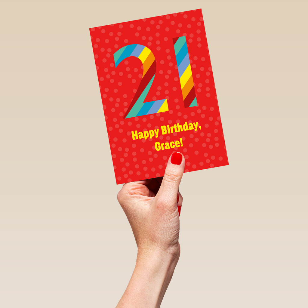 Make sure their 21st birthday is just as bright and colourful as them and make their day vibrant and full of fun with this personalised and editable 21st birthday card from Hallmark. The perfect way to celebrate their birthday milestone.