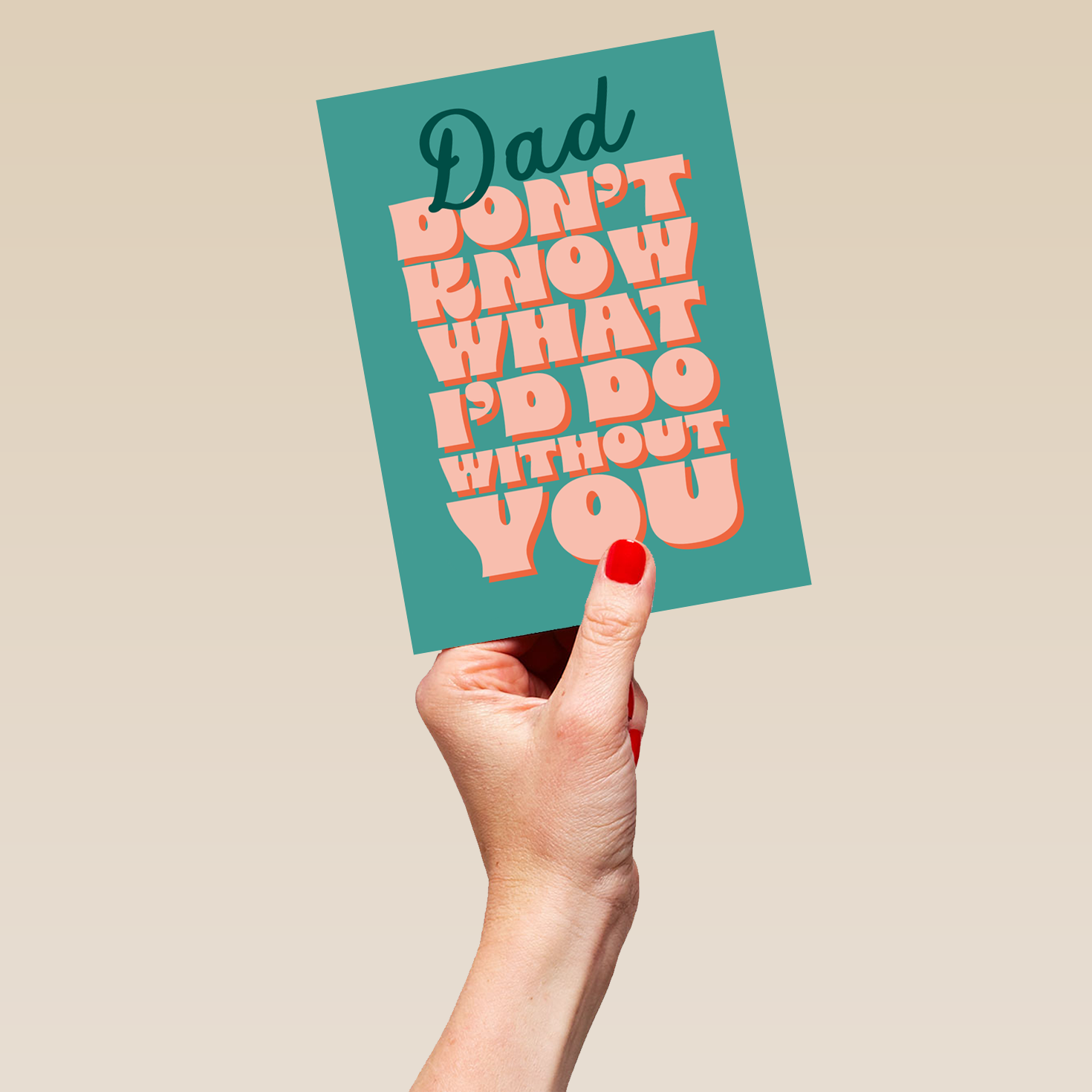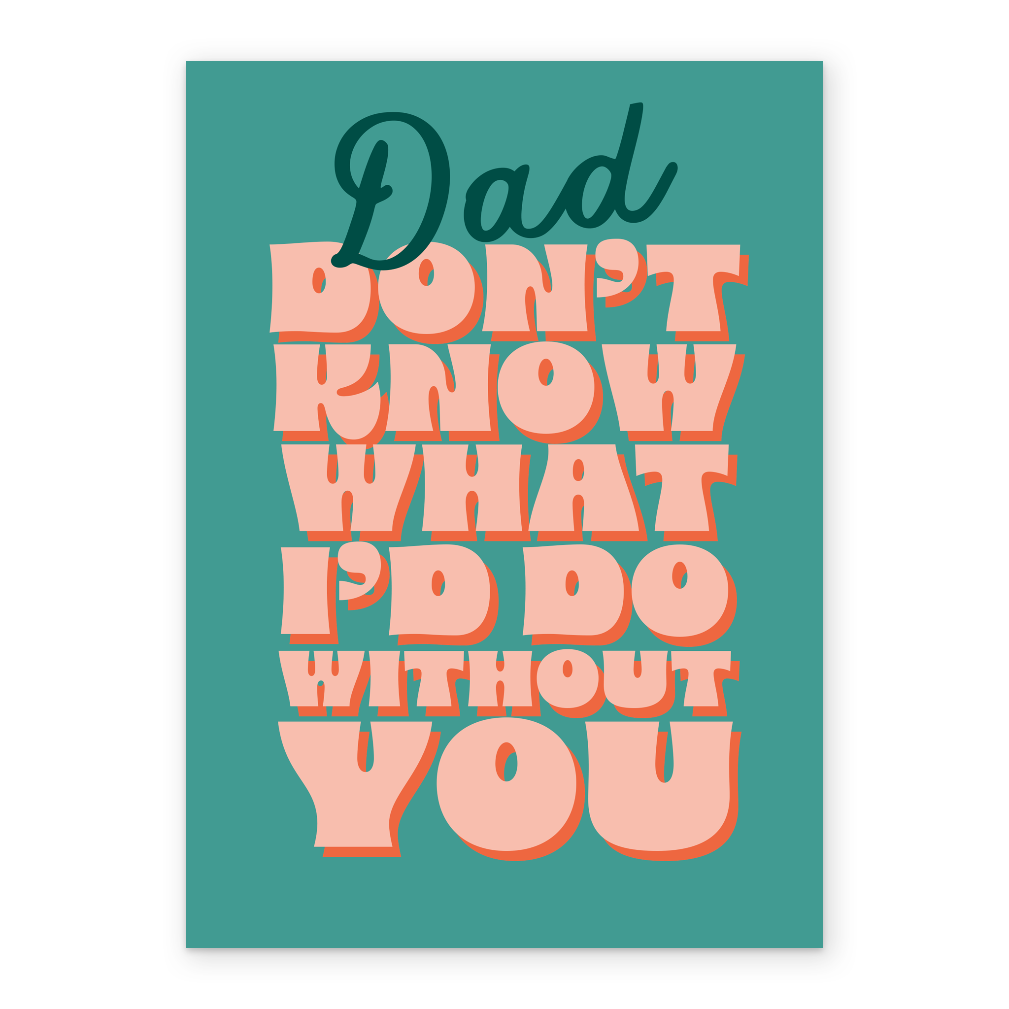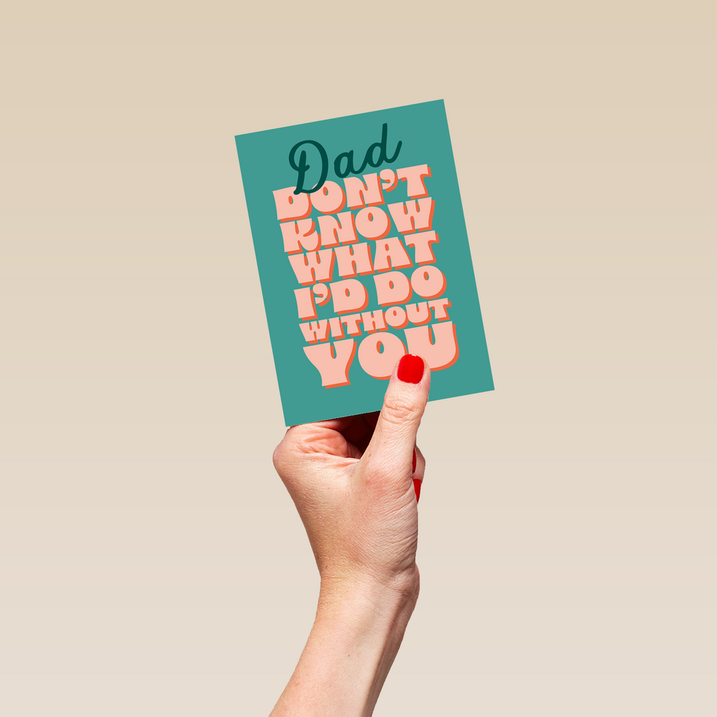 Printed on premium-quality board, this card features a bold retro style word art design, with the message 'Dad, don't know what I'd do without you', space to personalise your message, and comes complete with a co-ordinating white envelope.
