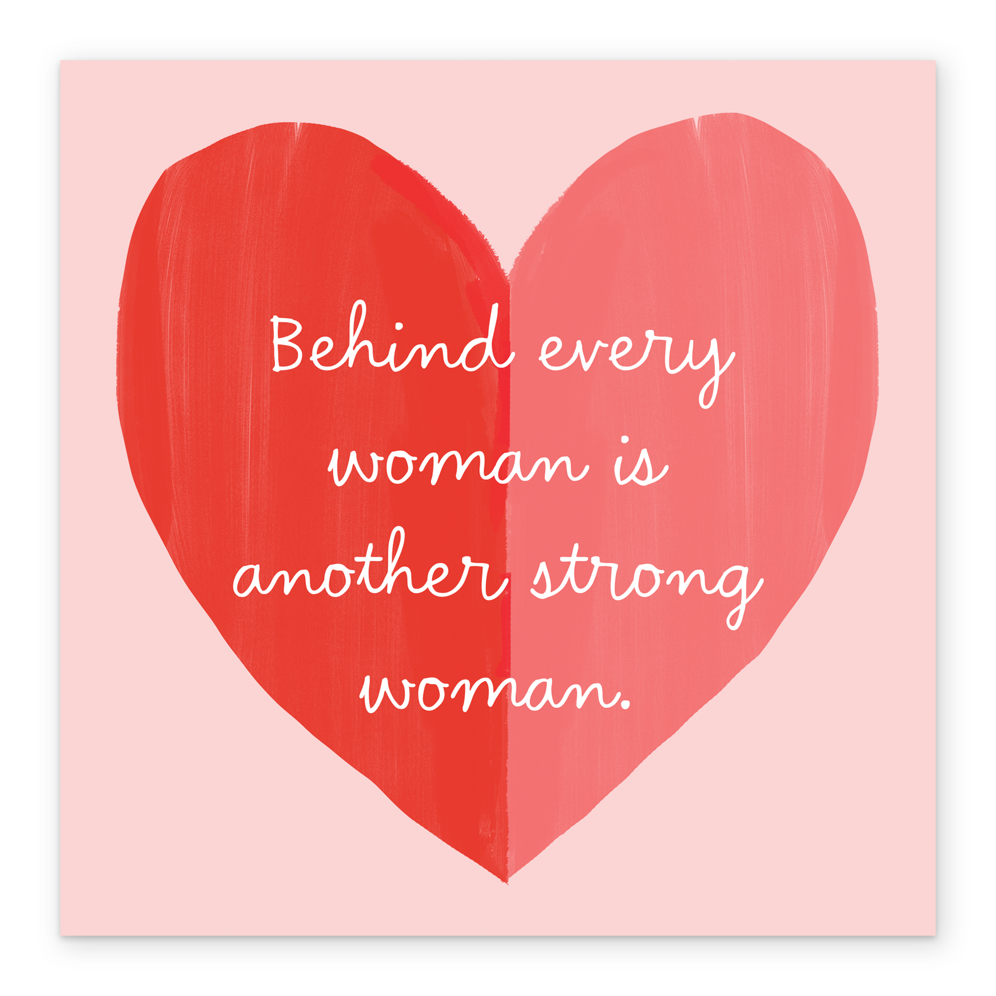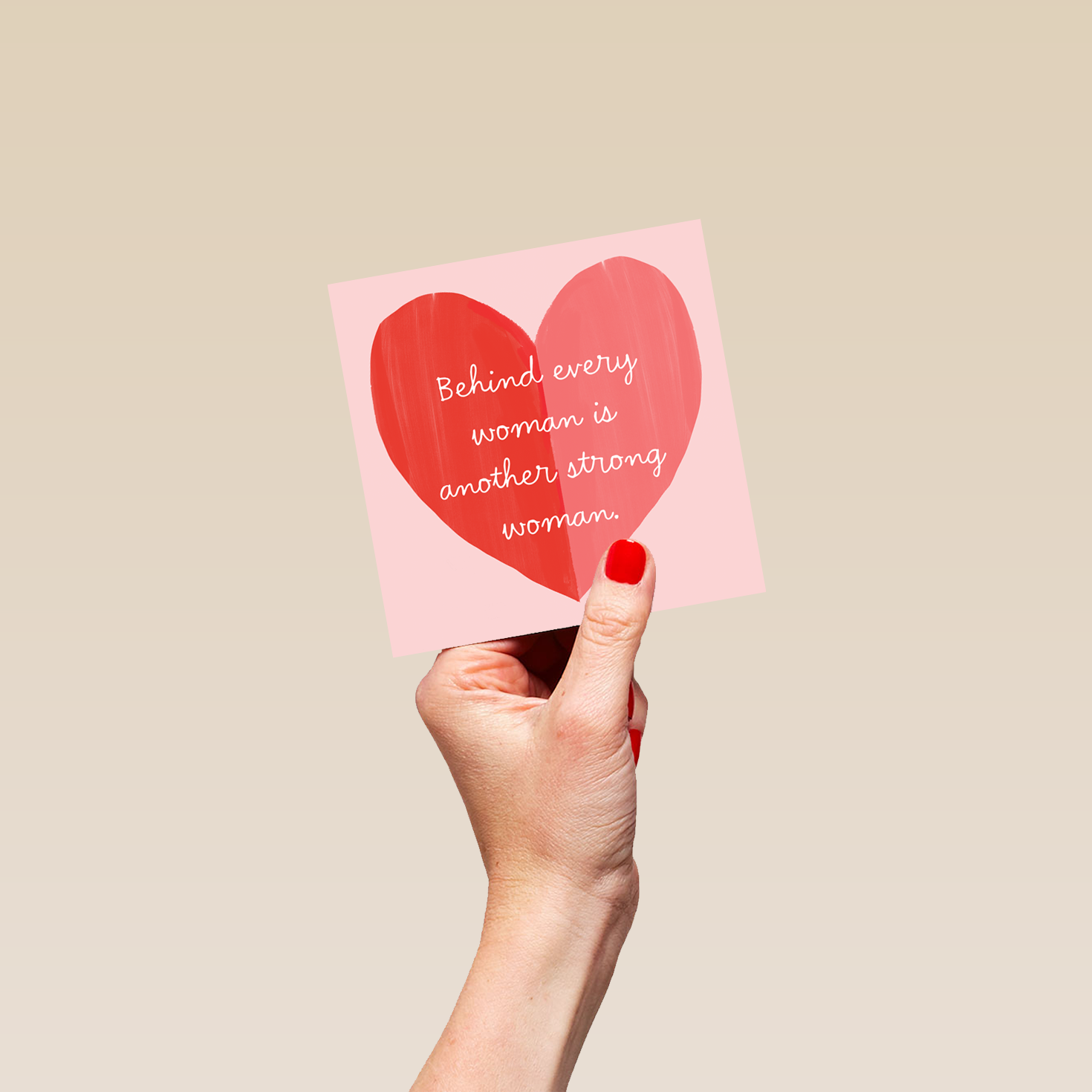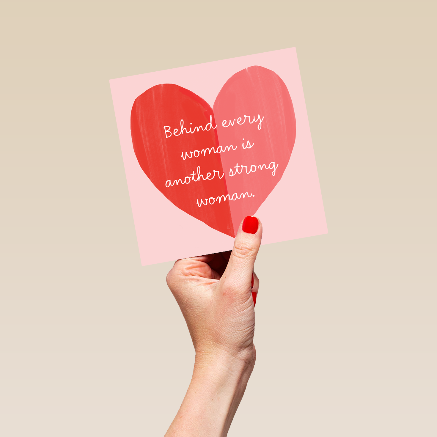 Printed on premium-quality board, this card features an asymmetrical heart with a red and pink design, with the message 'Behind every woman is another strong woman', space to personalise your message, and comes complete with a co-ordinating white envelope.