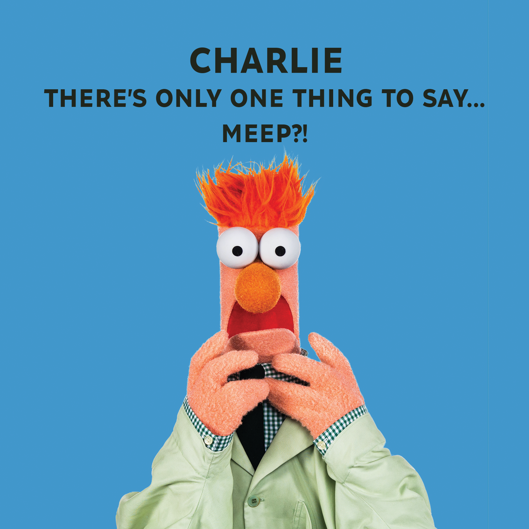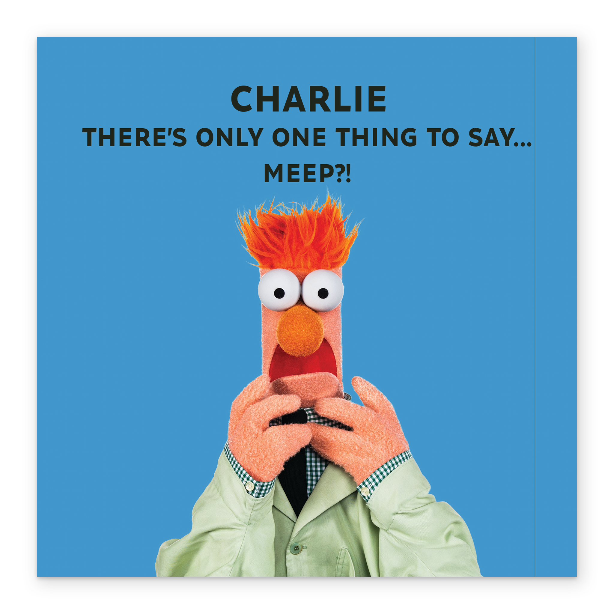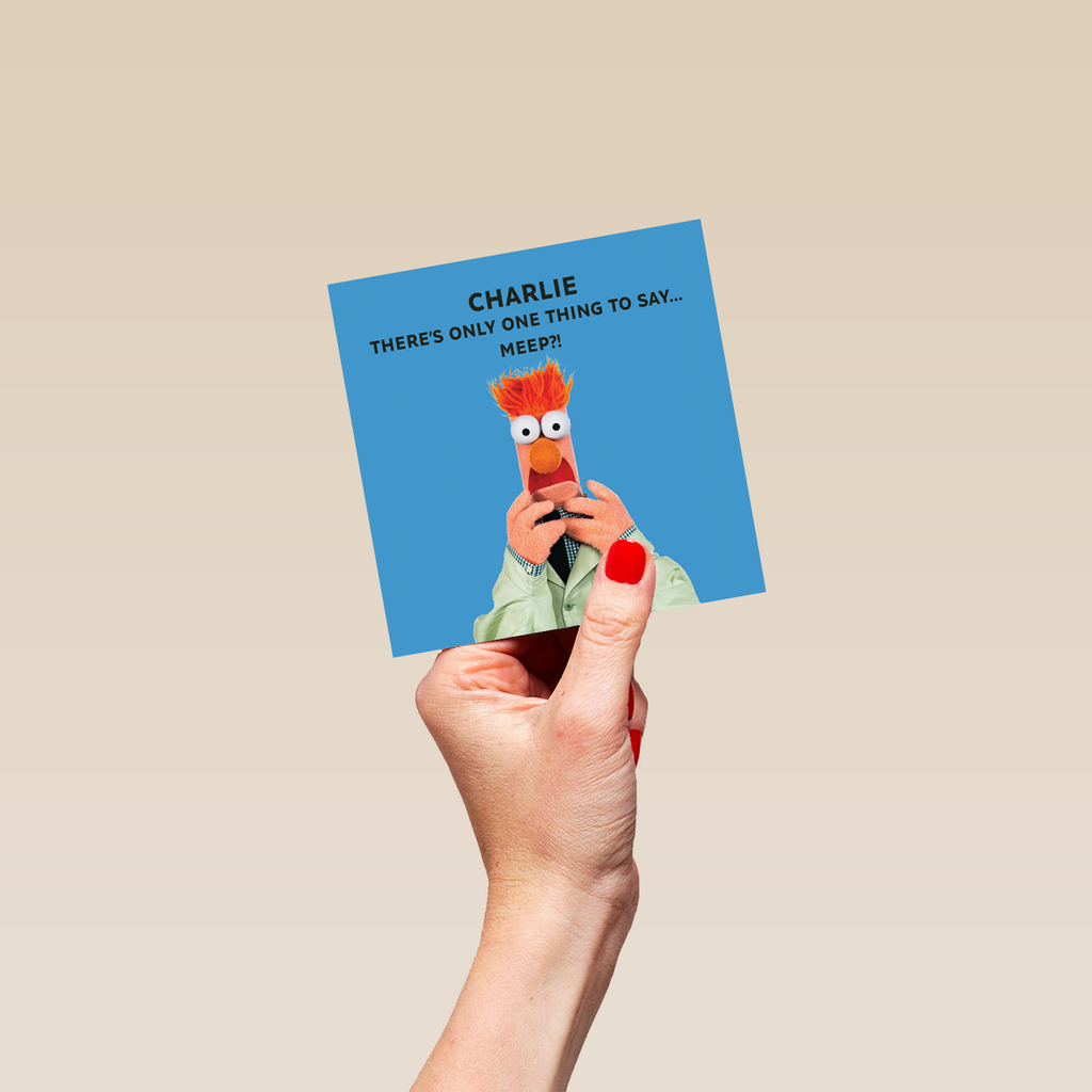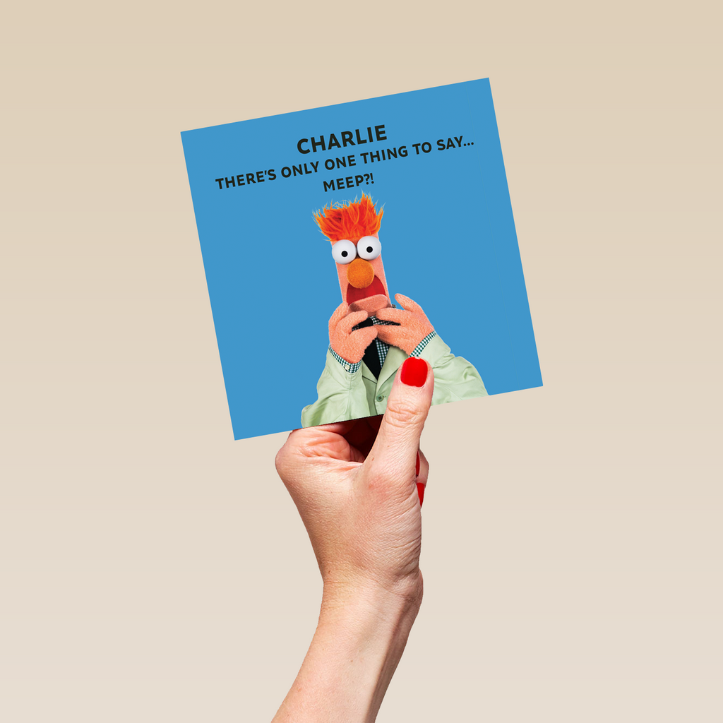 Printed on premium-quality board, this card features Beaker from The Muppets, with the message '[NAME] There's Only One Thing To Say… Meep!?', space to personalise a name, and comes complete with a co-ordinating white envelope.