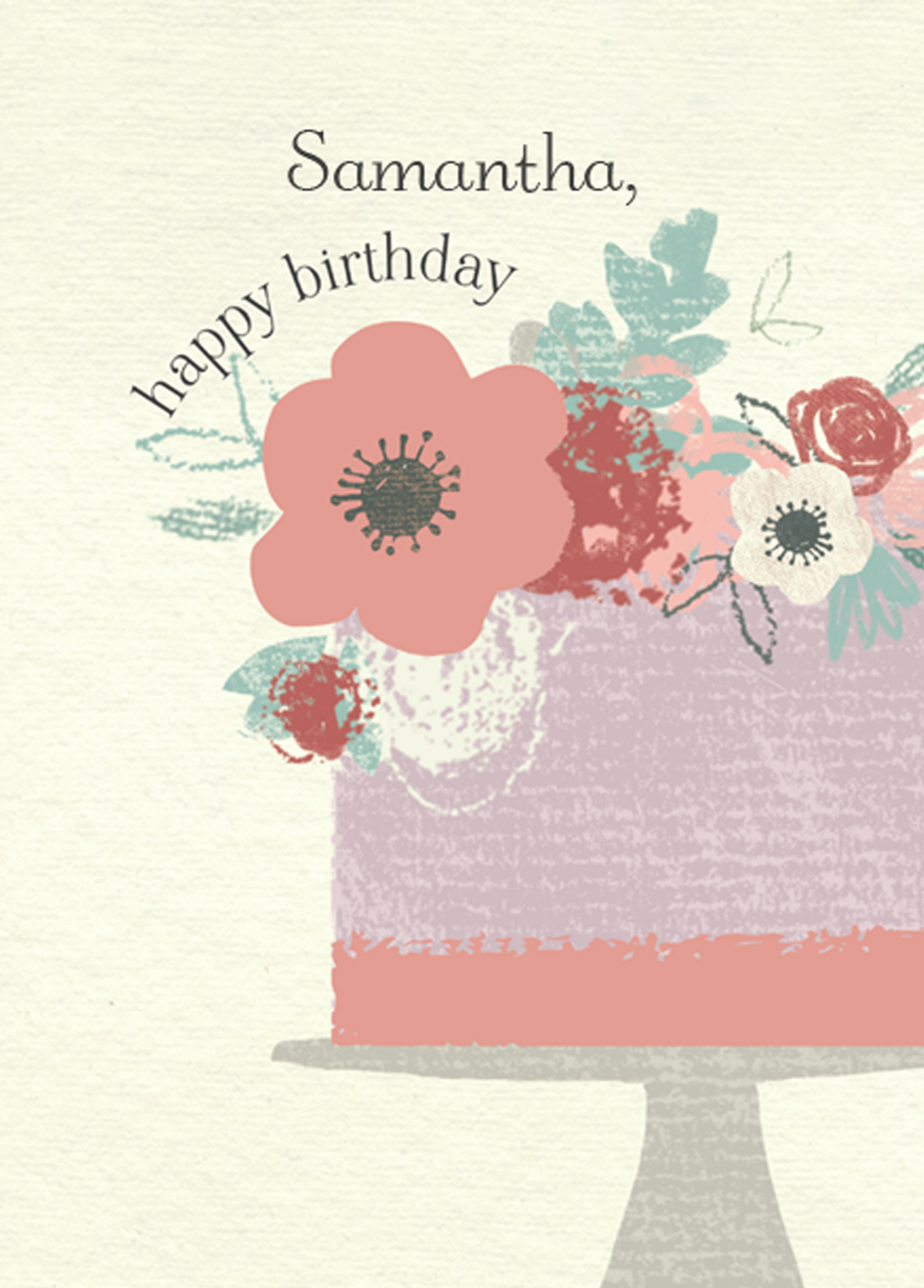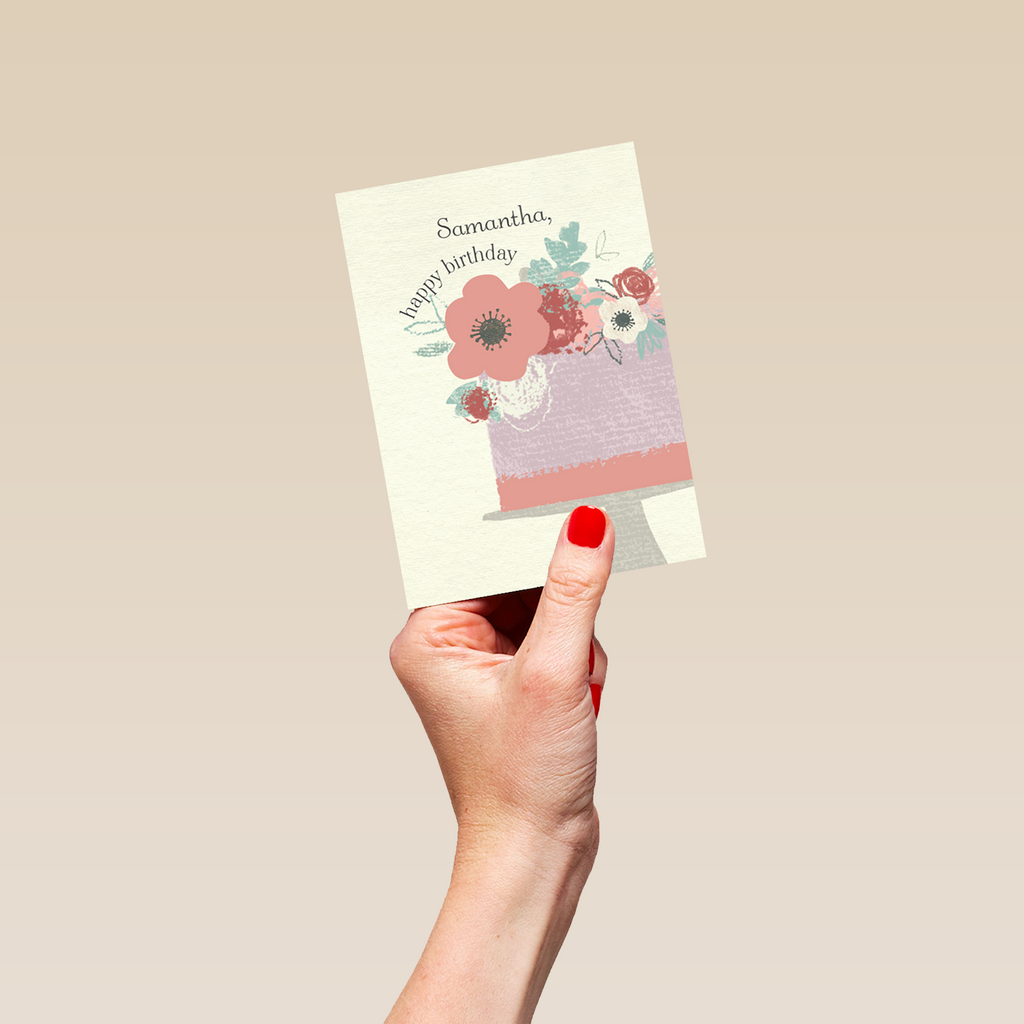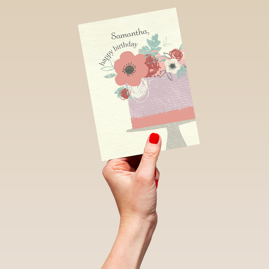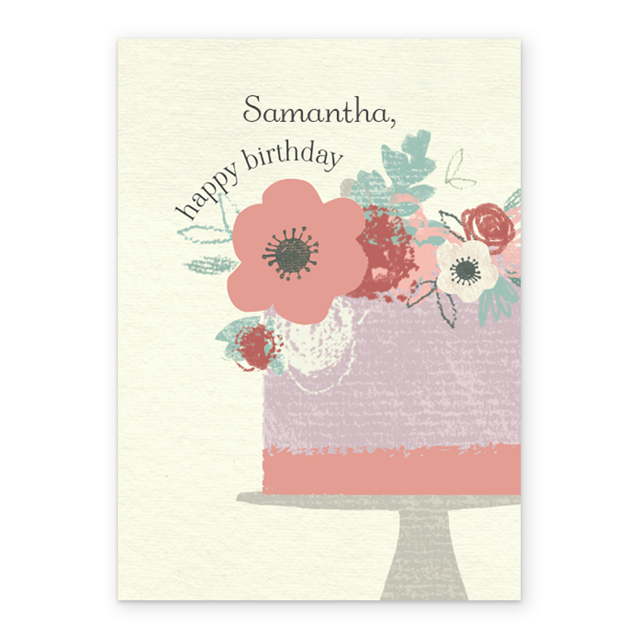Show them you care with a personalised editable cake and flowers birthday card from Hallmark. Our birthday cards are printed on premium quality, FSC®-certified card & delivered nationwide.