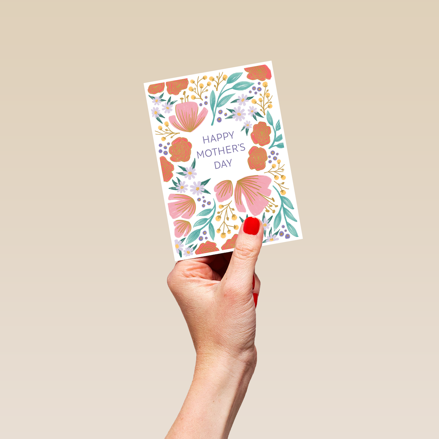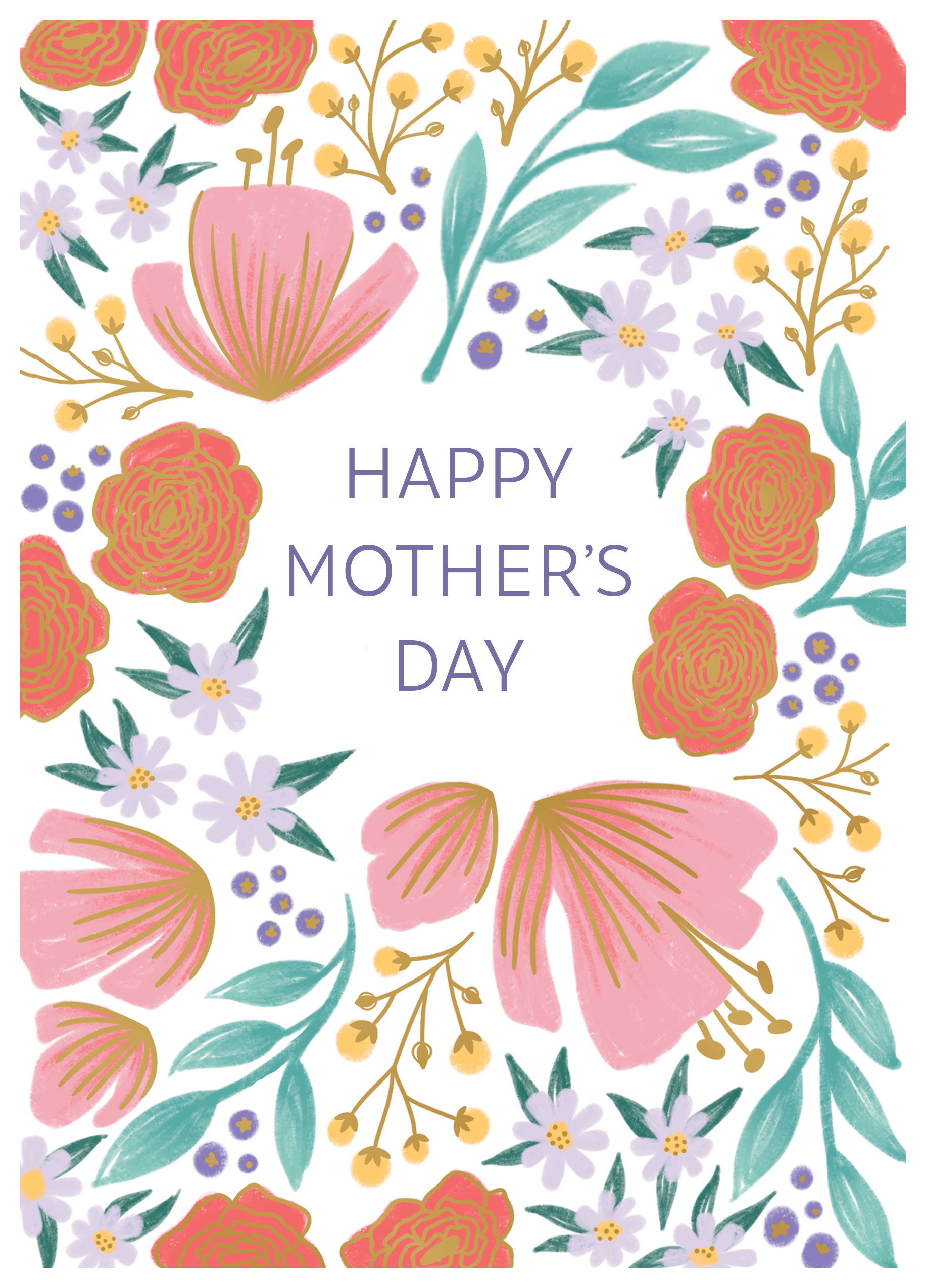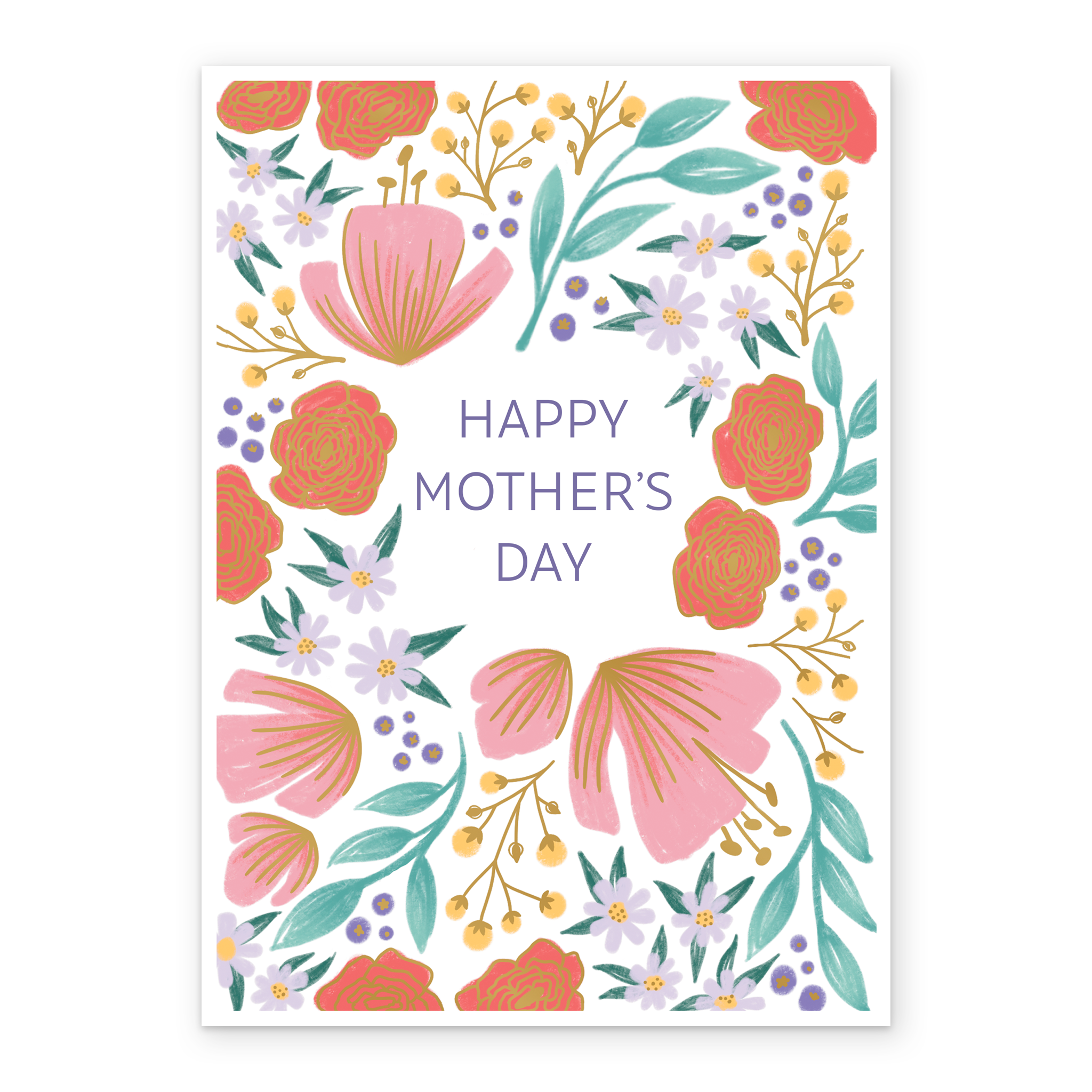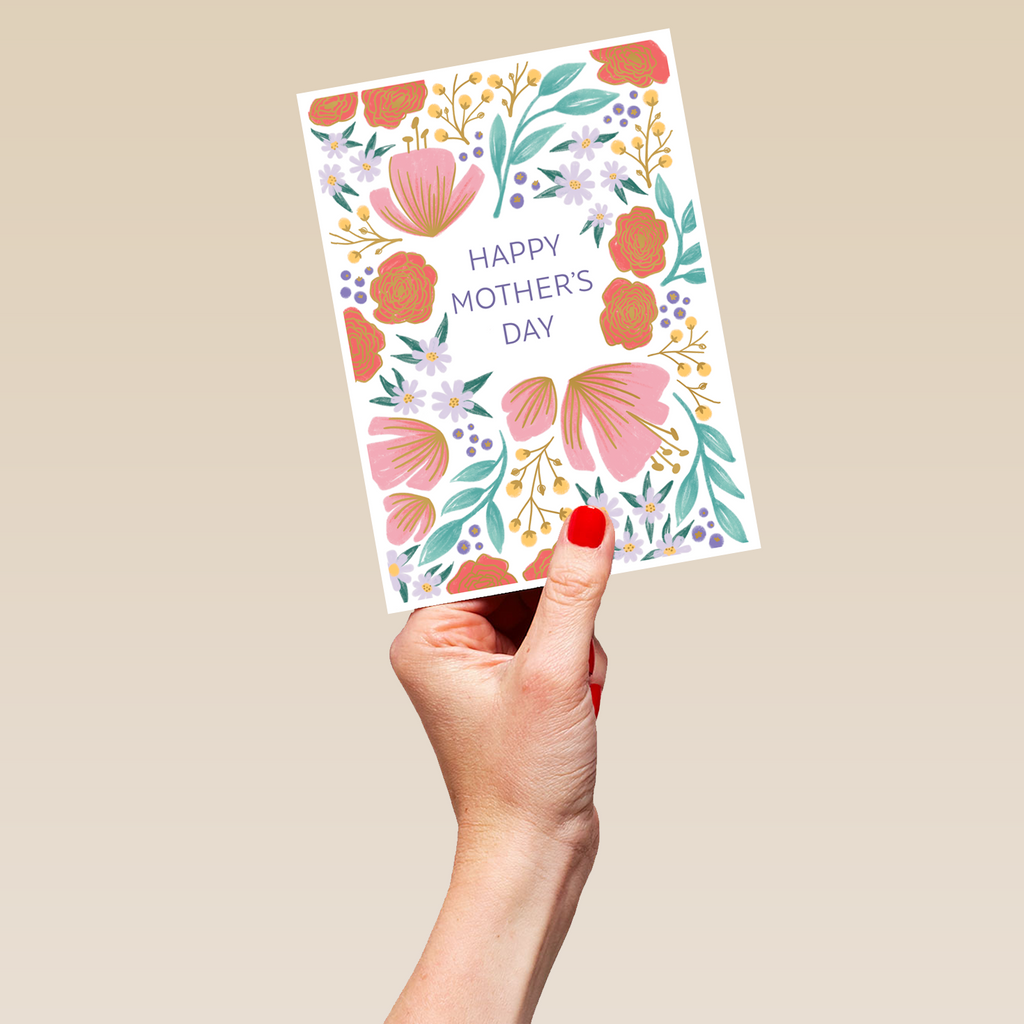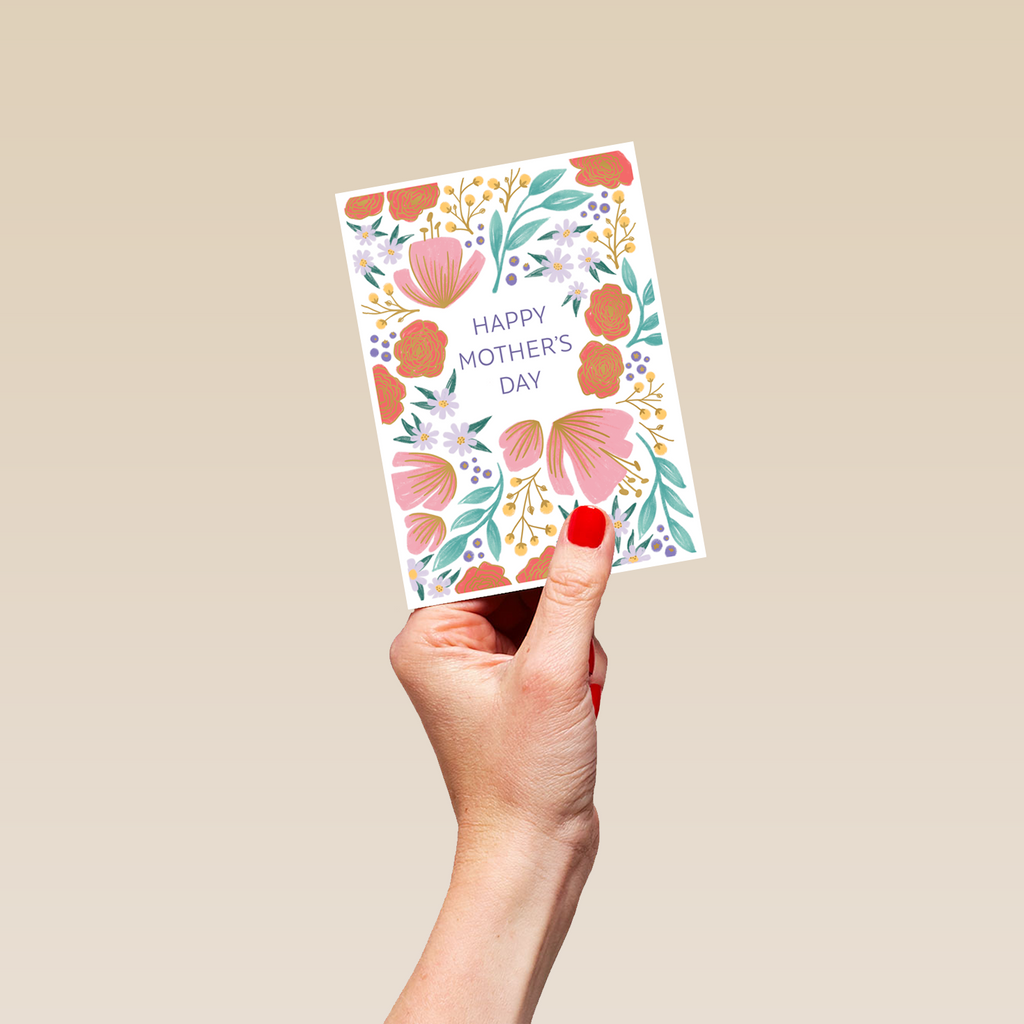 Printed on premium-quality board, this card features a floral border with flowers, with the message 'Happy Mother's Day', space to personalise your message, and comes complete with a co-ordinating white envelope.