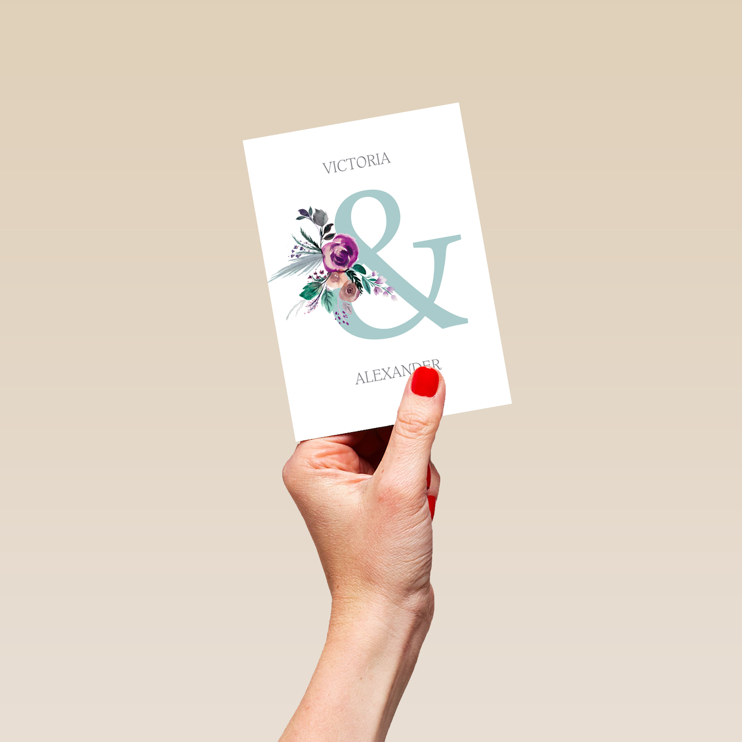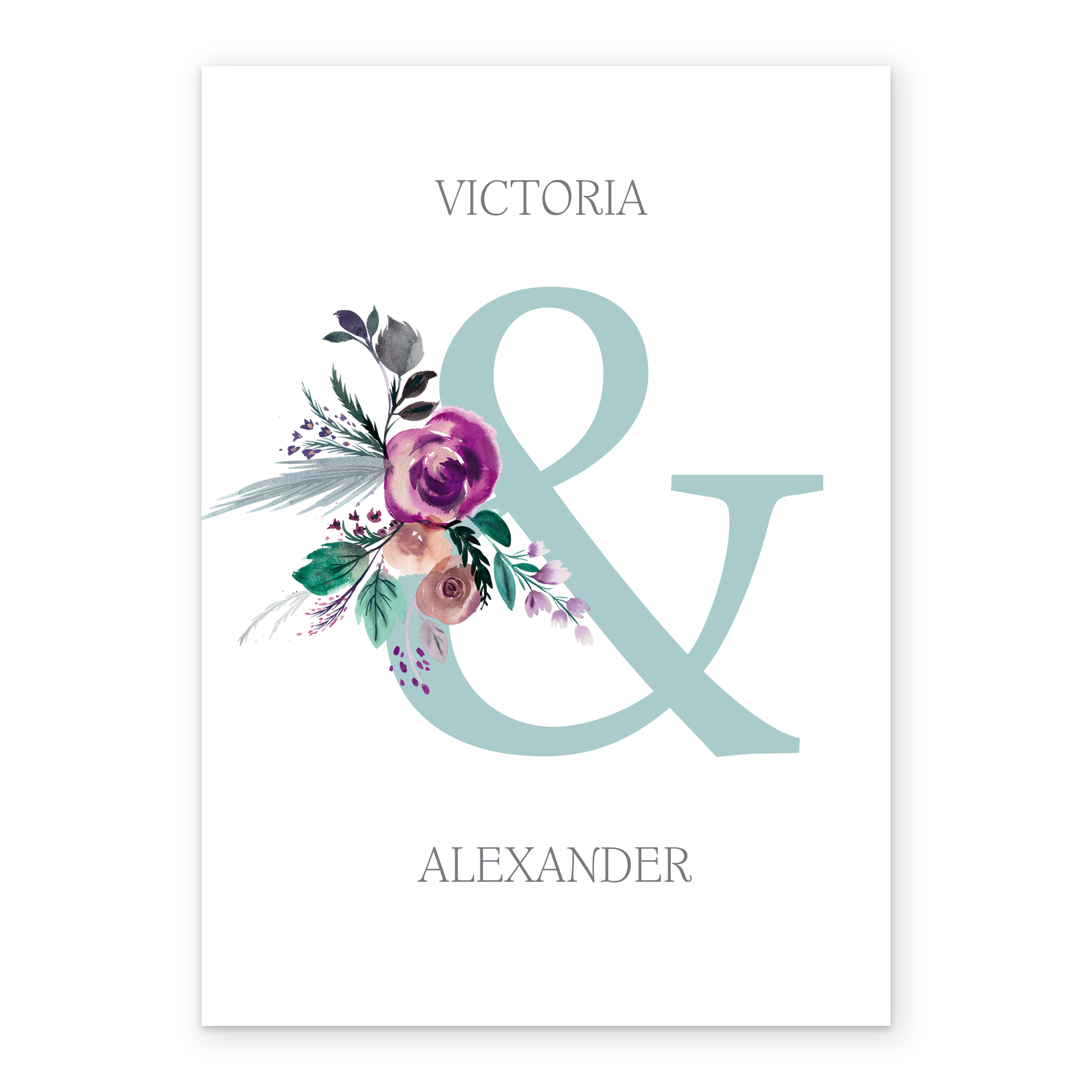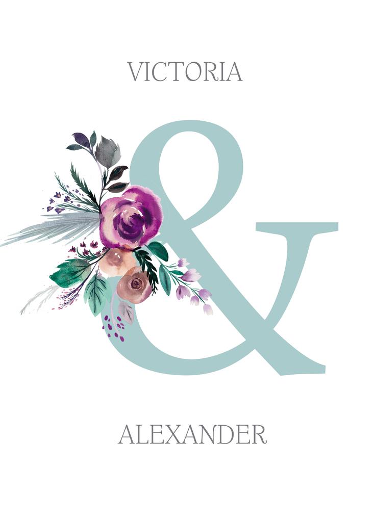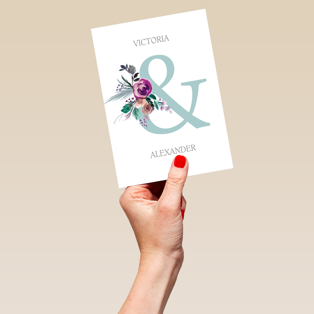 Printed on premium-quality board, this card features a stylish ampersand design with a floral spray, space to personalise a name, and comes complete with a co-ordinating white envelope.
