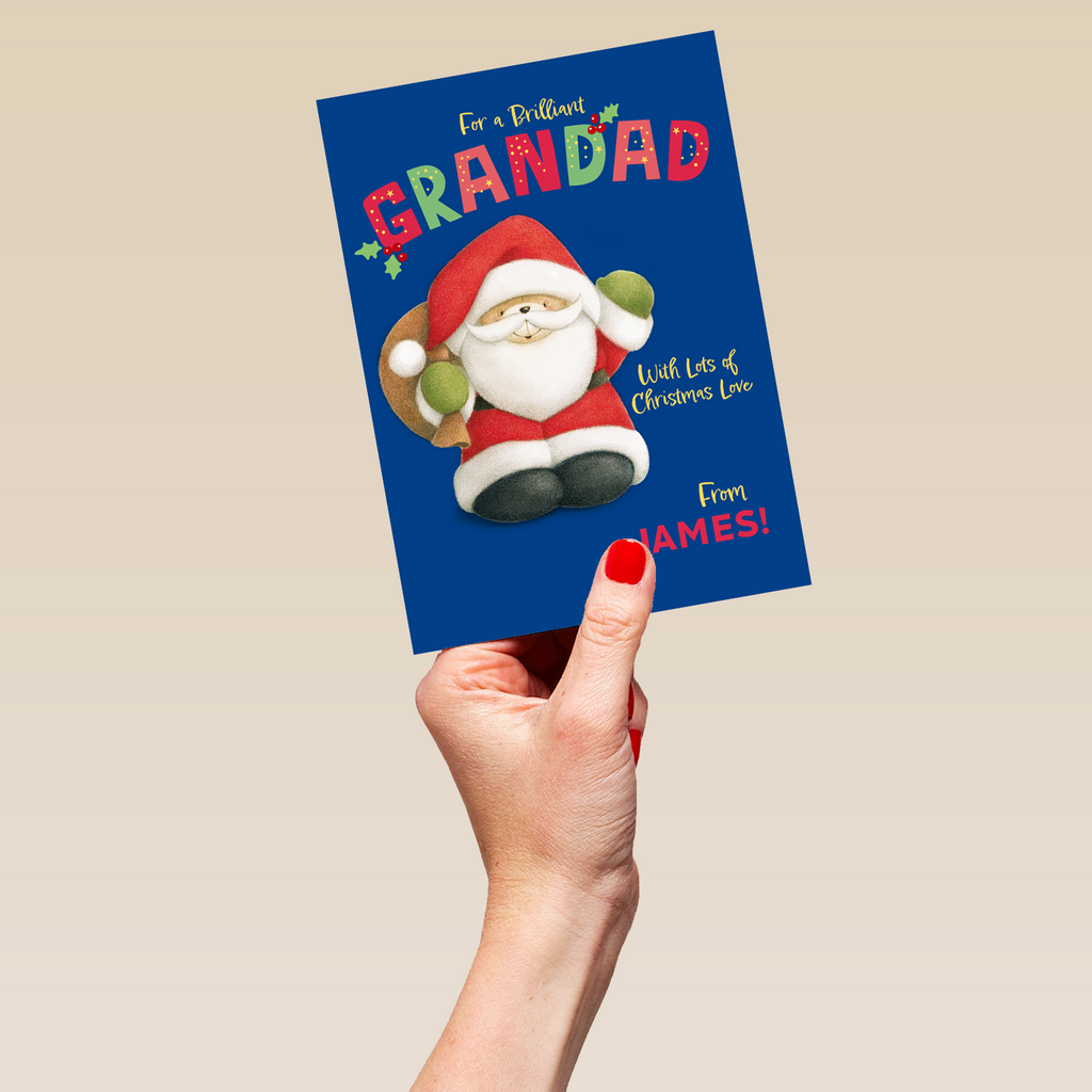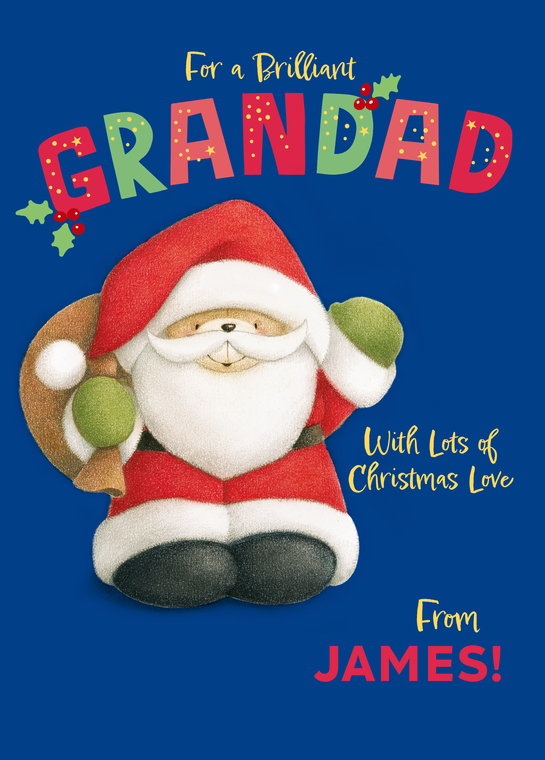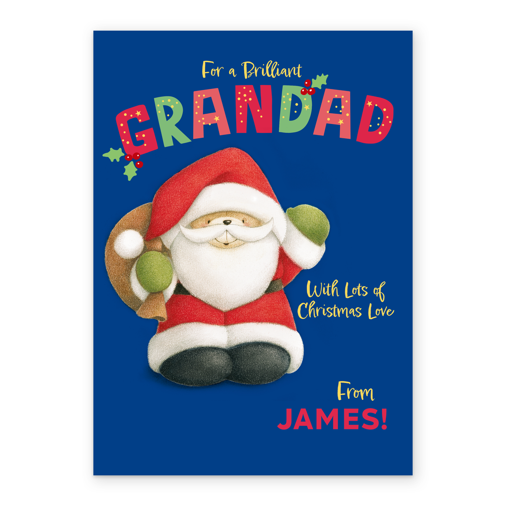 Printed on premium-quality board, this card features Hallmark's Forever Friends bear dressed as Santa, with the message 'For a brilliant grandad. With lots of love from [Name]!', space to personalise a name, and comes complete with a co-ordinating white envelope.
