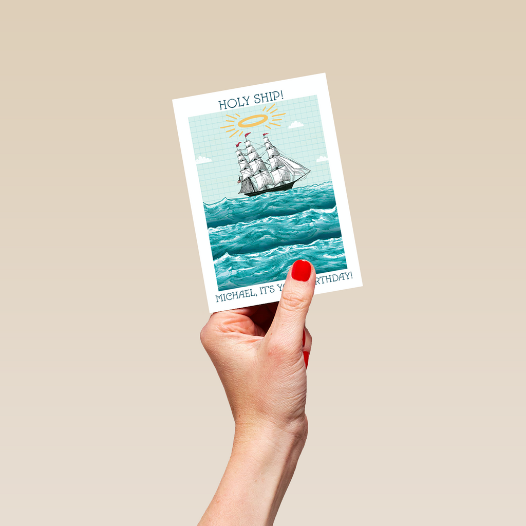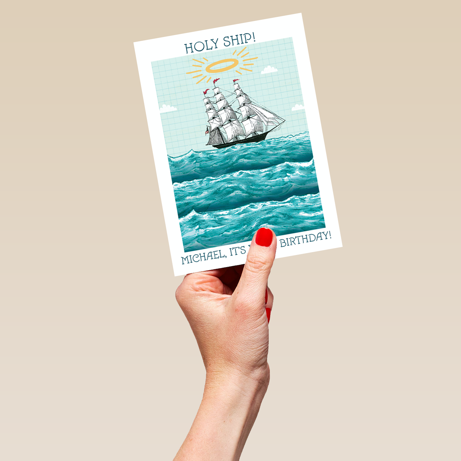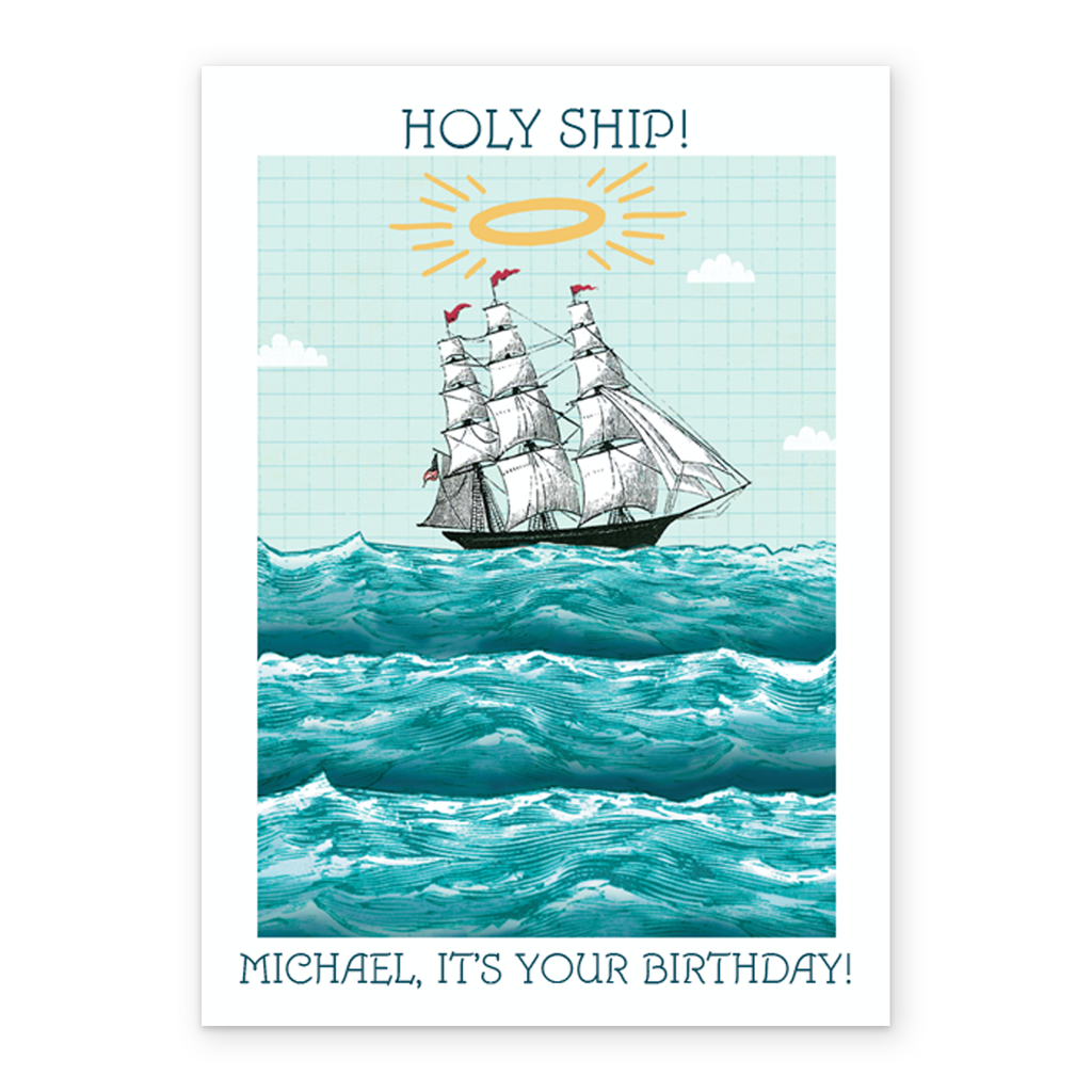 Show them you care with a personalised editable funny holy ship birthday card from Hallmark. Our birthday cards are printed on premium quality, FSC®-certified card & delivered nationwide.