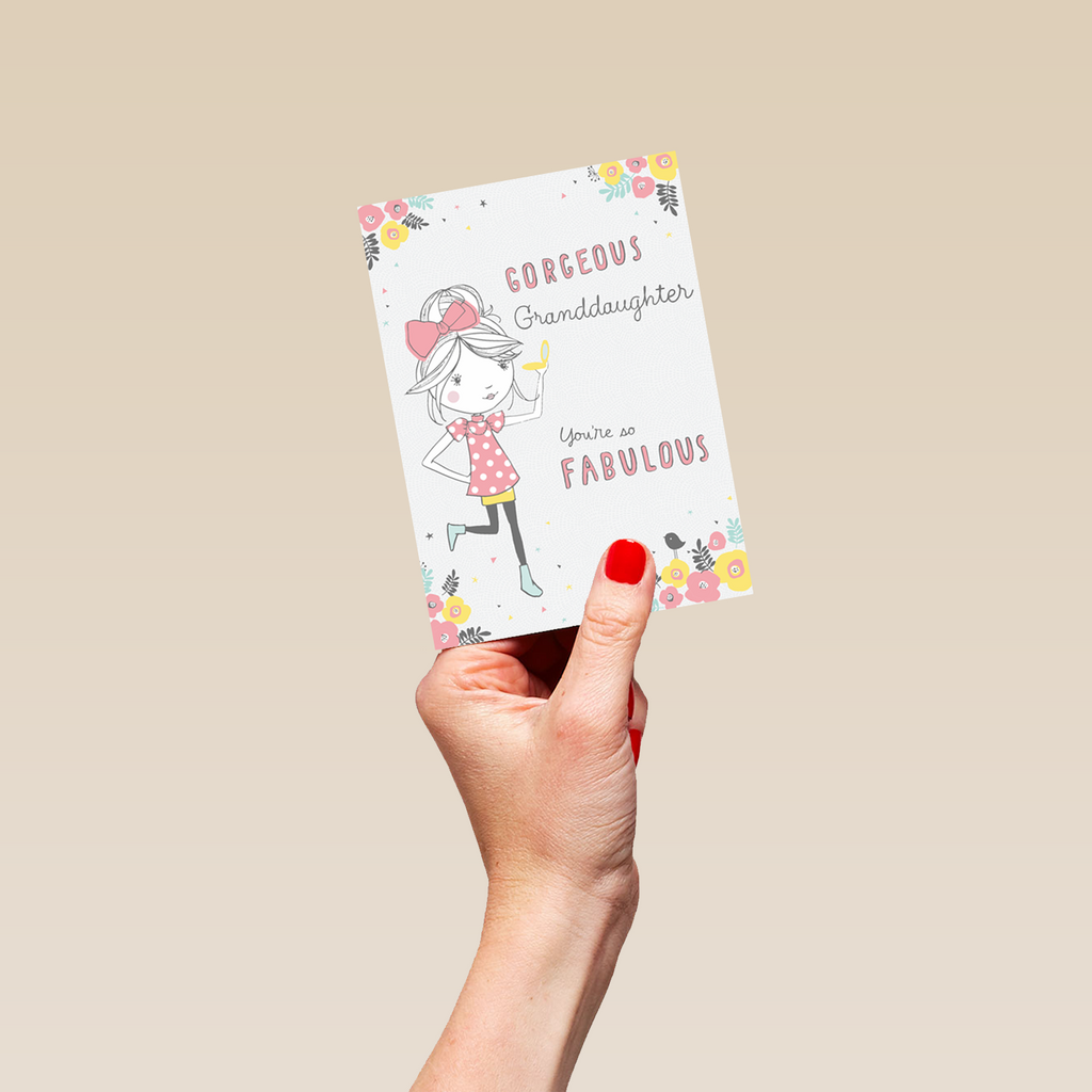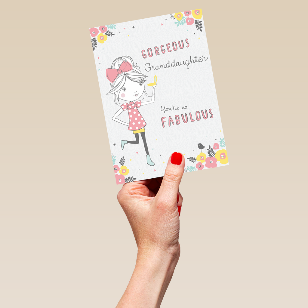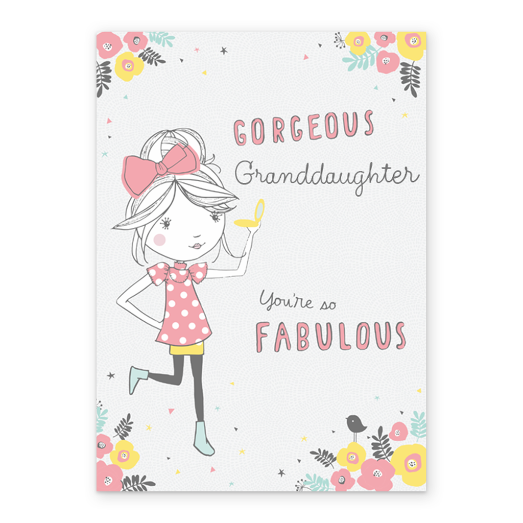 Show them you care with a personalised editable granddaughter birthday card from Hallmark. Our greetings cards are printed on premium quality, FSC®-certified card & delivered nationwide. This card is available as standard 12cm by 16.7cm and large 15.5cm by 21.6cm.