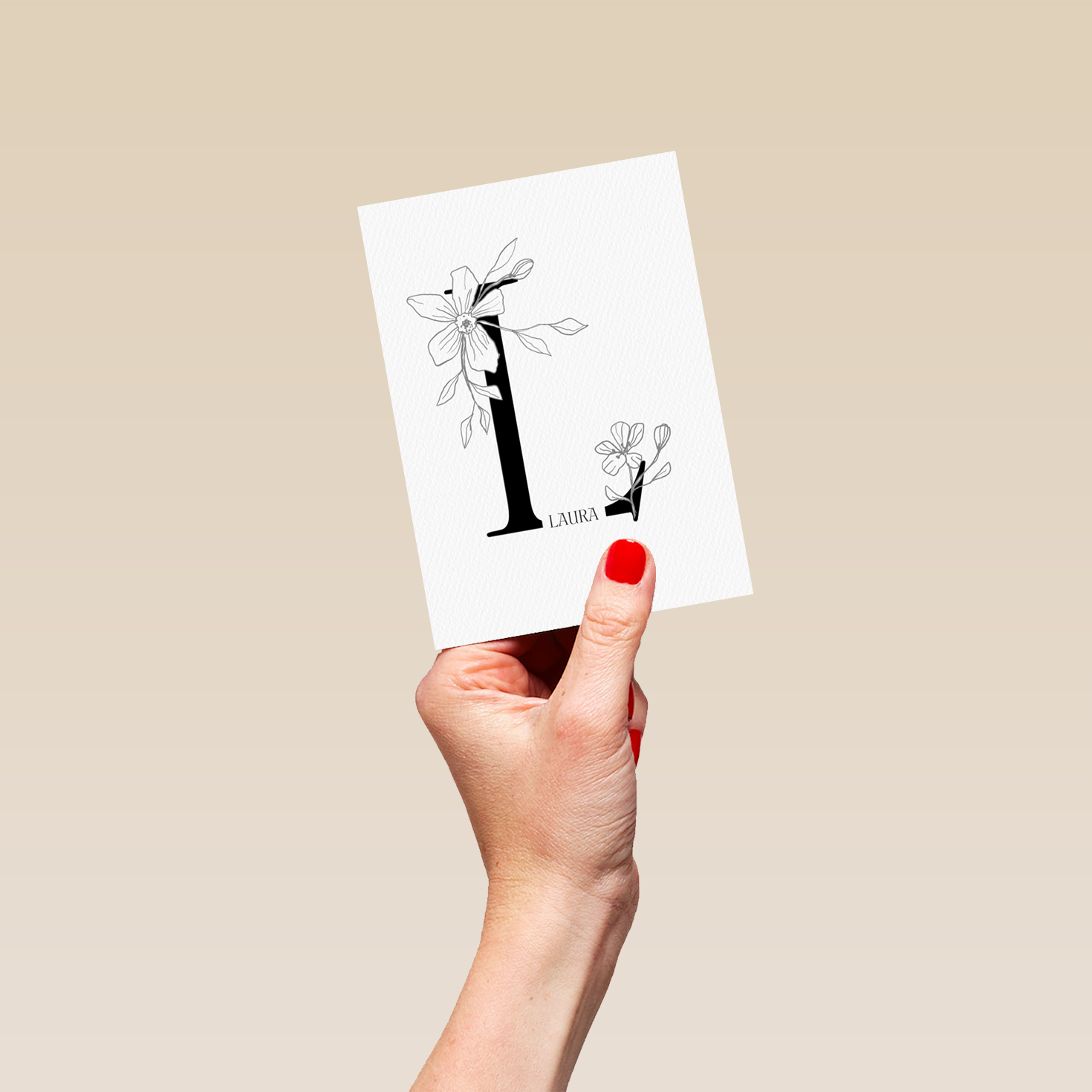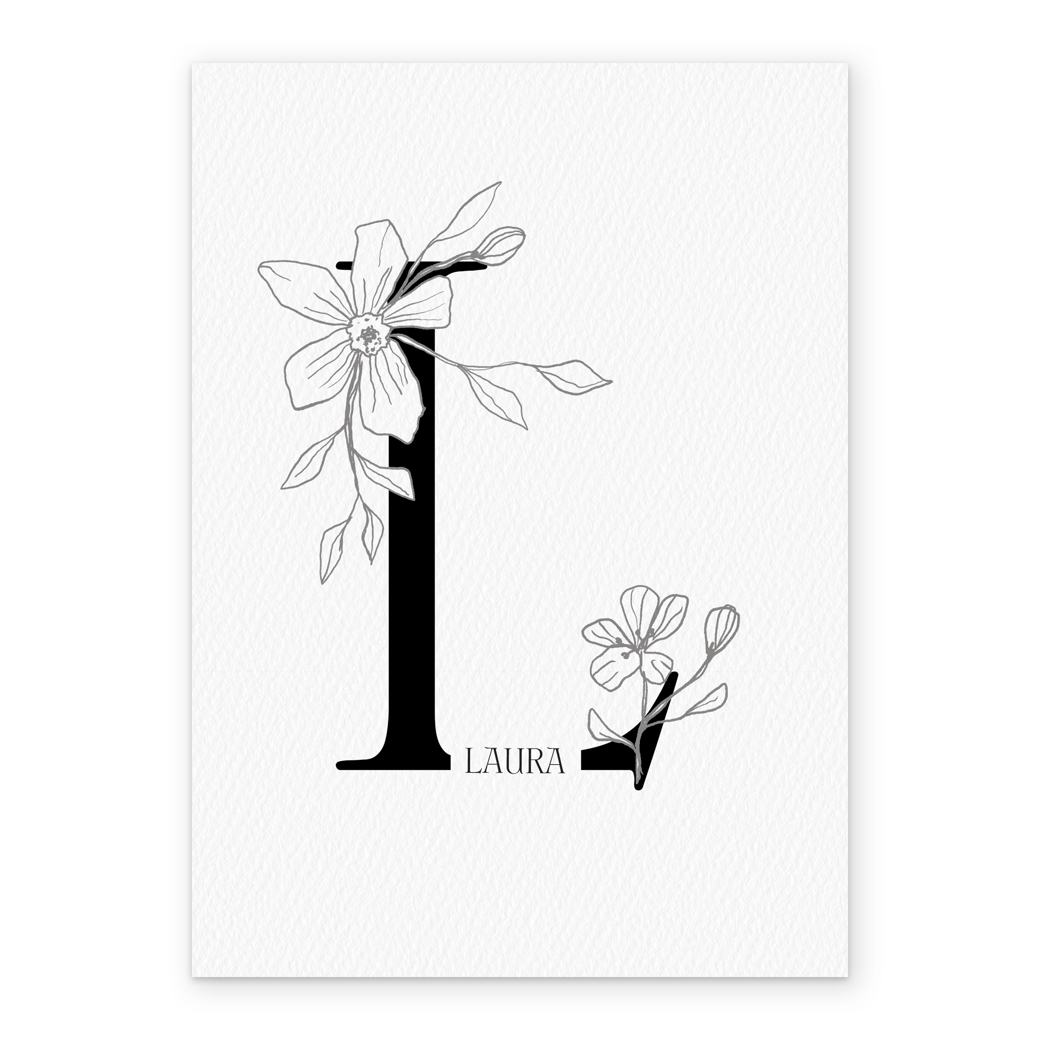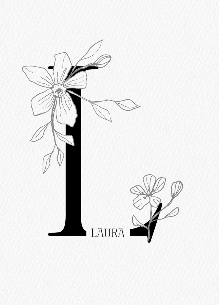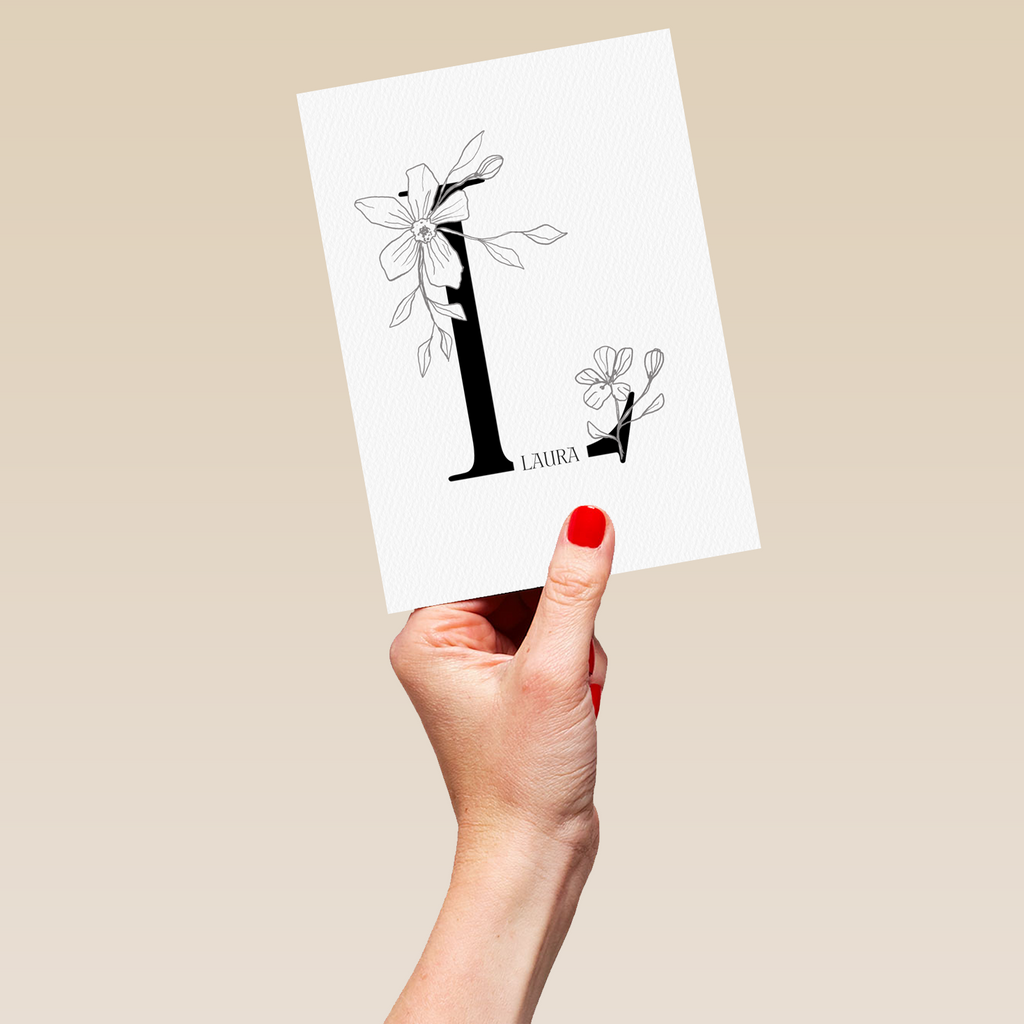 Printed on premium-quality board, this card features an illustrated floral embellished letter L, space to personalise a name, and comes complete with a co-ordinating white envelope.