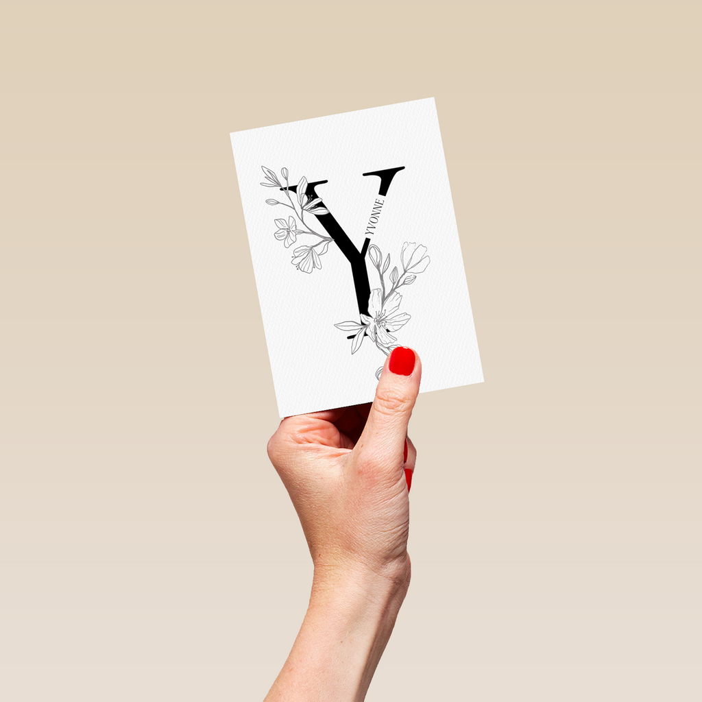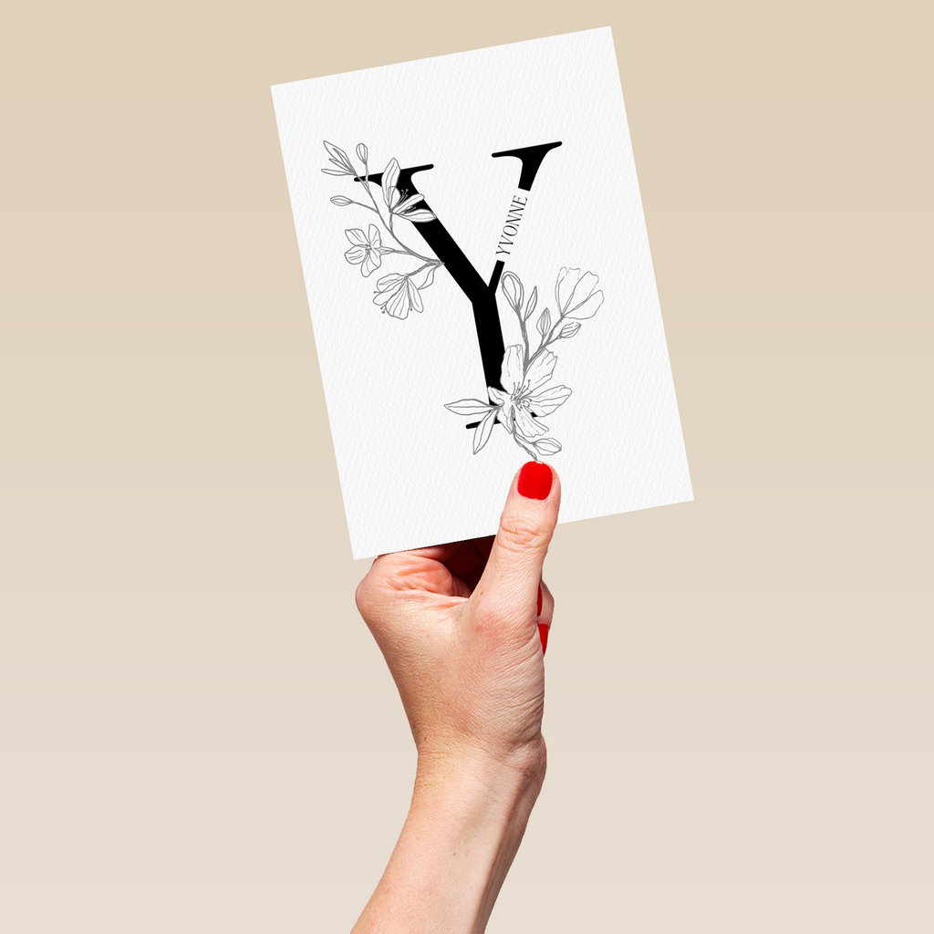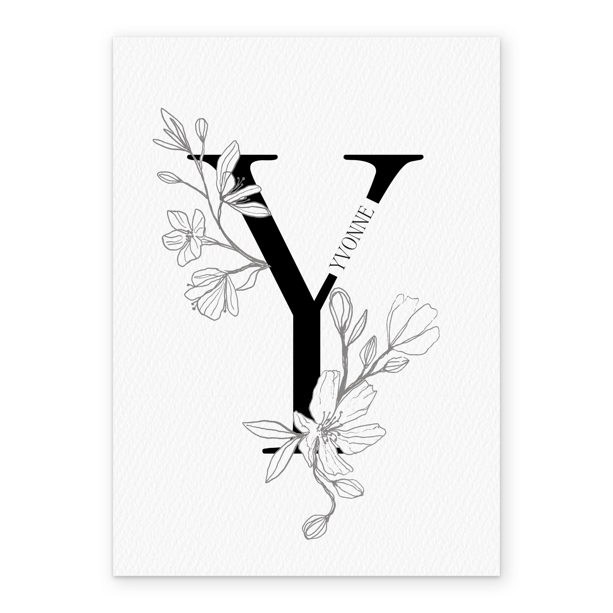 Printed on premium-quality board, this card features an illustrated floral embellished letter Y, space to personalise a name, and comes complete with a co-ordinating white envelope.
