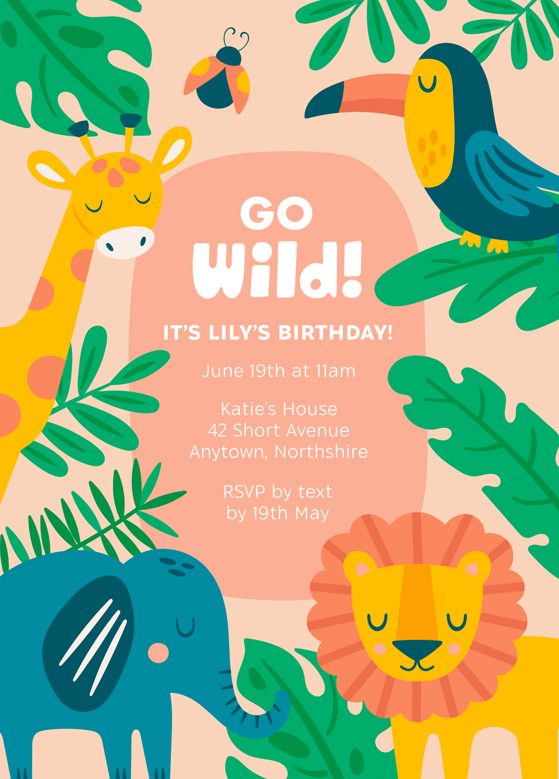 Go wild and make their birthday full of adventure, with this personalised and editable Kids Bi... View more details