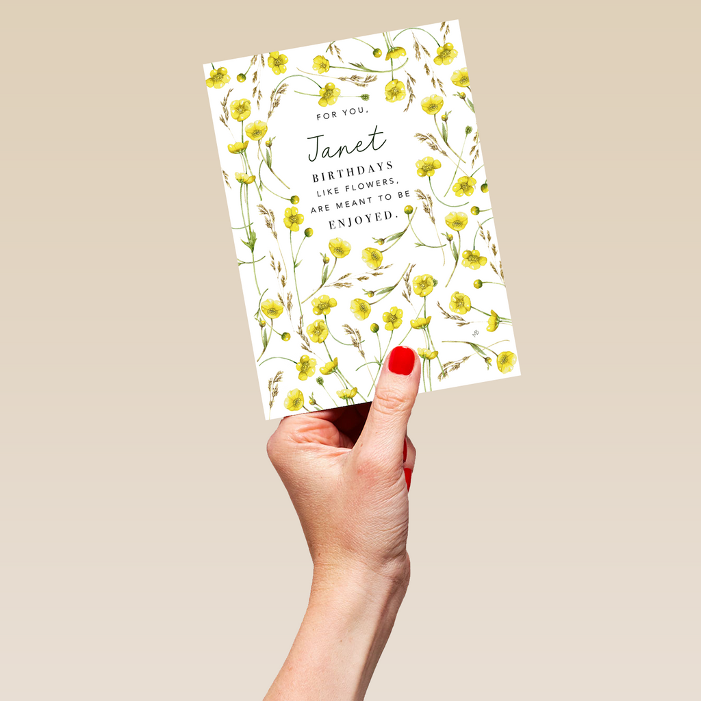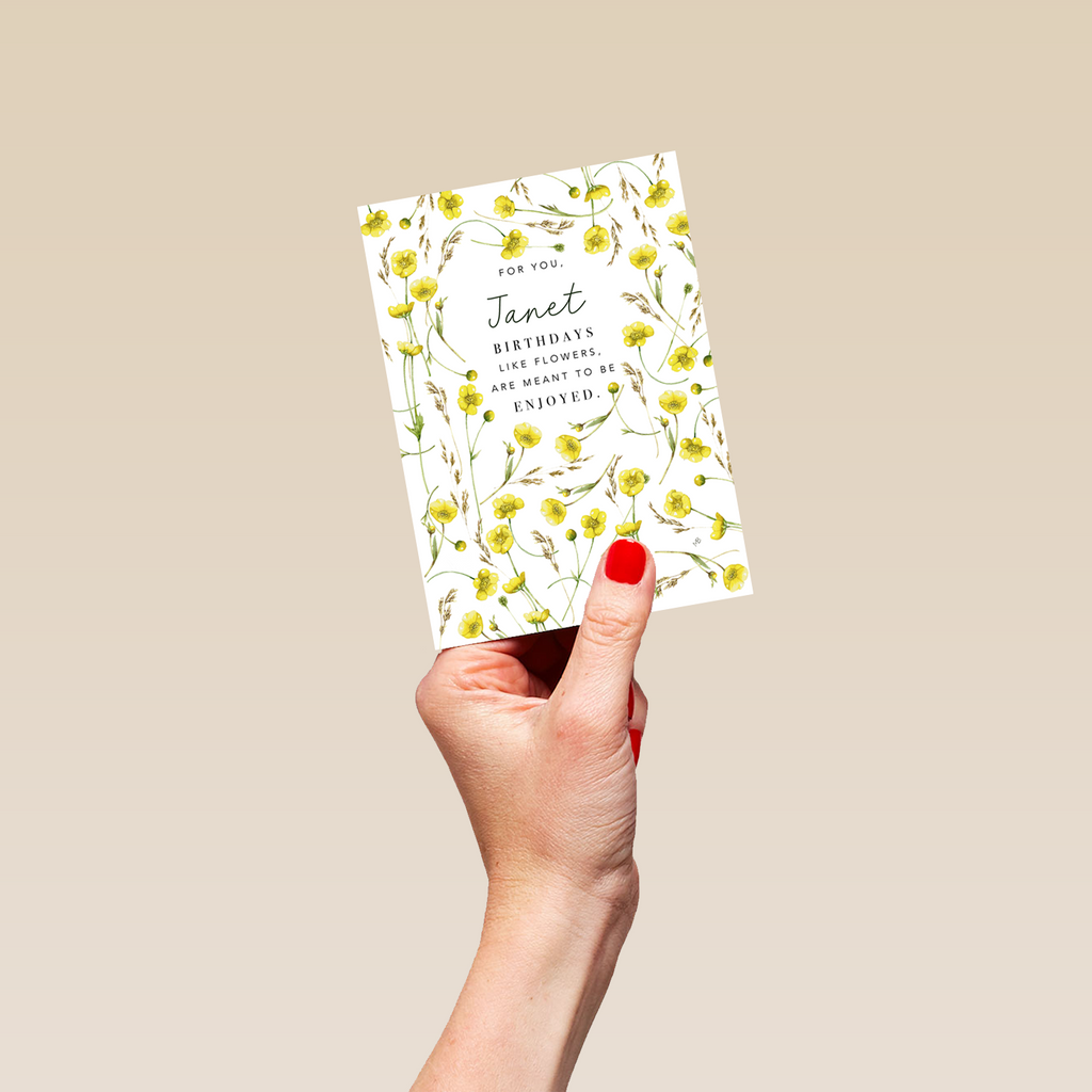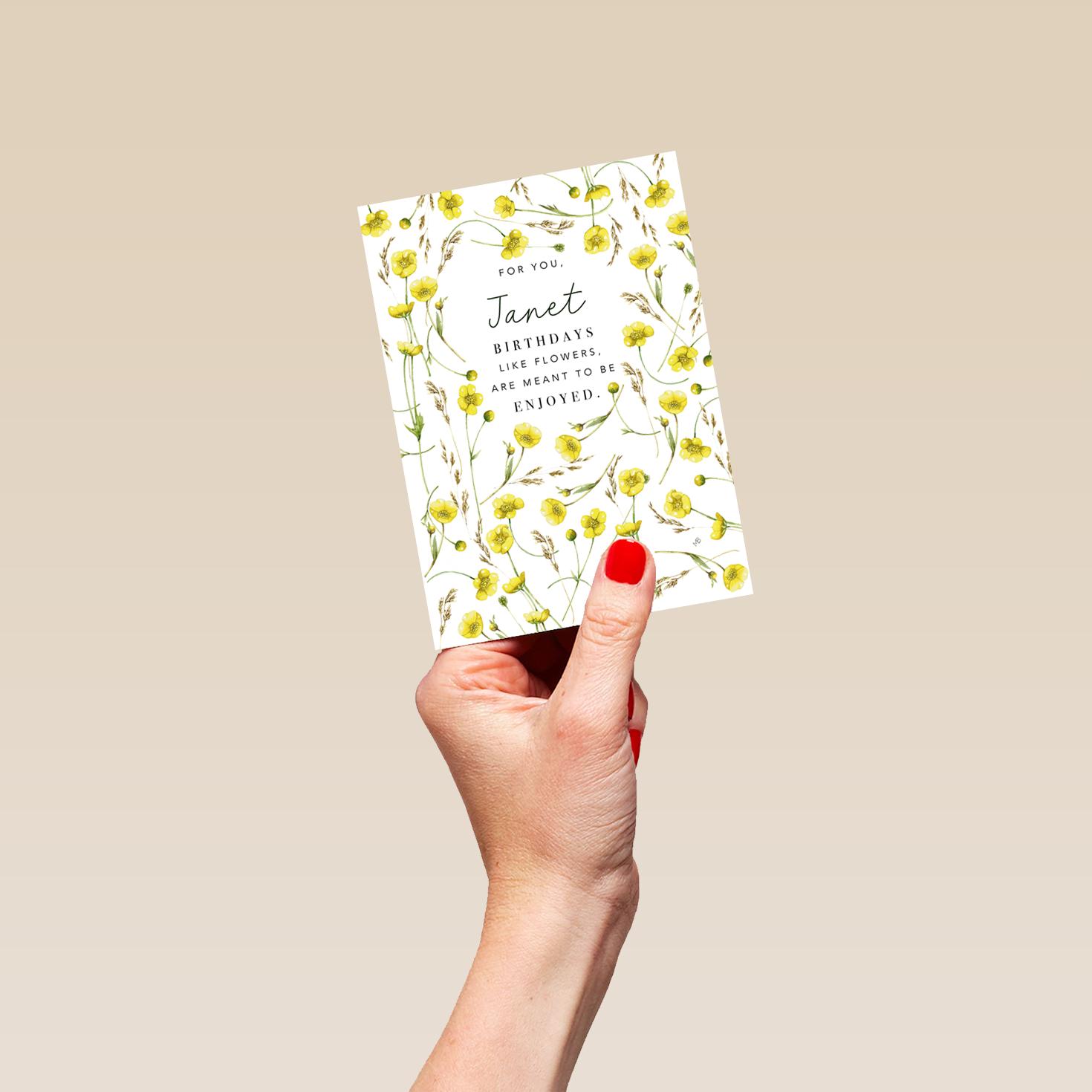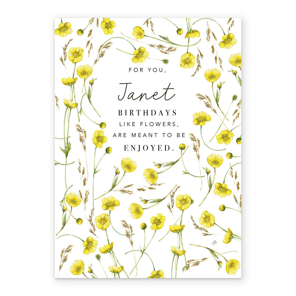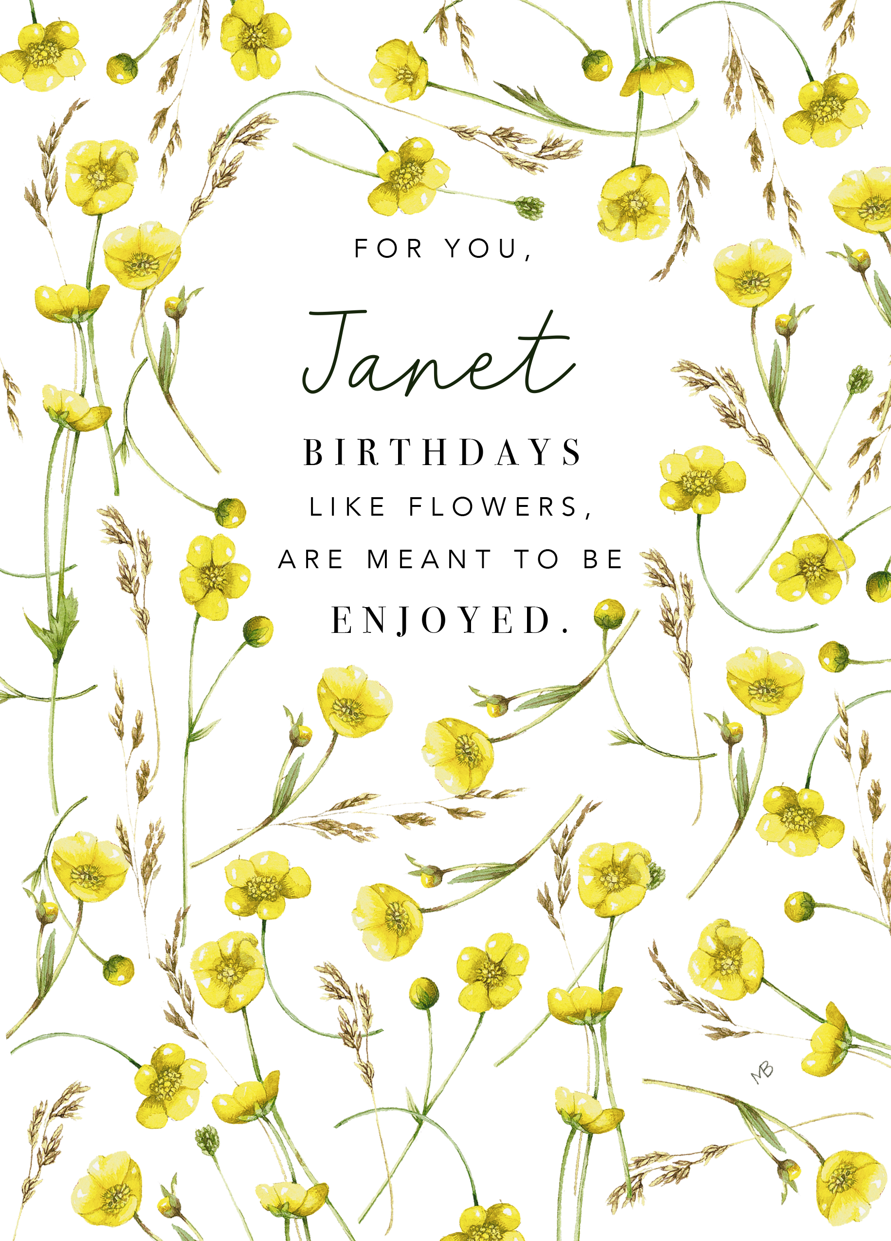 Printed on premium-quality board, this card features gorgeous floral artwork by Marjolein Bastin, with the message ‘For you, birthdays, like flowers, are meant to be enjoyed', space to personalise a name, and comes complete with a co-ordinating white envelope.