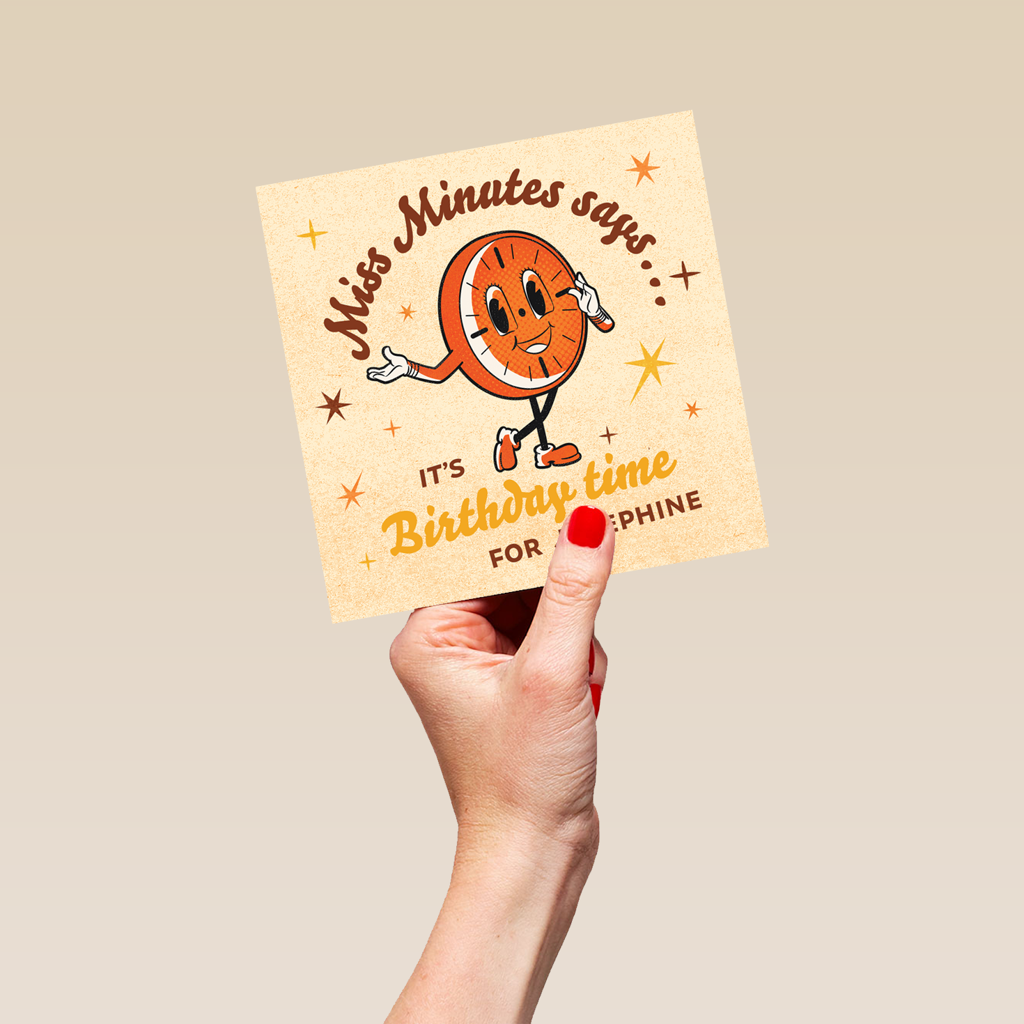 It's birthday time! Celebrate their birthday with Miss Minutes and make their day the best time ever with this epic personalised and editable birthday card. The perfect way to celebrate a MARVEL, Loki or Superhero fan's special day.