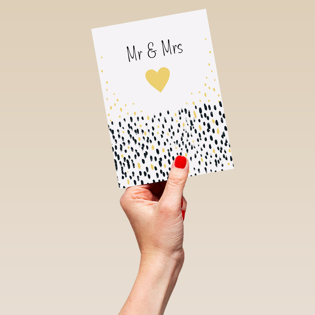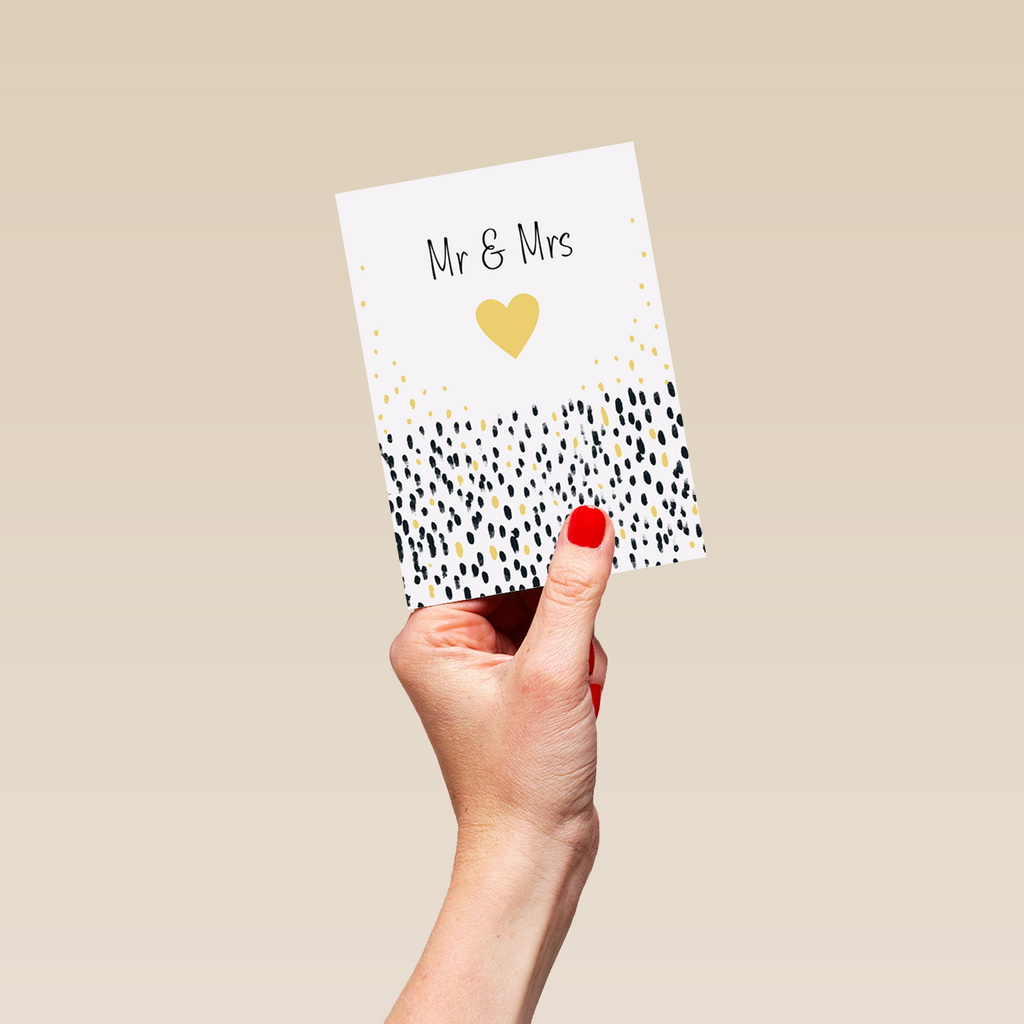 Show them you care with a personalised editable Mr & Mrs wedding congratulations card from Hallmark. Our wedding cards are printed on premium quality, FSC®-certified card & delivered nationwide. This card is available as standard 12cm by 16.7cm and large 15.5cm by 21.6cm.