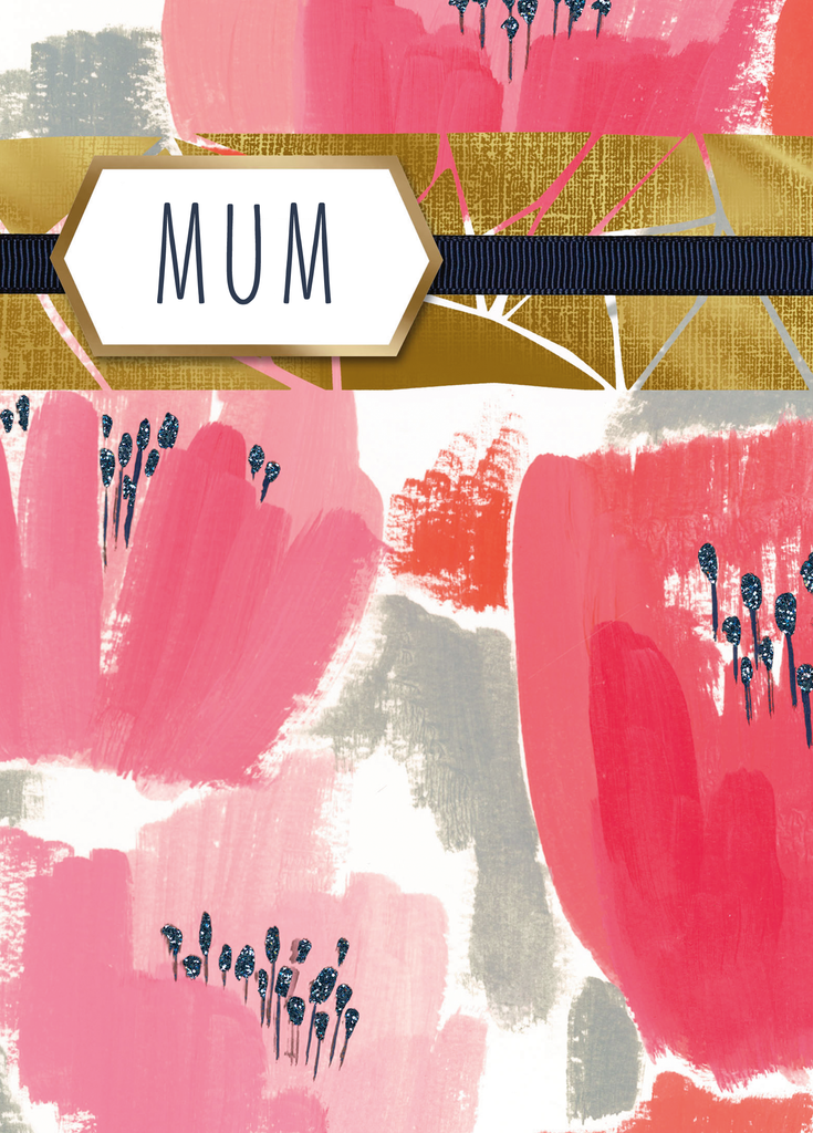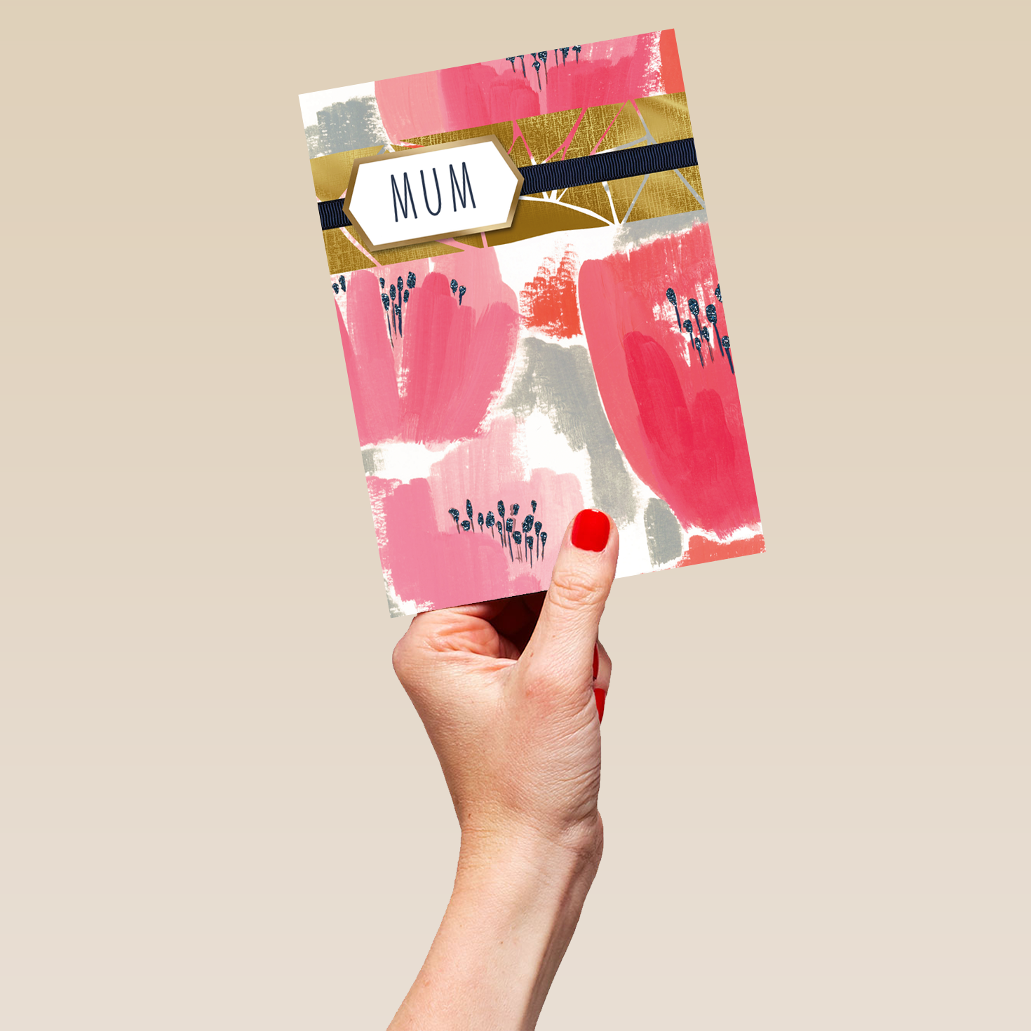 Printed on premium-quality board, this card features a watercolour style tulips design, with the message 'Mum', space to personalise a name, and comes complete with a co-ordinating white envelope.