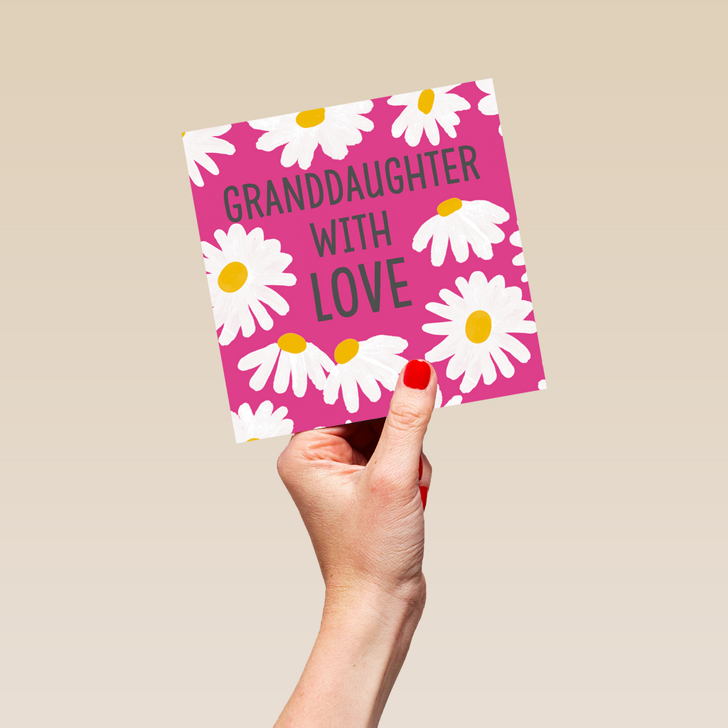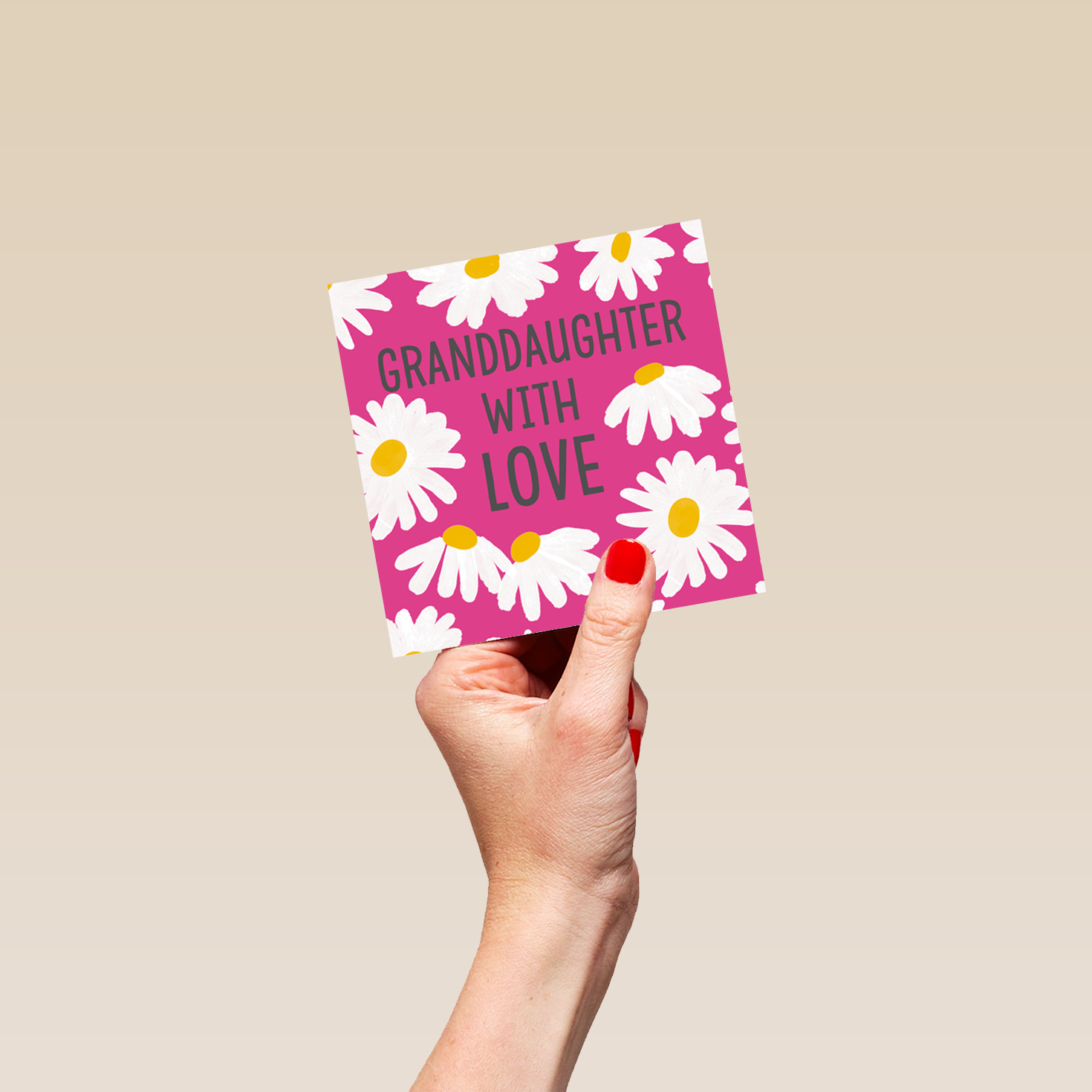 Printed on premium-quality board, this card features sweet white daisies on a pink background, with the message '[NAME] With Love', space to personalise a name, and comes complete with a co-ordinating white envelope.