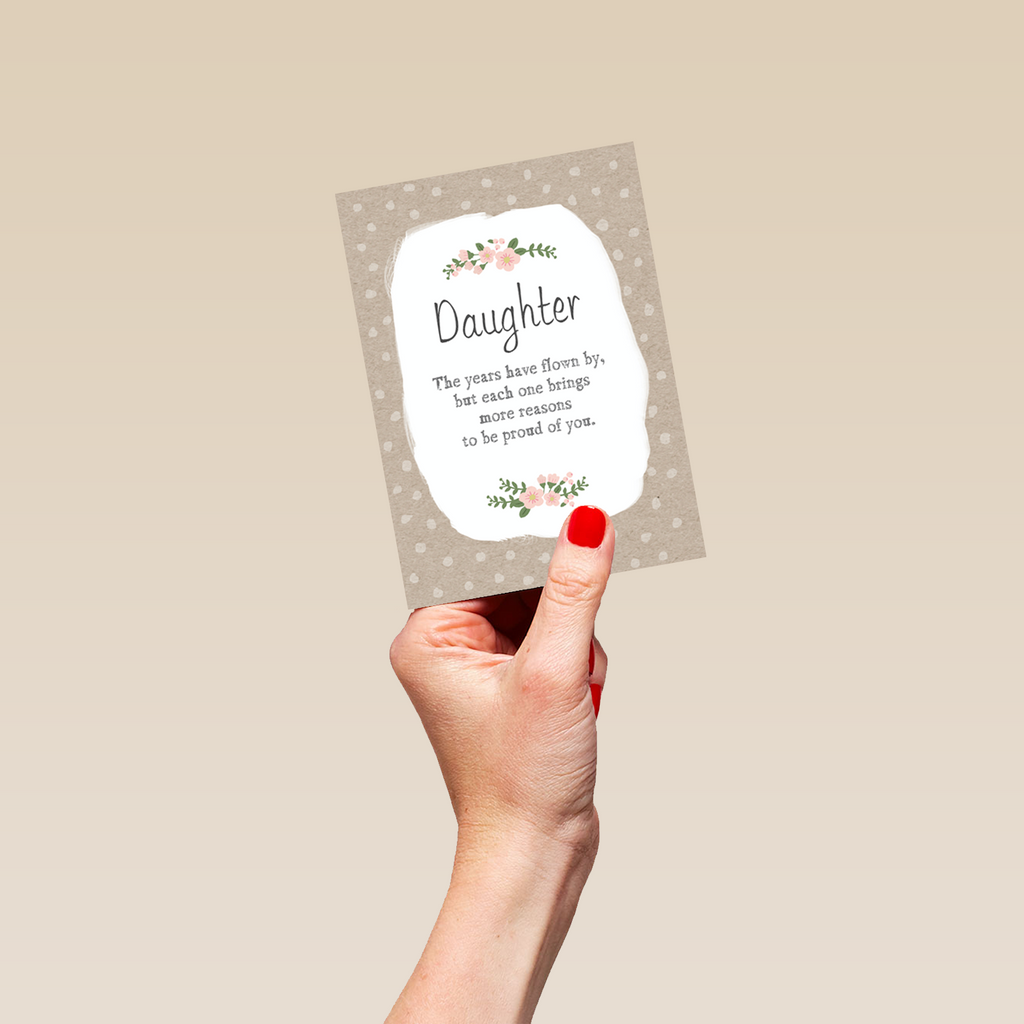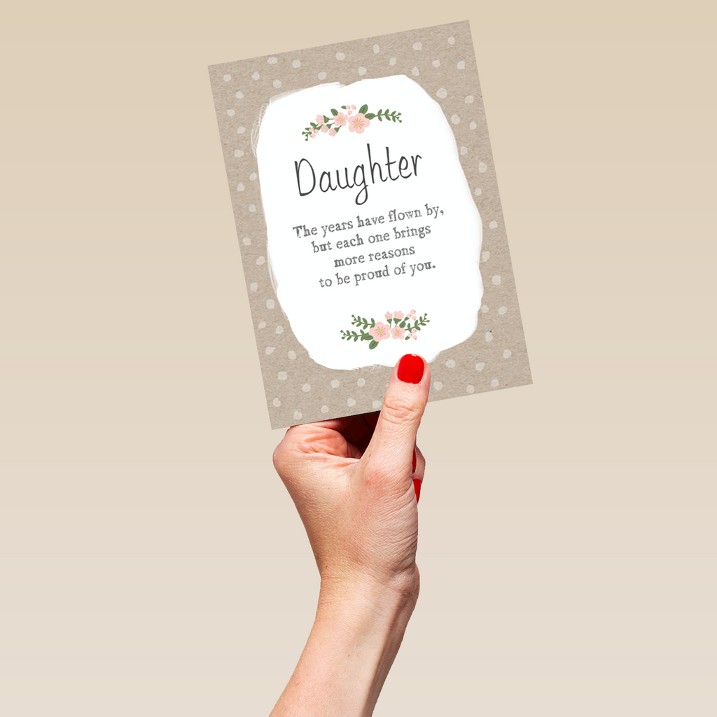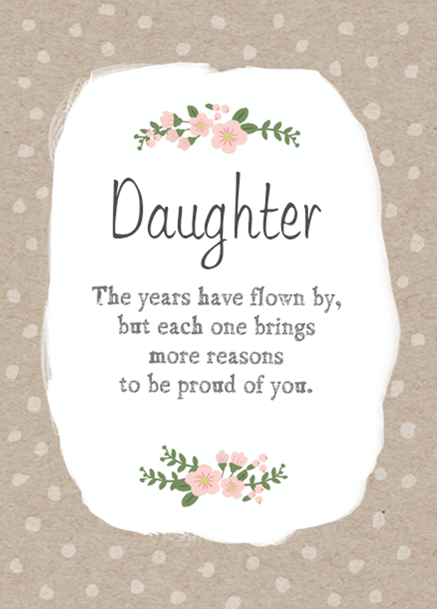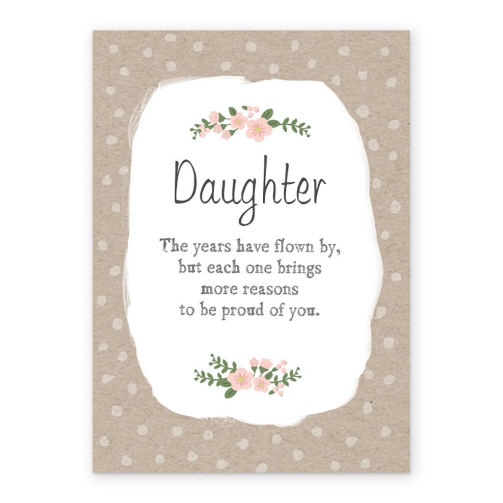 Show them you care with a personalised editable written verse card for daughter from Hallmark. Our birthday cards are printed on premium quality, FSC®-certified card & delivered nationwide. This card is available as standard 12cm by 16.7cm and large 15.5cm by 21.6cm.
