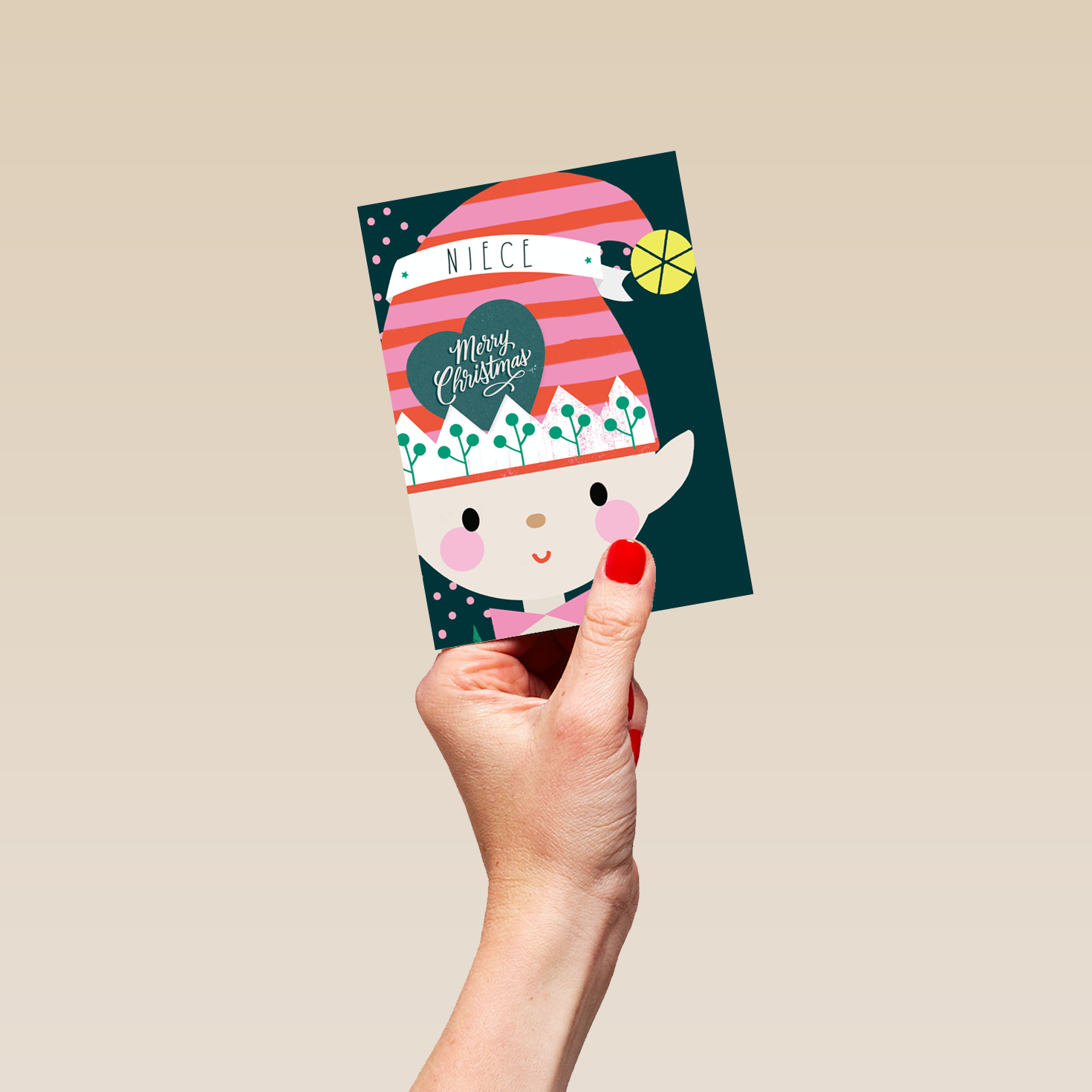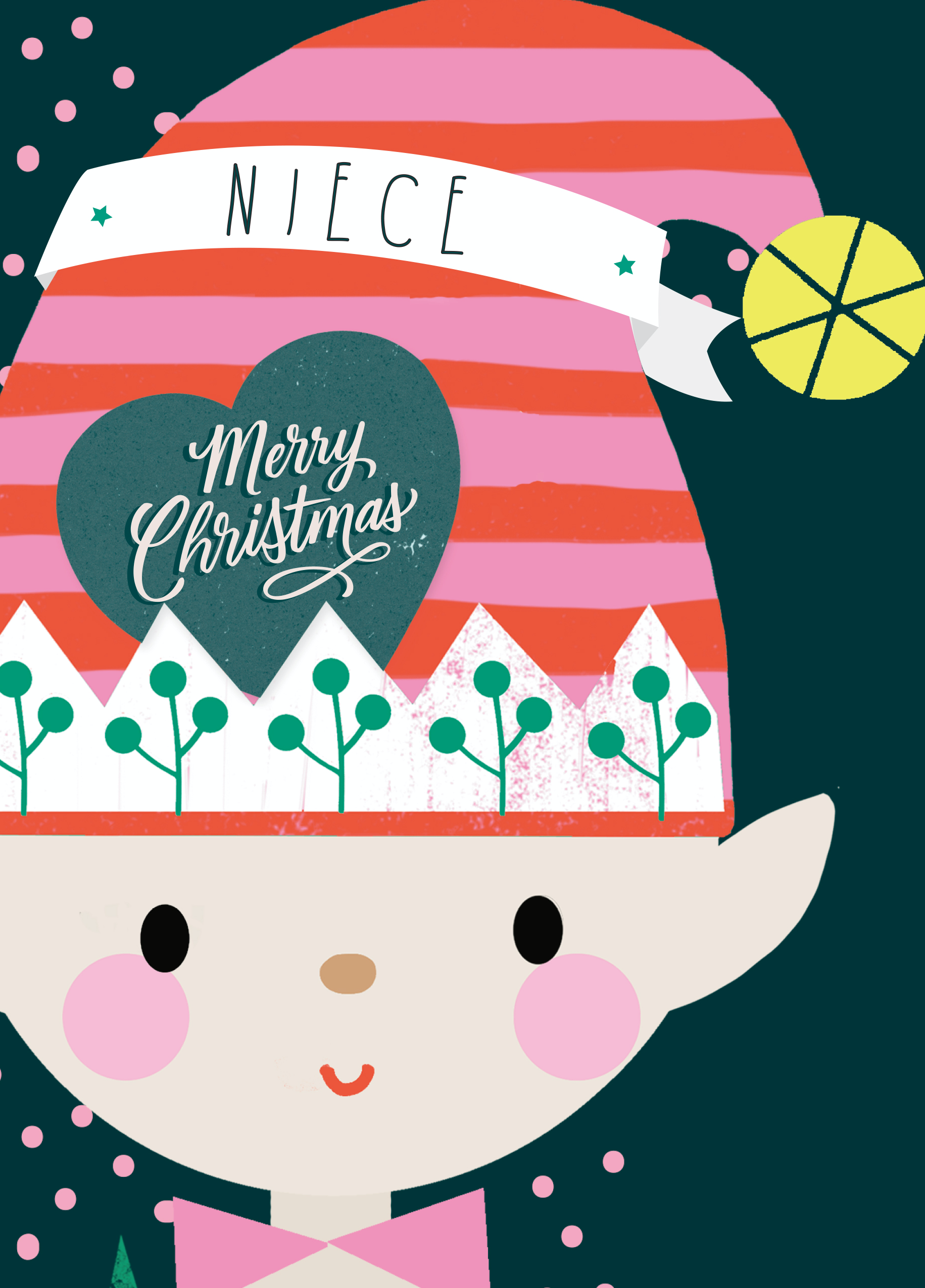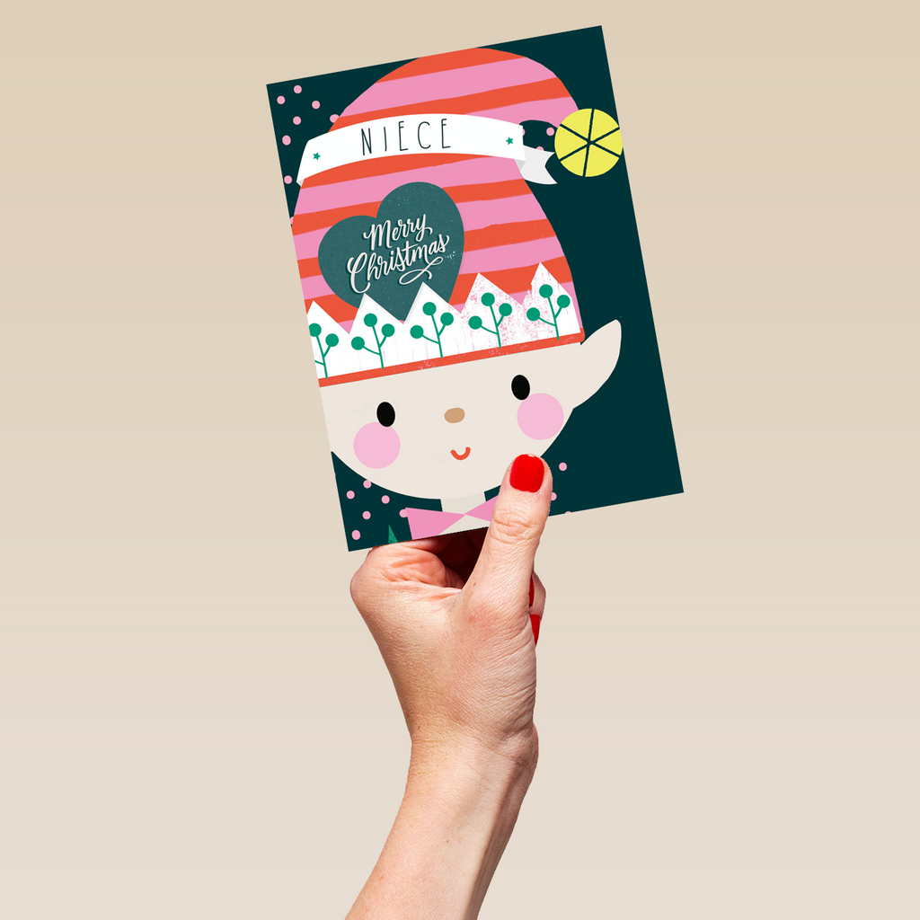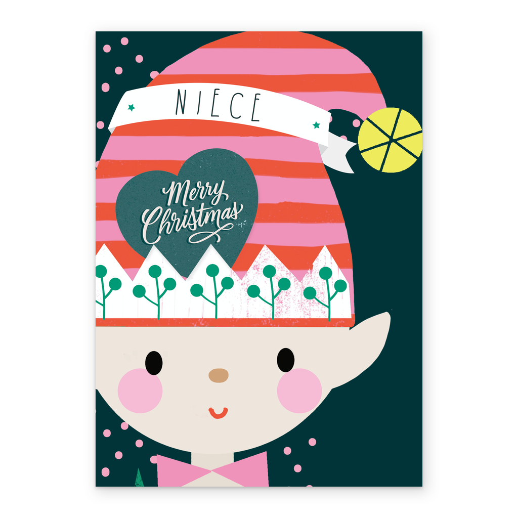 Show them you care with a personalised elf niece card from Hallmark. Our Christmas cards are printed on premium quality, FSC®-certified card & delivered nationwide. This card is available as standard 12cm by 16.7cm and large 15.5cm by 21.6cm.