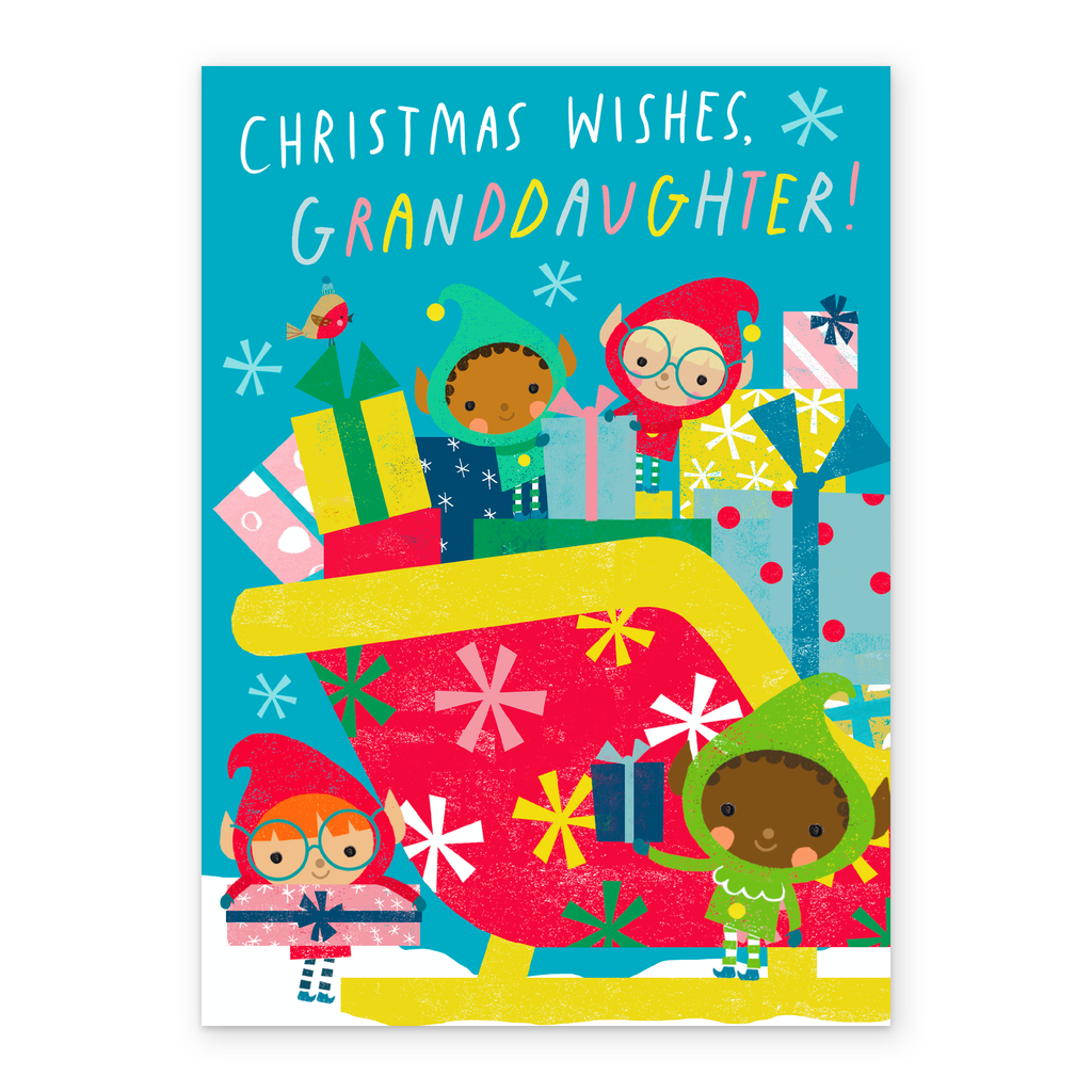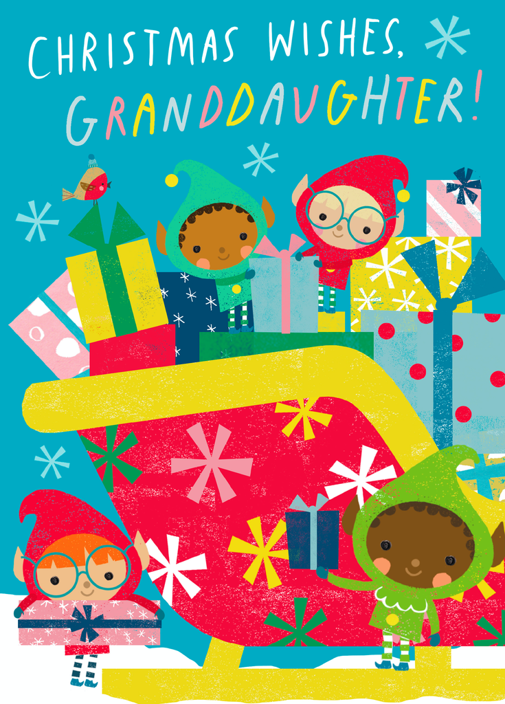 Show them you care with a personalised elves granddaughter card from Hallmark. Our Christmas cards are printed on premium quality, FSC®-certified card & delivered nationwide. This card is available as standard 12cm by 16.7cm and large 15.5cm by 21.6cm.