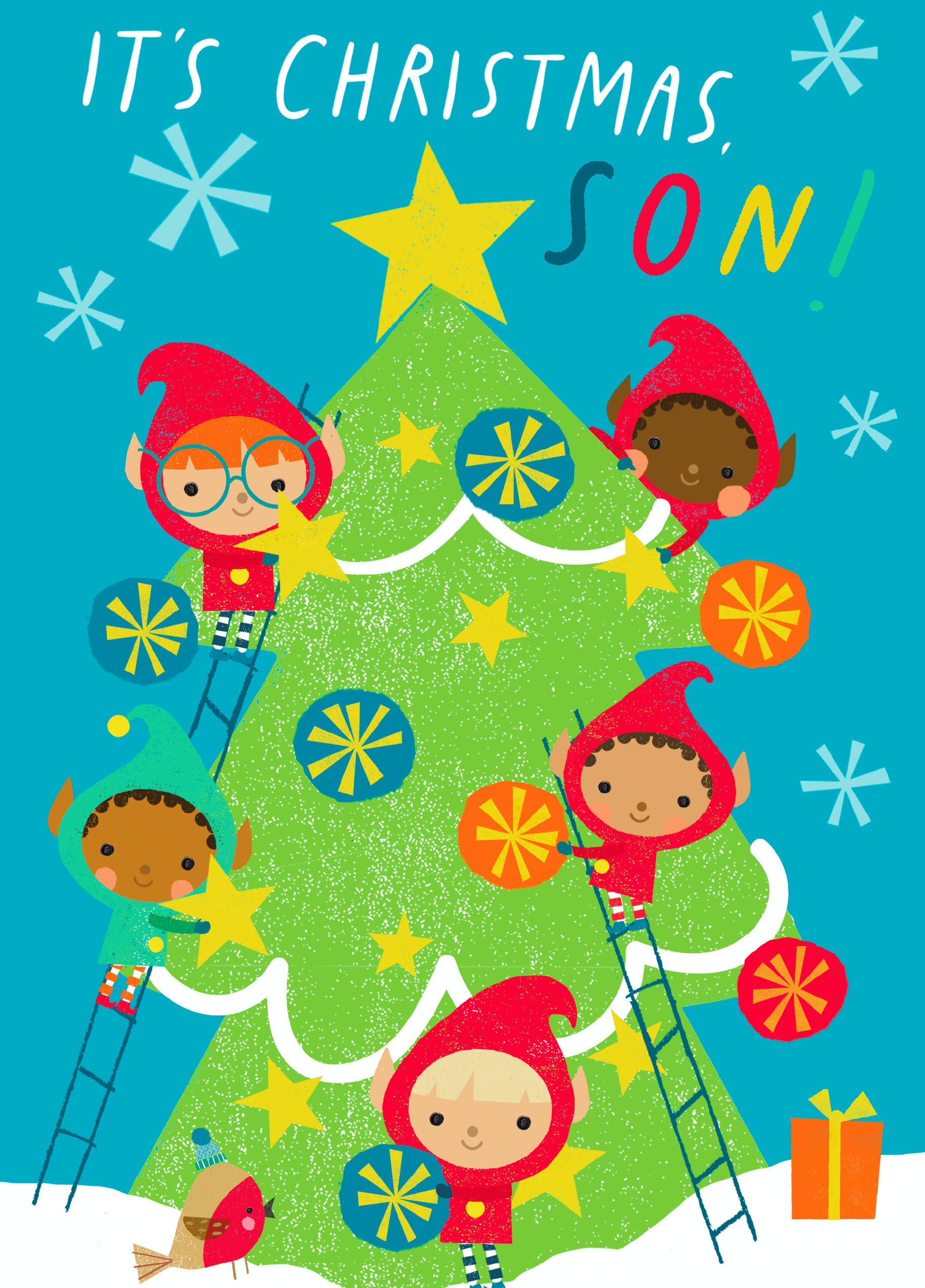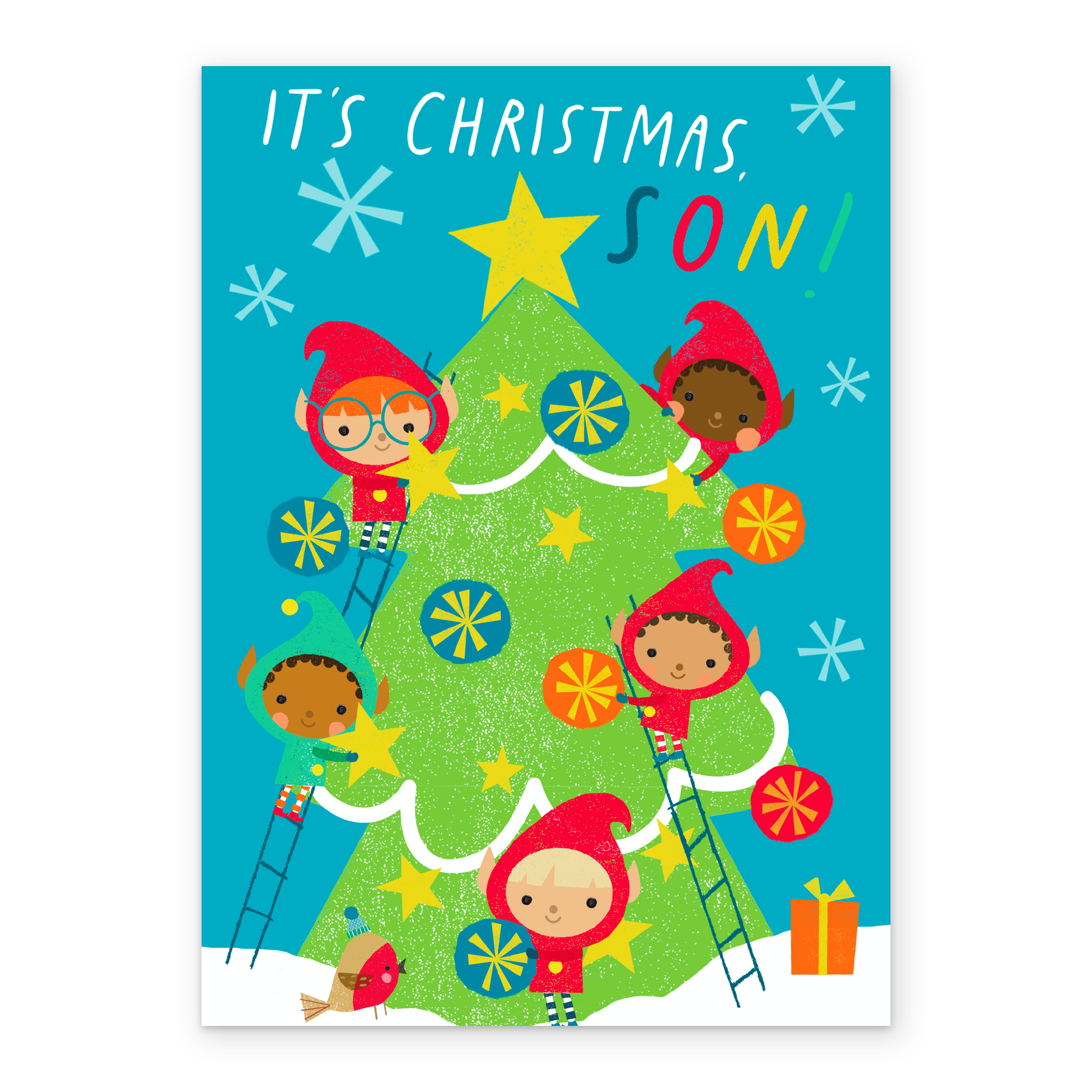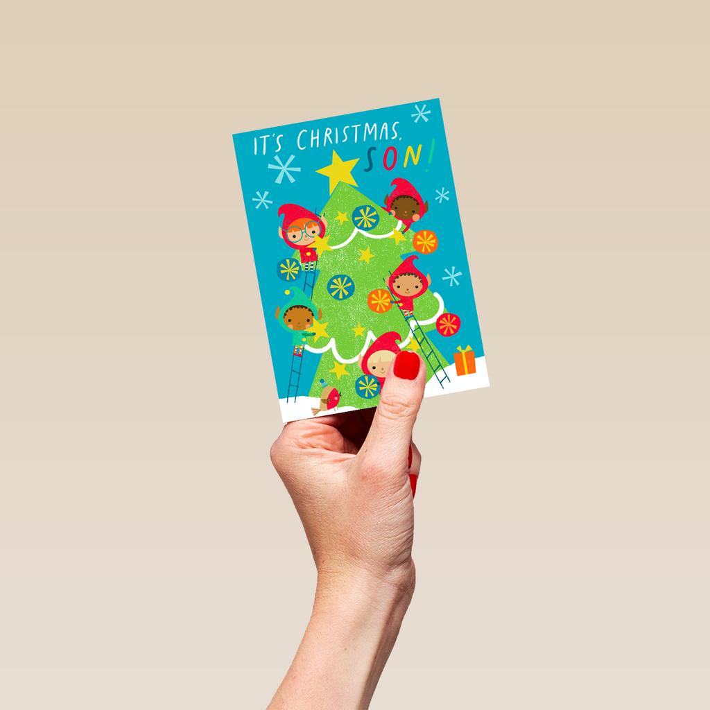 Show them you care with a personalised elves son card from Hallmark. Our Christmas cards are printed on premium quality, FSC®-certified card & delivered nationwide. This card is available as standard 12cm by 16.7cm and large 15.5cm by 21.6cm.