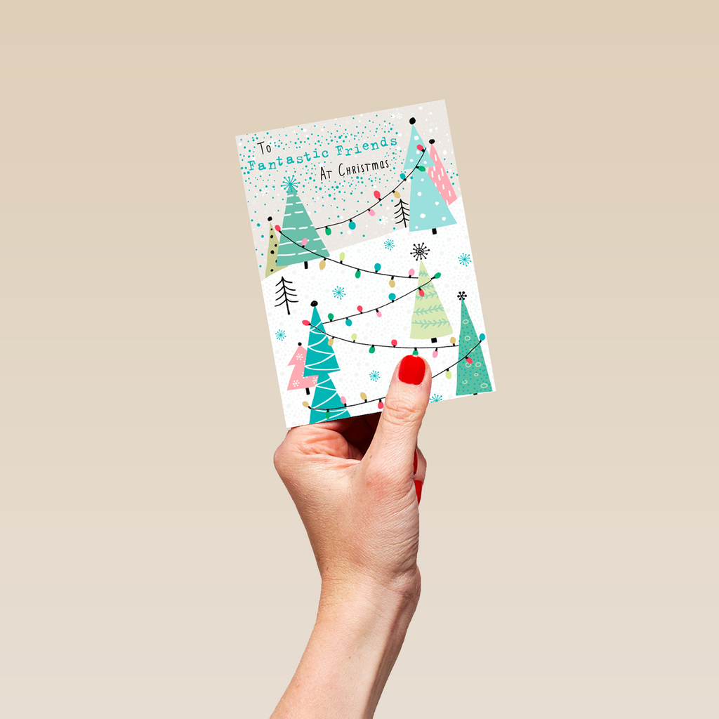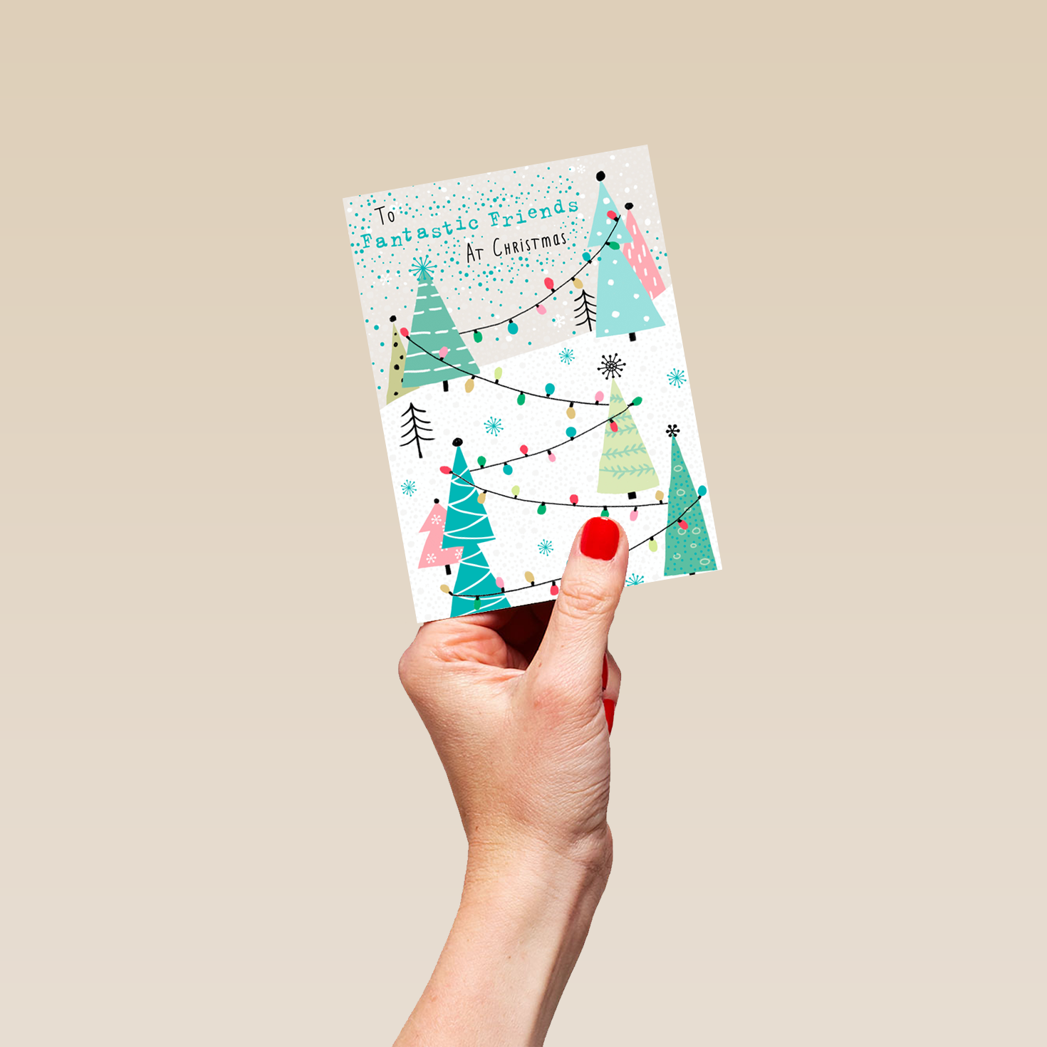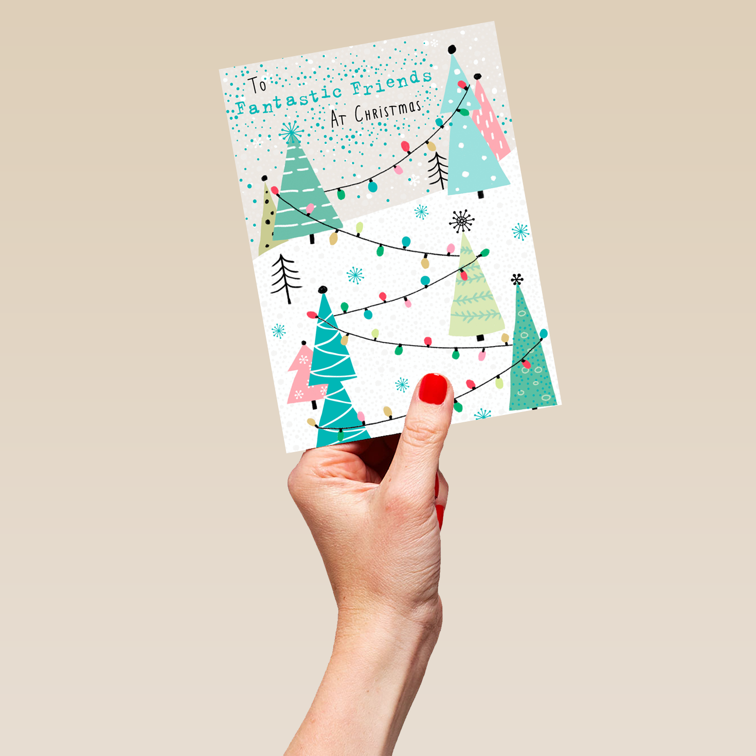 Show them you care with a personalised fantastic friends card from Hallmark. Our Christmas cards are printed on premium quality, FSC®-certified card & delivered nationwide. This card is available as standard 12cm by 16.7cm and large 15.5cm by 21.6cm.
