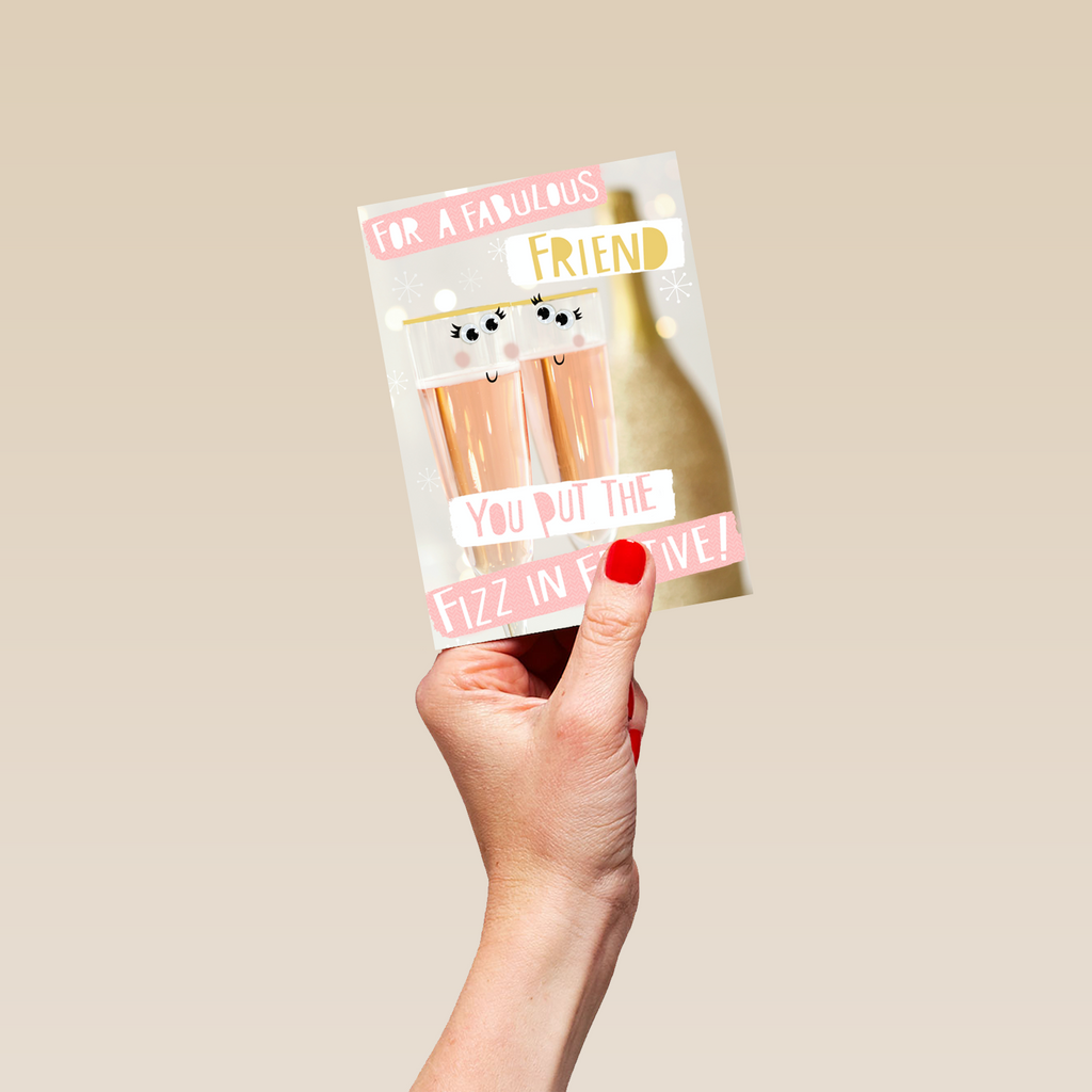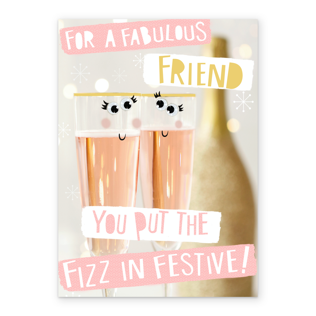 Show them you care with a personalised festive fizz for friends card from Hallmark. Our Christmas cards are printed on premium quality, FSC®-certified card & delivered nationwide. This card is available as standard 12cm by 16.7cm and large 15.5cm by 21.6cm.