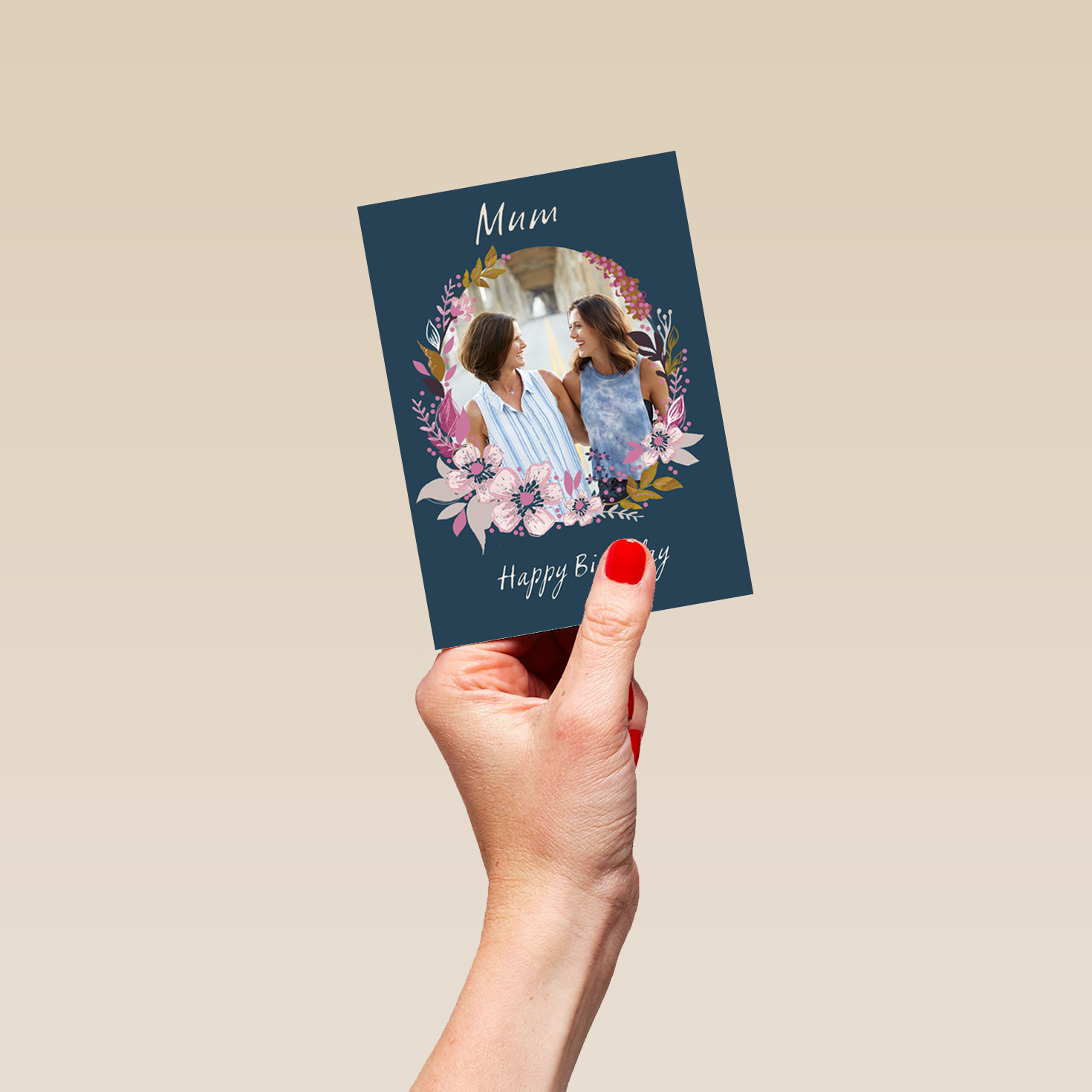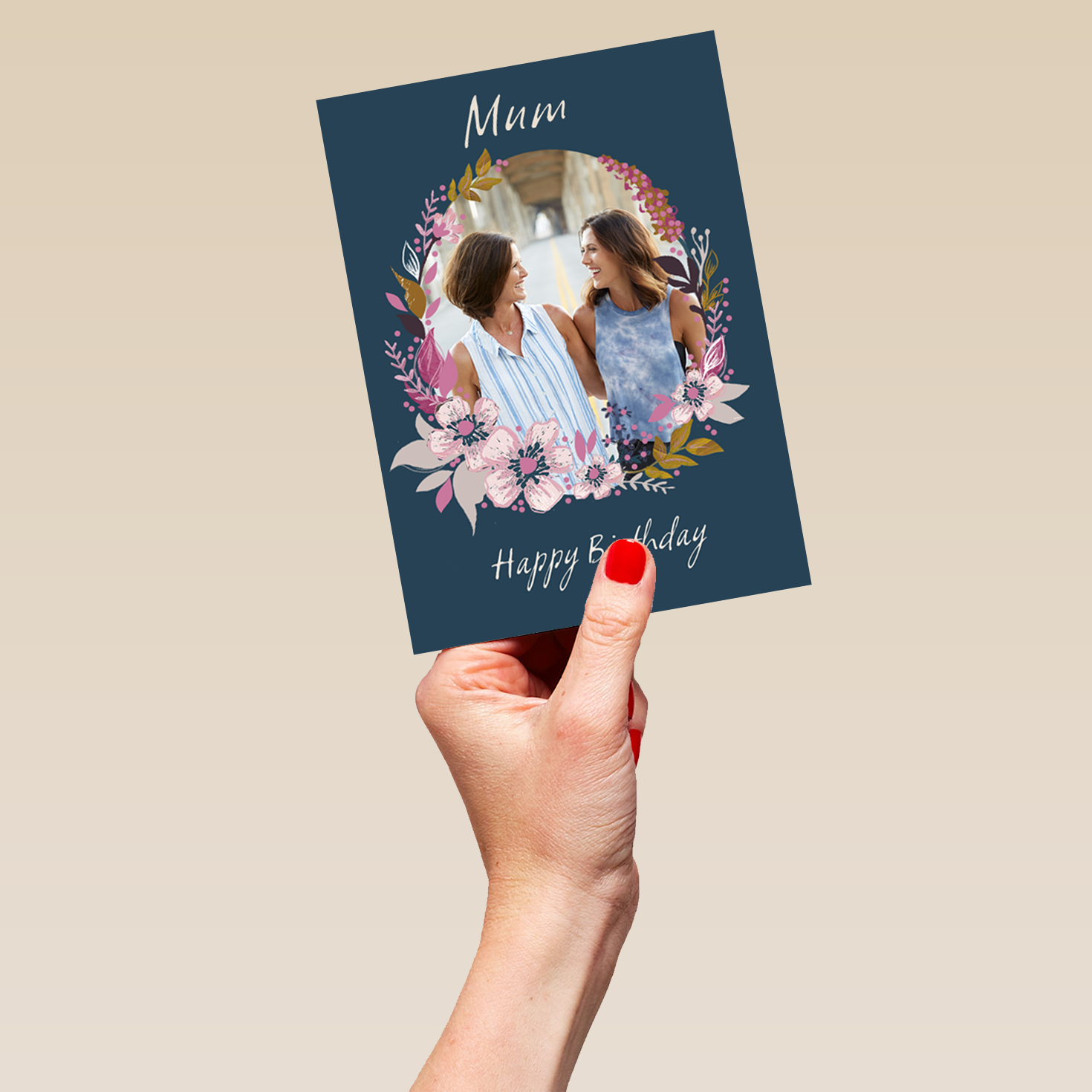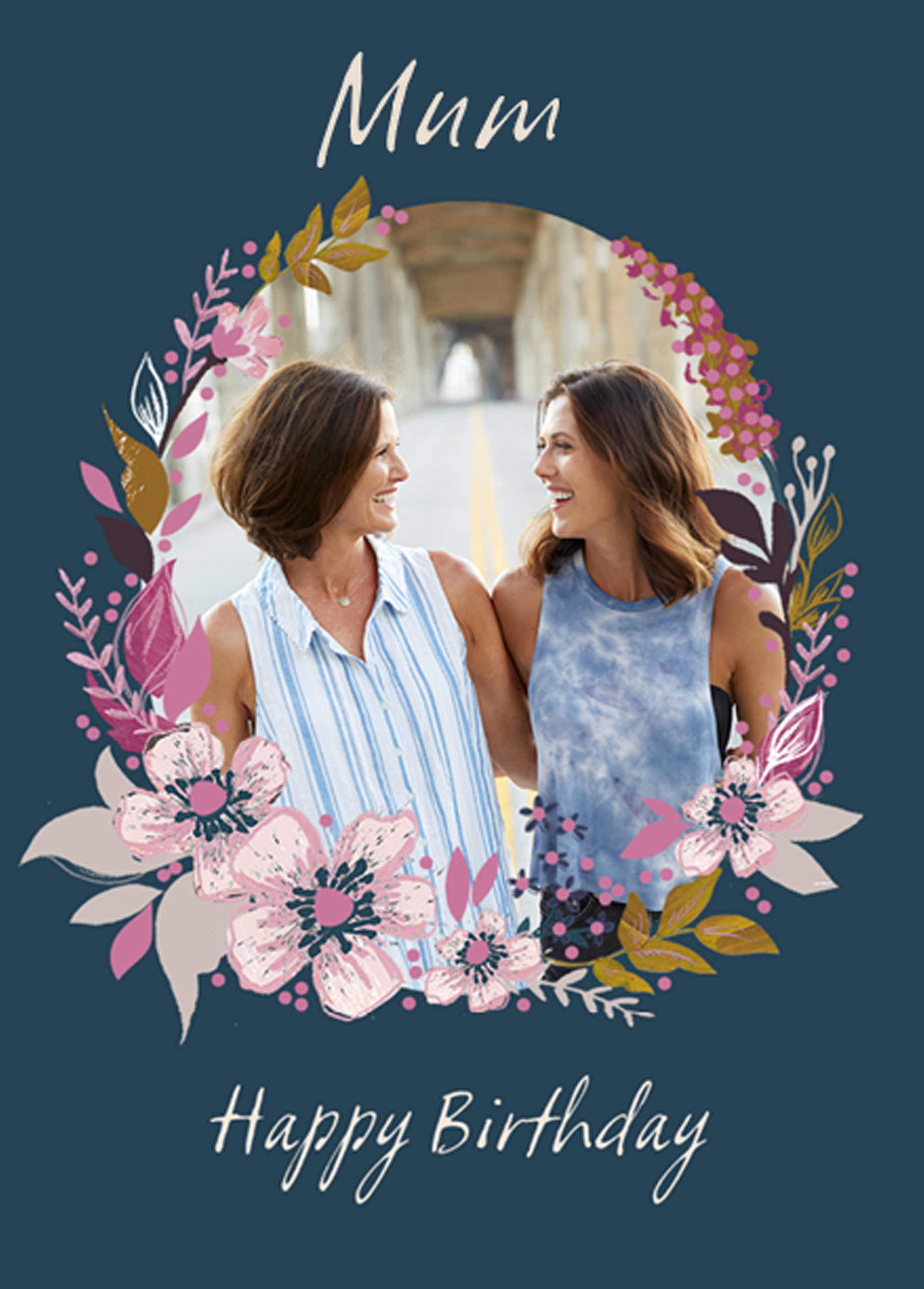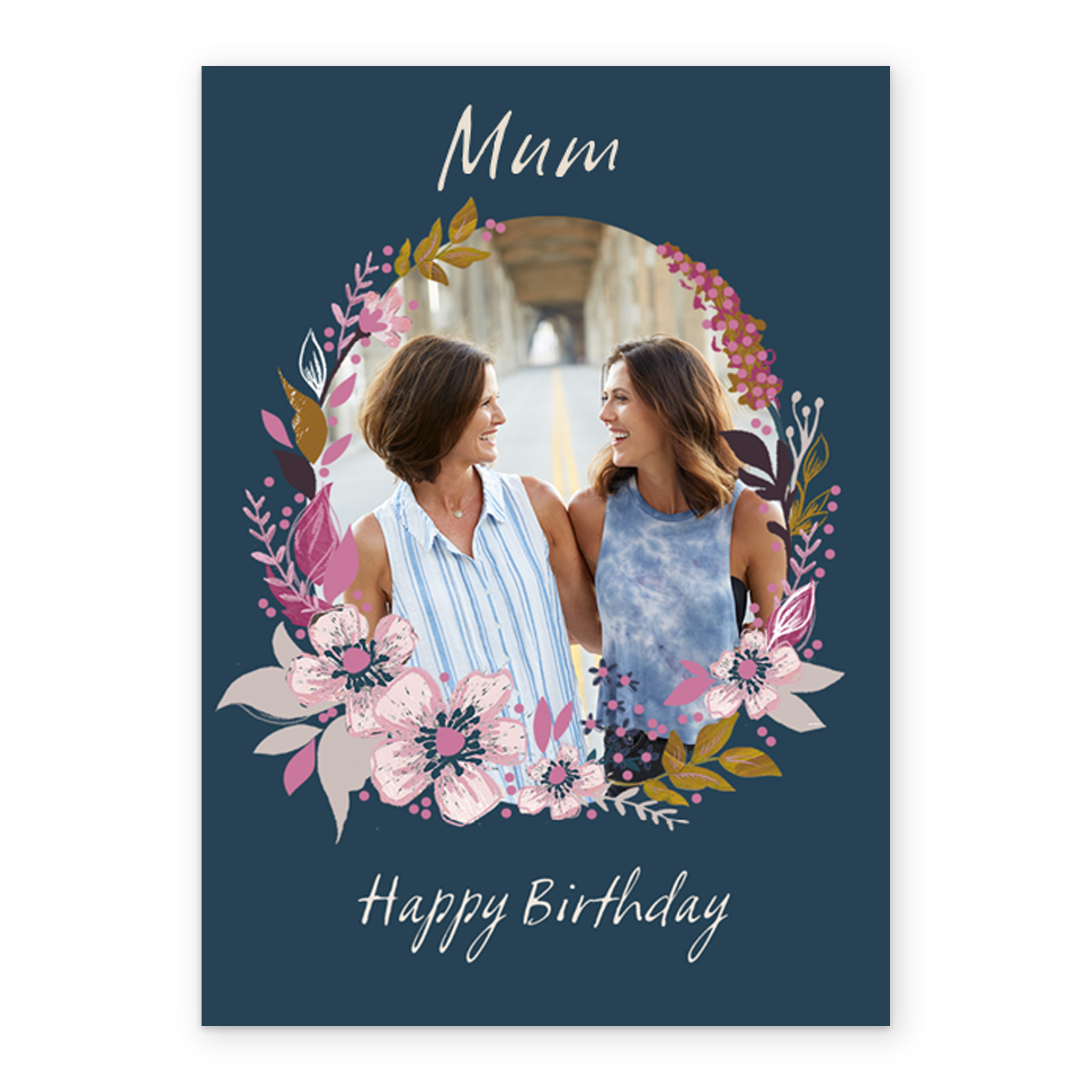 Personalised Floral & Foliage Wreath Photo Birthday Card For Mum