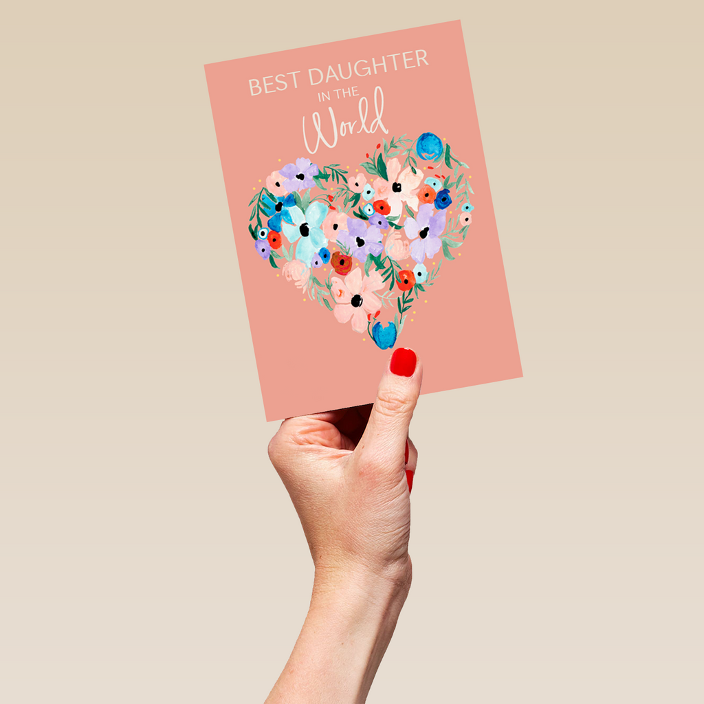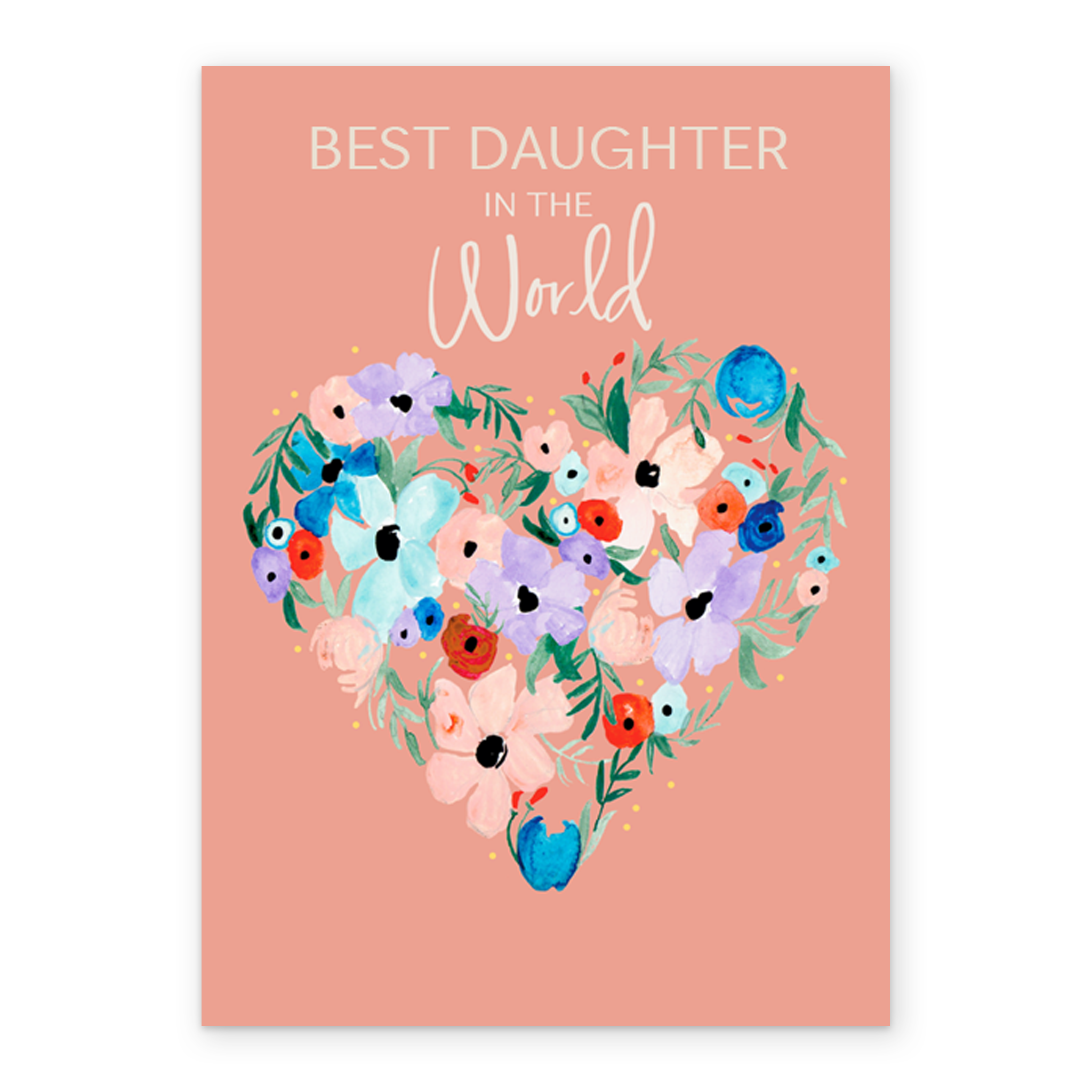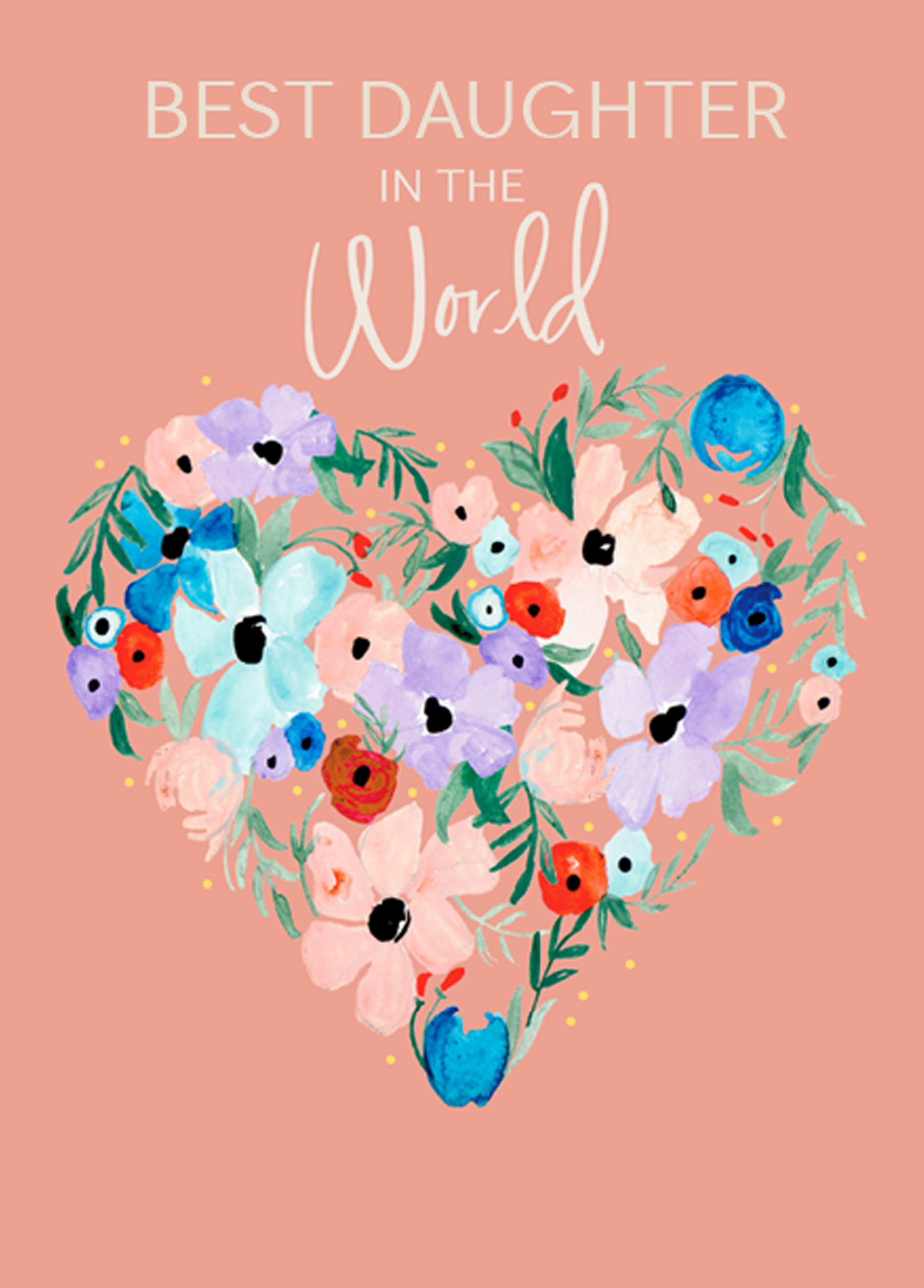 Show them you care with a personalised flower love heart card for daughter from Hallmark. Our birthday cards are printed on premium quality, FSC®-certified card & delivered nationwide. This card is available as standard 12cm by 16.7cm and large 15.5cm by 21.6cm.