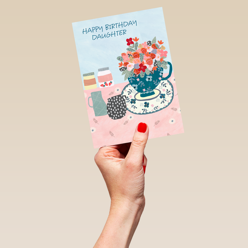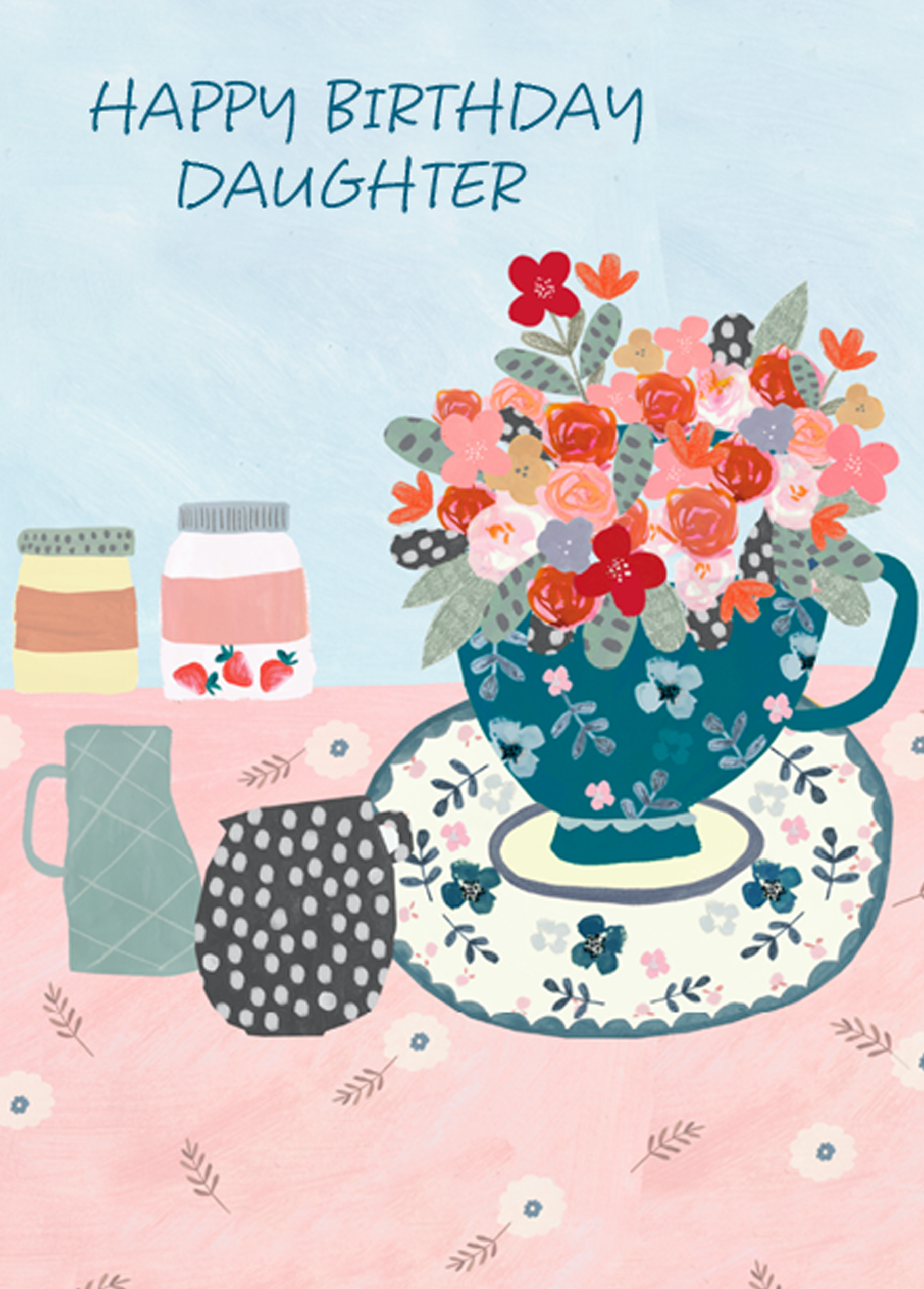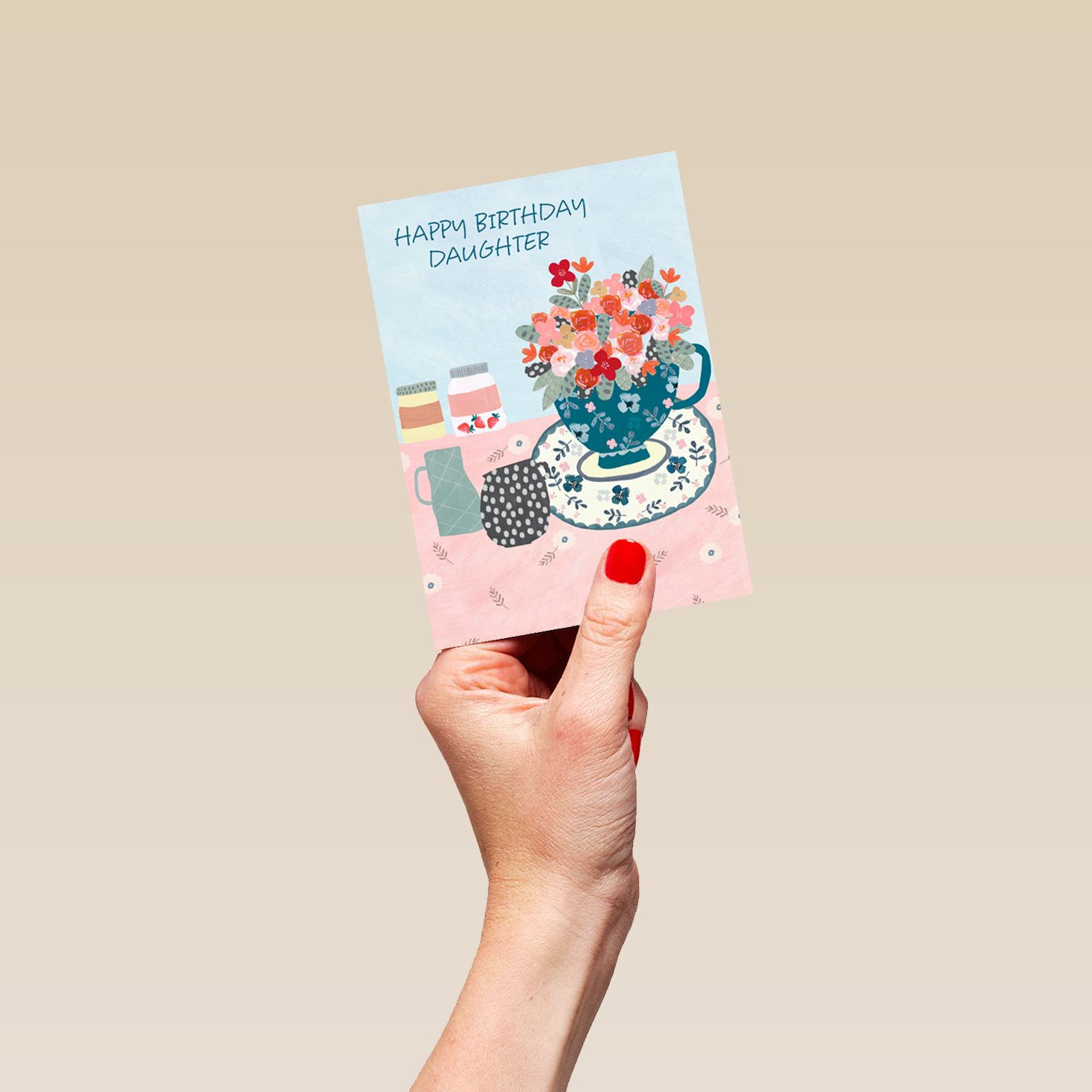 Show them you care with a personalised flowers & teapot card for daughter from Hallmark. Our birthday cards are printed on premium quality, FSC®-certified card & delivered nationwide. This card is available as standard 12cm by 16.7cm and large 15.5cm by 21.6cm.