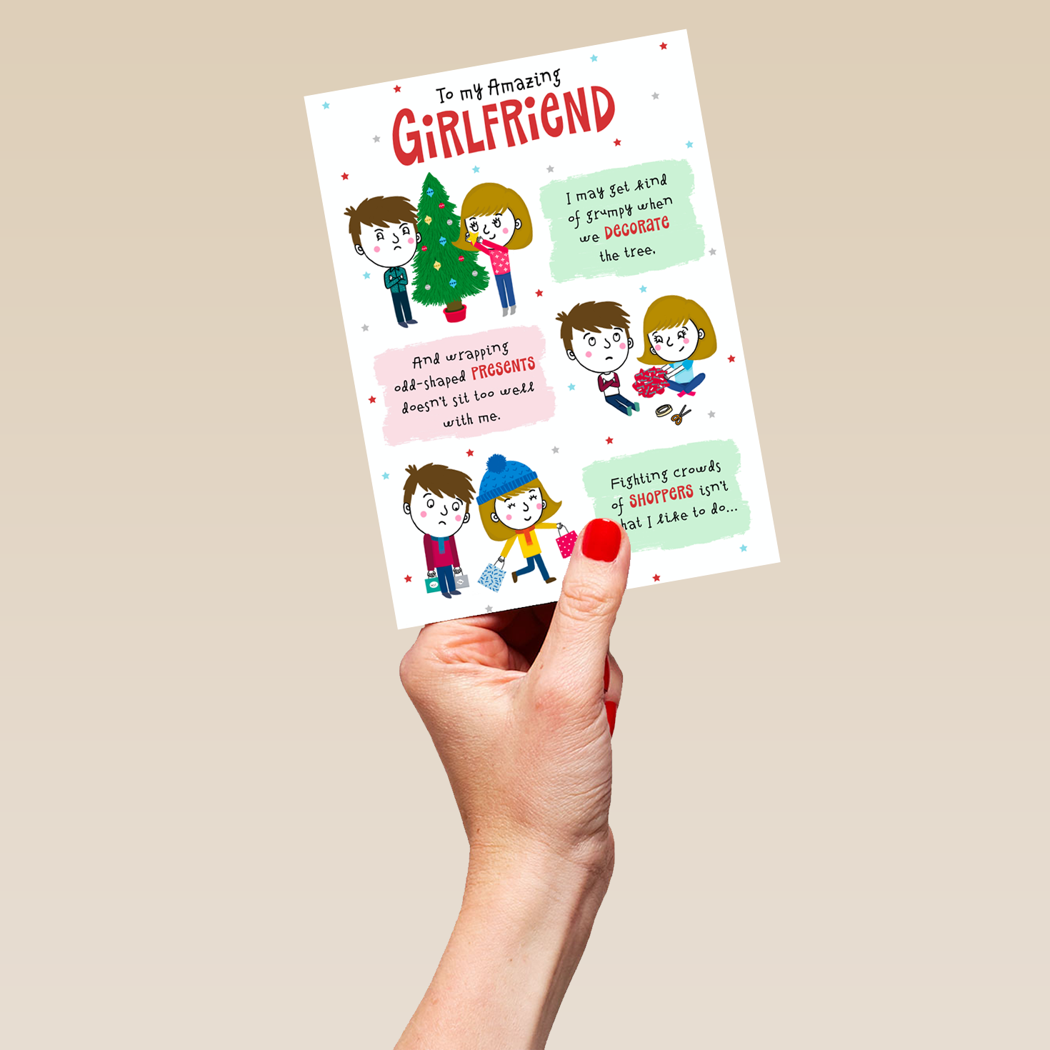 Show them you care with a personalised for an amazing girlfriend Christmas card from Hallmark. Our Christmas cards are printed on premium quality, FSC®-certified card & delivered nationwide. This card is available as standard 12cm by 16.7cm and large 15.5cm by 21.6cm.