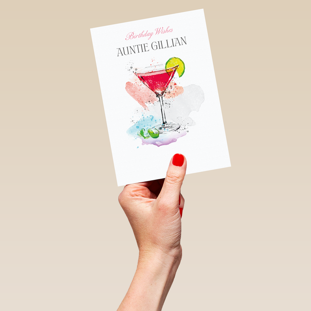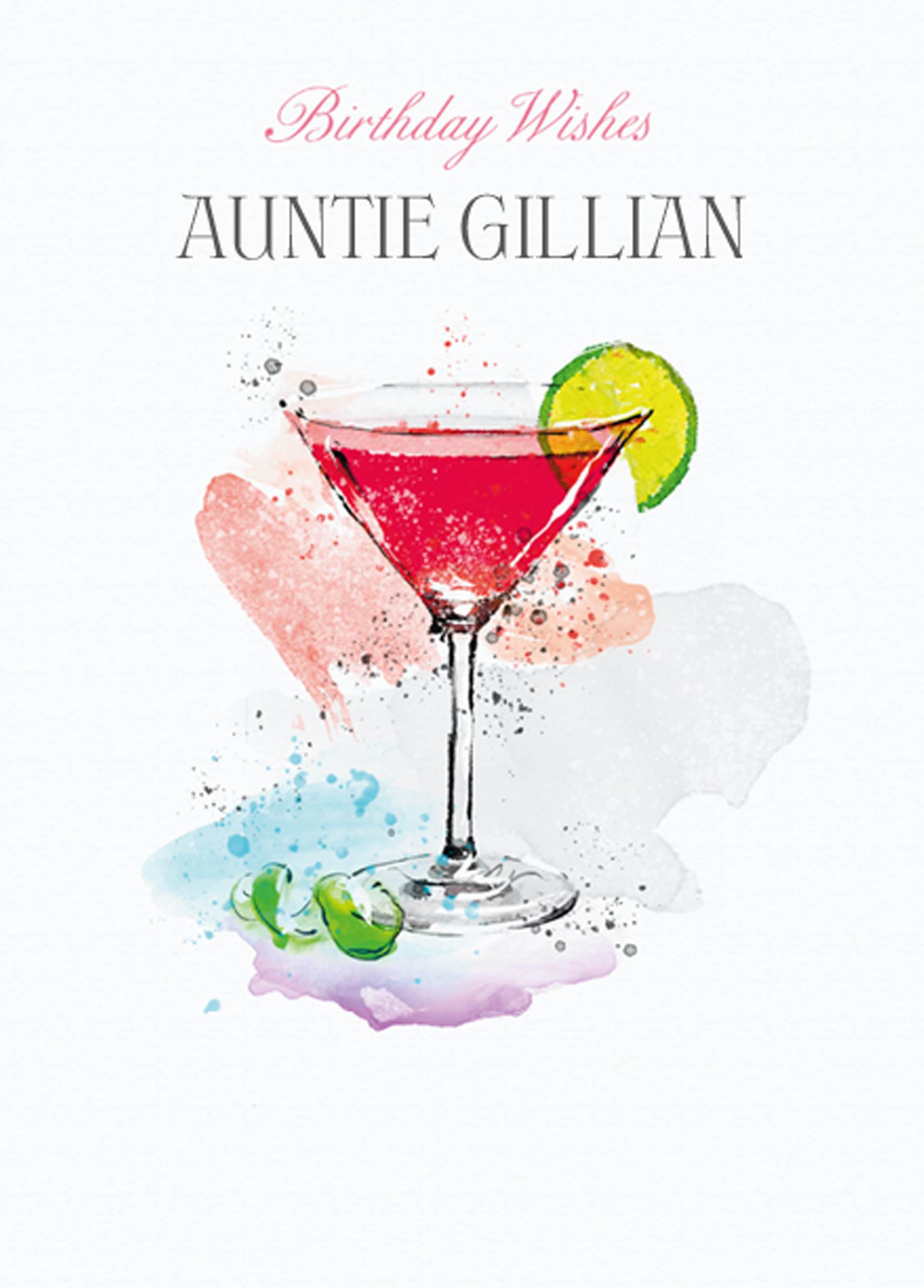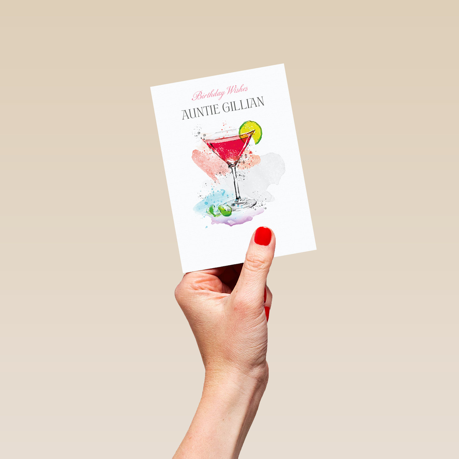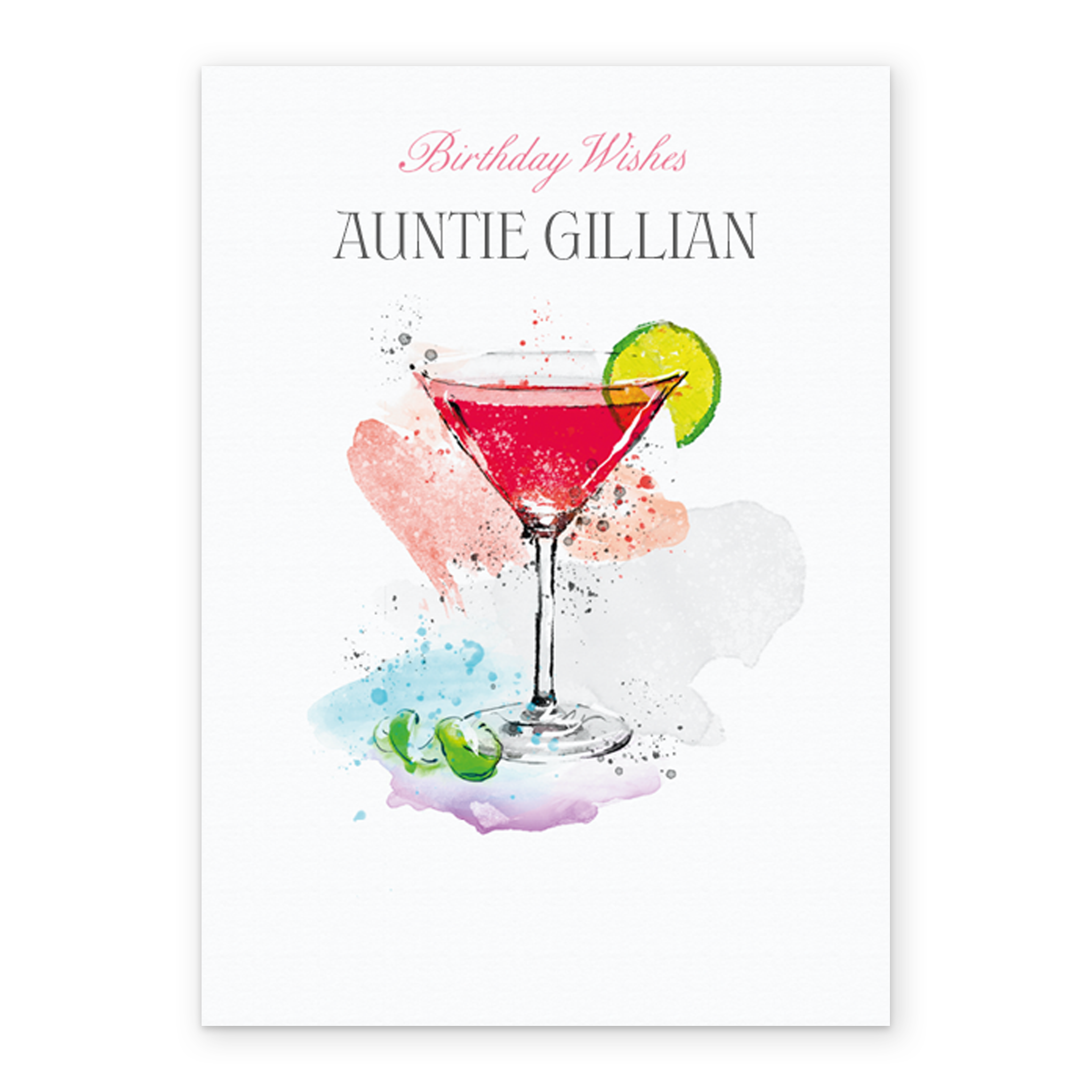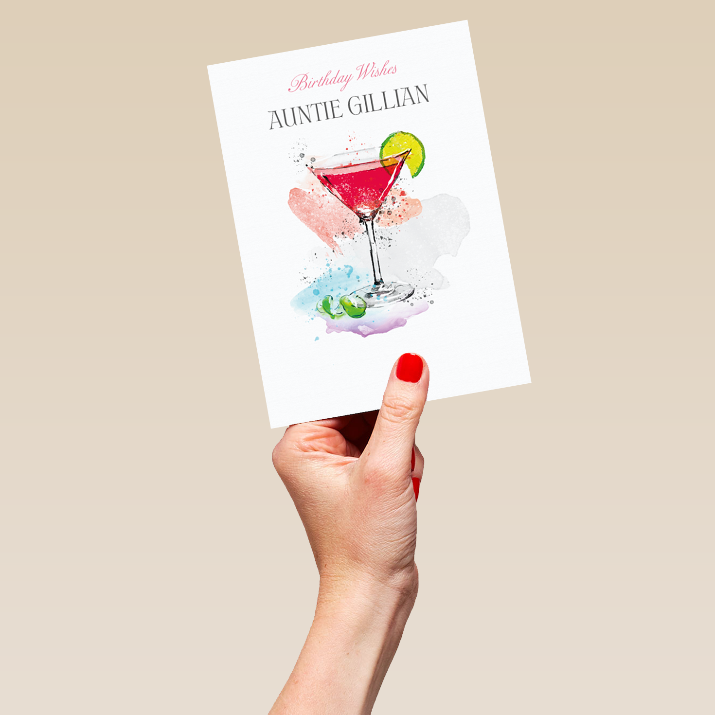 Personalised For Auntie Editable Traditional Cocktail Birthday Card