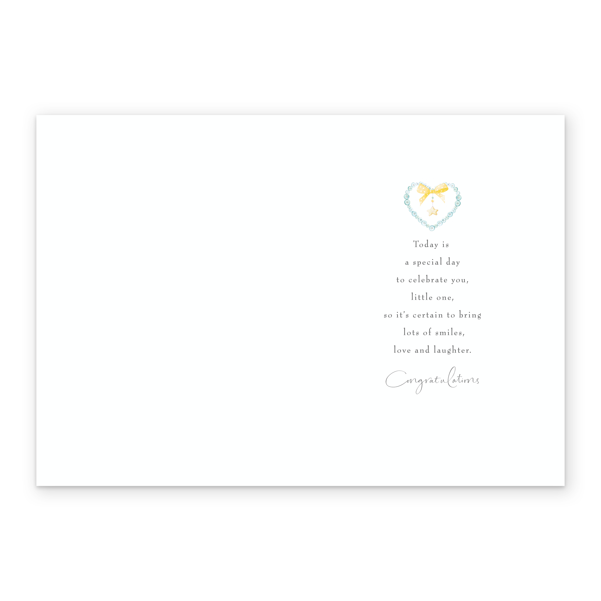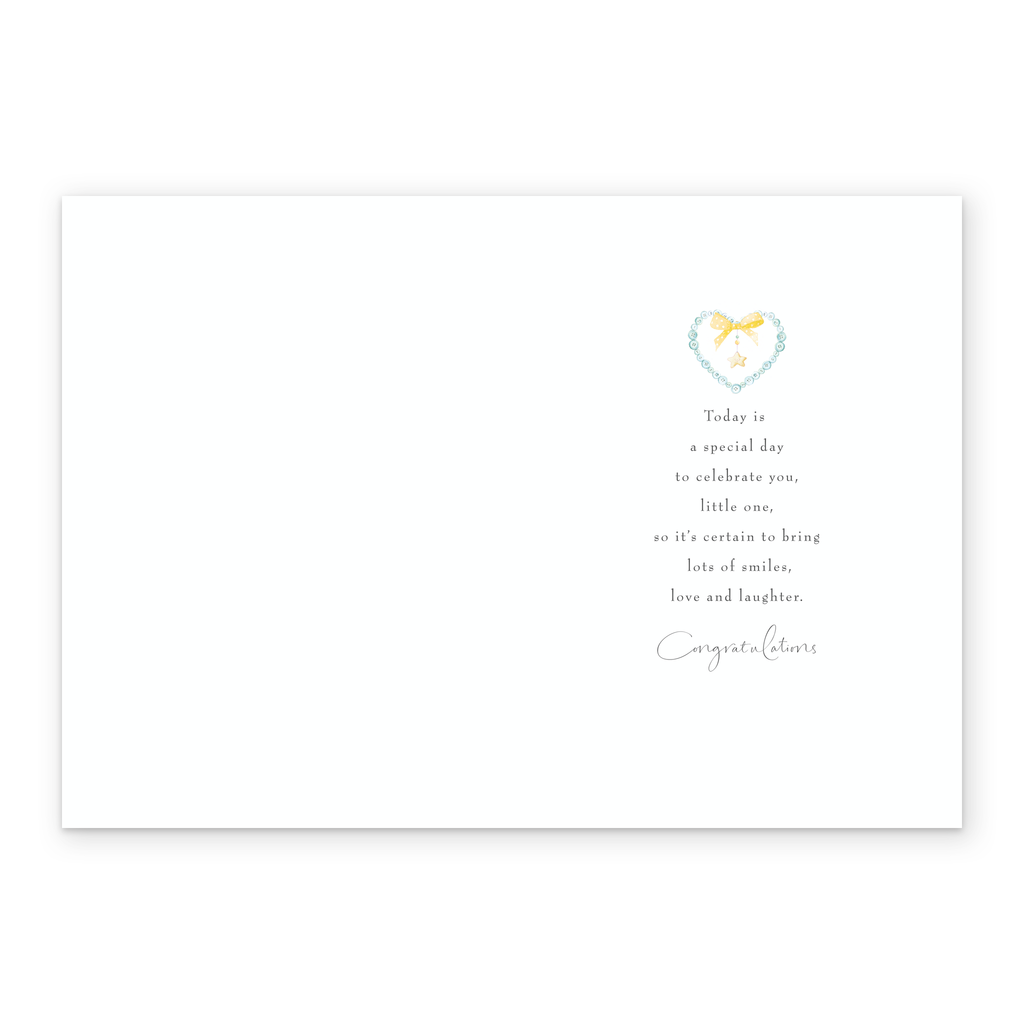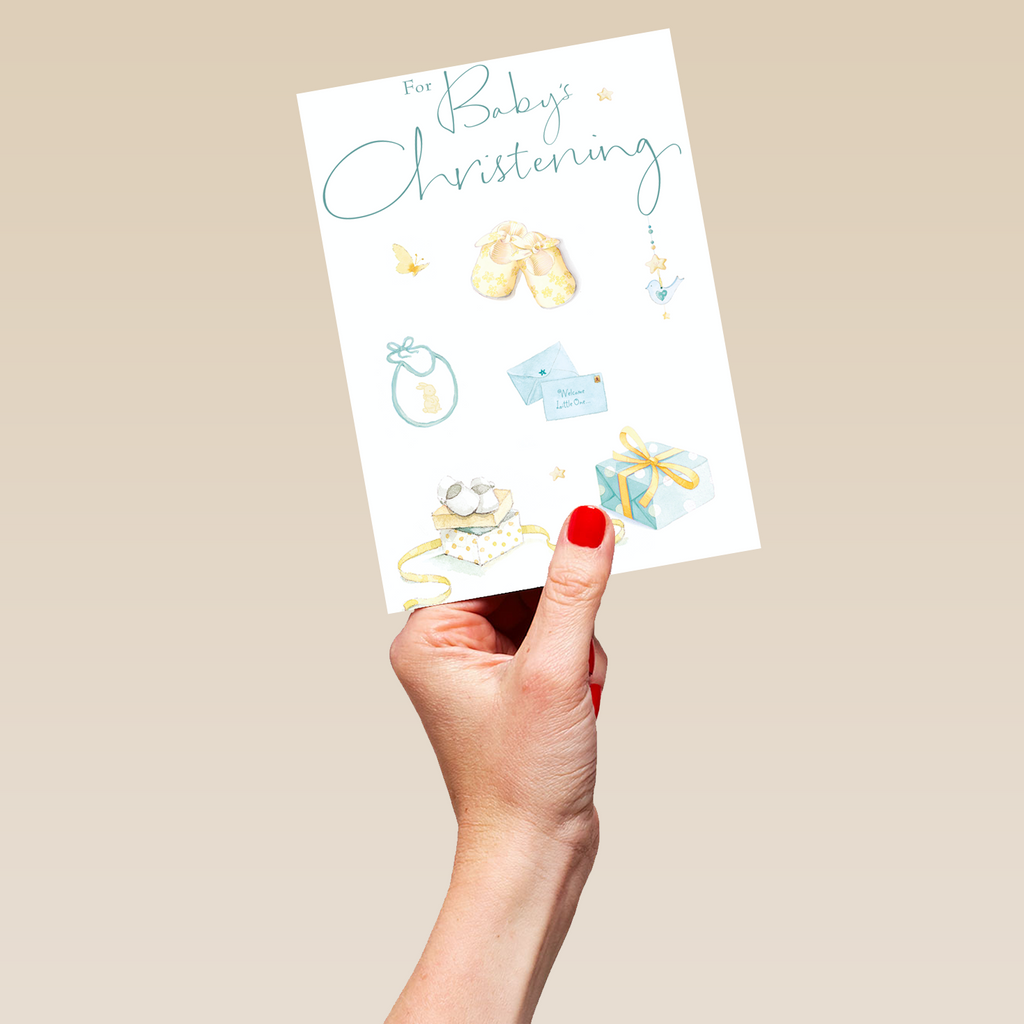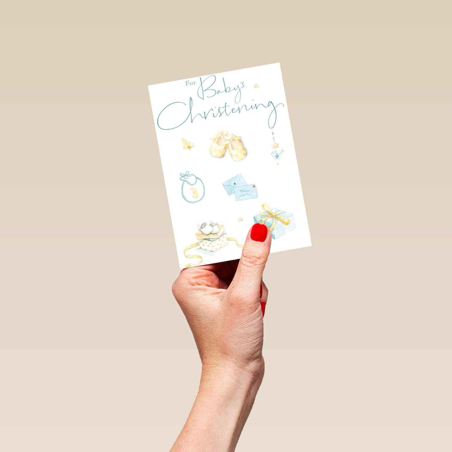 Show them you care with a personalised for baby's christening card from Hallmark. Our christening cards are printed on premium quality, FSC®-certified card & delivered nationwide. This card is available as standard 12cm by 16.7cm and large 15.5cm by 21.6cm.