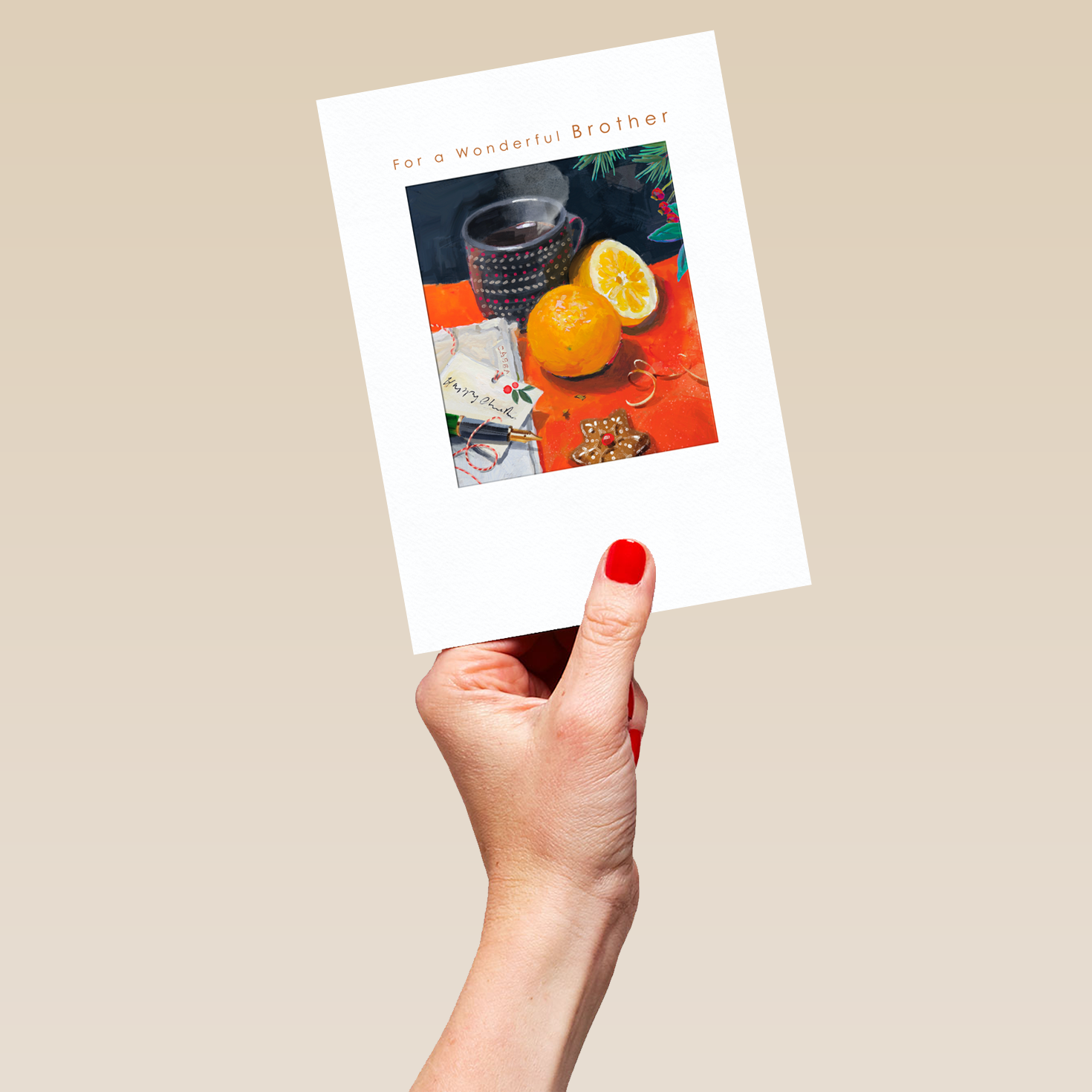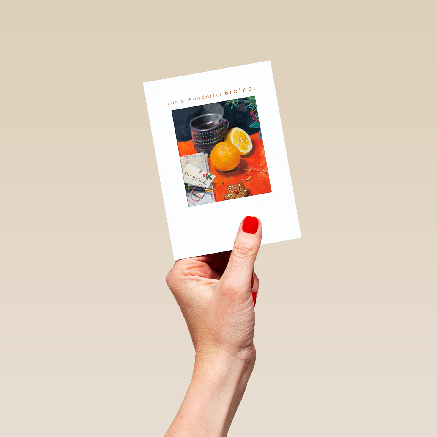 Show them you care with a personalised brother traditional mulled wine card from Hallmark. Our Christmas cards are printed on premium quality, FSC®-certified card & delivered nationwide. This card is available as standard 12cm by 16.7cm and large 15.5cm by 21.6cm.