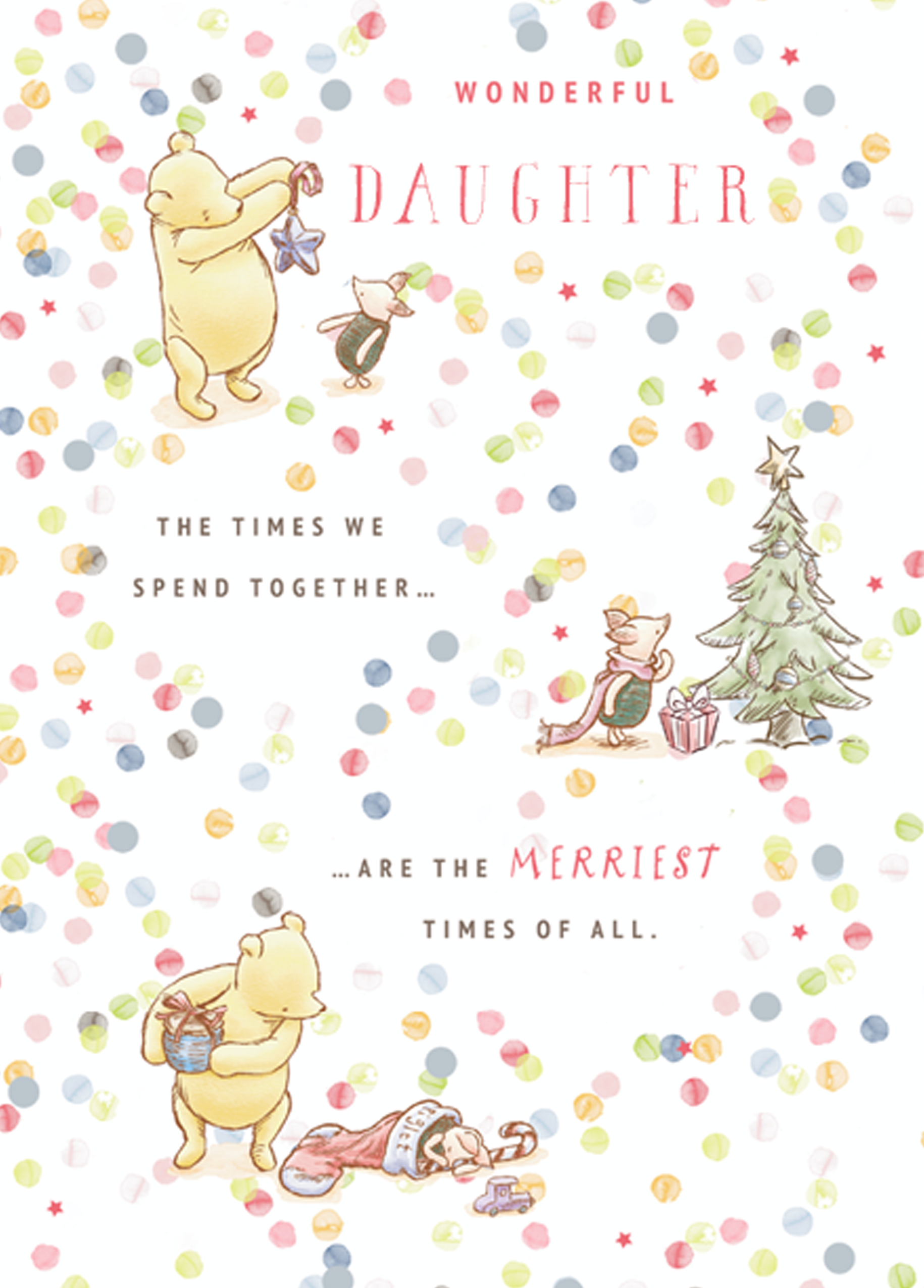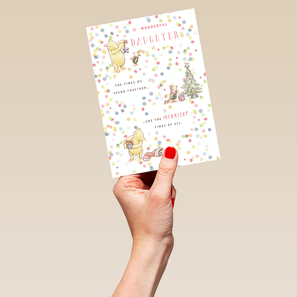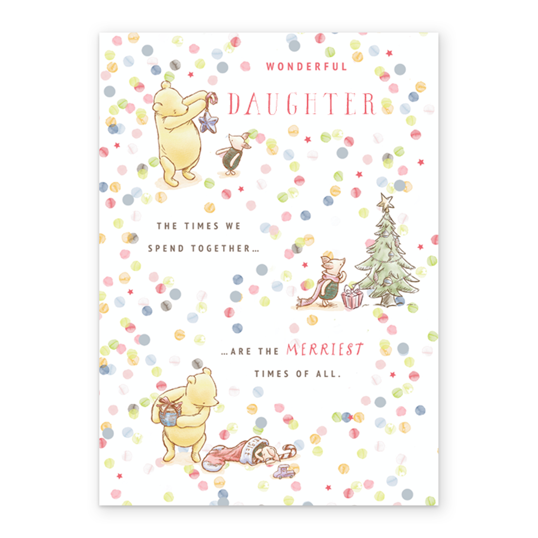Show them you care with a personalised & editable Winnie The Pooh Christmas card for daughter from Hallmark. Our Christmas cards are printed on premium quality, FSC®-certified card & delivered nationwide. This card is available as standard 12cm by 16.7cm and large 15.5cm by 21.6cm.