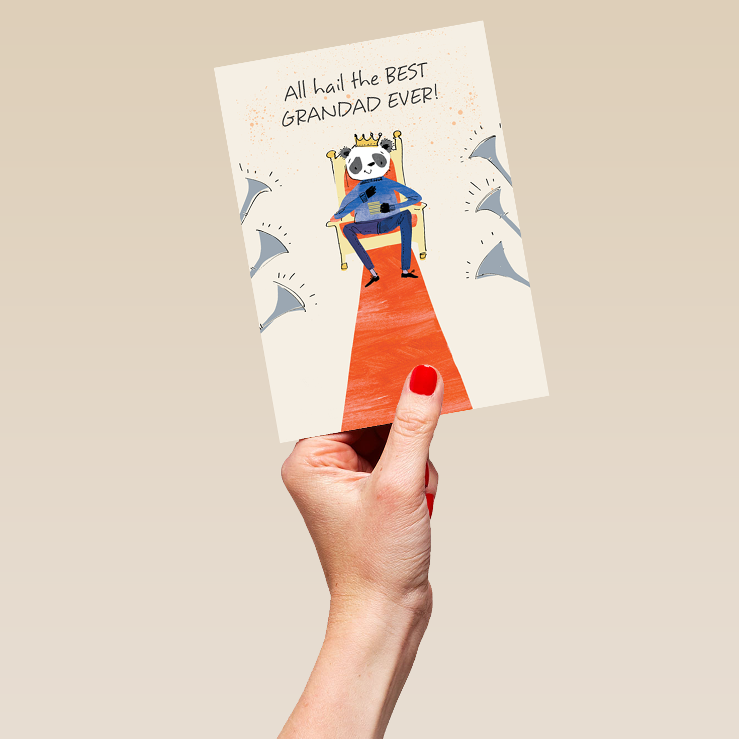 Show them you care with a personalised grandad editable throne & fanfare Father's Day card from Hallmark. Our Father's Day cards are printed on premium quality, FSC®-certified card & delivered nationwide. This card is available as standard 12cm by 16.7cm and large 15.5cm by 21.6cm.